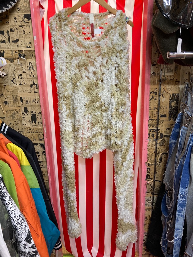 セレクトブランド HSPラッキー大吉by zucco 身幅54 着丈58 モケモケふさふさの手編みハンドニット