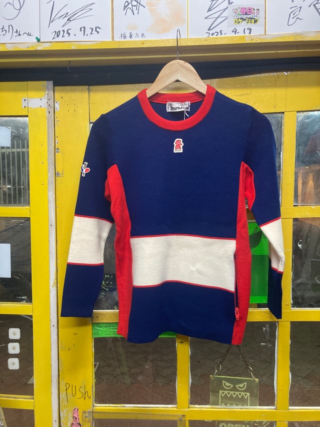 used ウール100% 赤マルコメキャラ可愛いウールニット 肩幅 約35.5 身幅 約45 着丈 約58.5