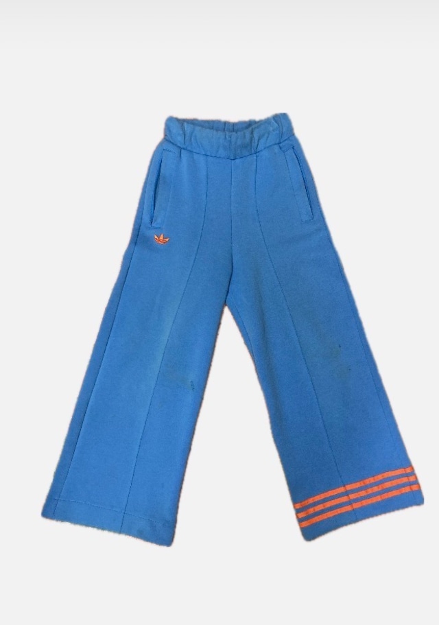 used 水色&オレンジのカラーリング可愛いジャージスウェットパンツ 裾幅広めな形も可愛いアイテム リペア&ダメージも古着ライクなパンツ ※ダメージ、スレ、リペア後、汚れあり ウエスト平置き 32.5(紐とゴムで調整可能) 股上 約37 股下 約65 裾幅 約29