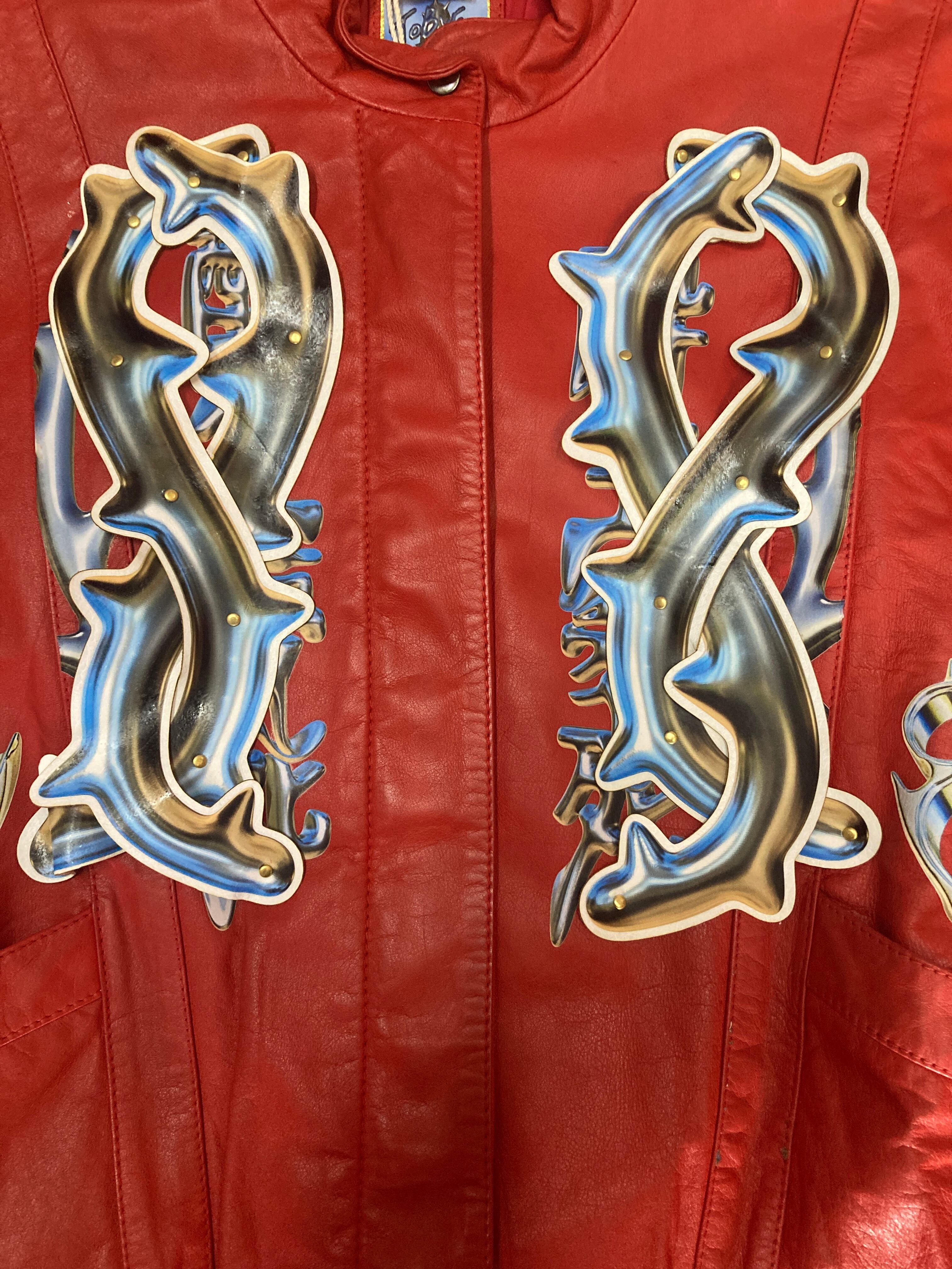 古着ジャクソンレザージャケットにメタリックプリント&装飾カッコいいアイテム