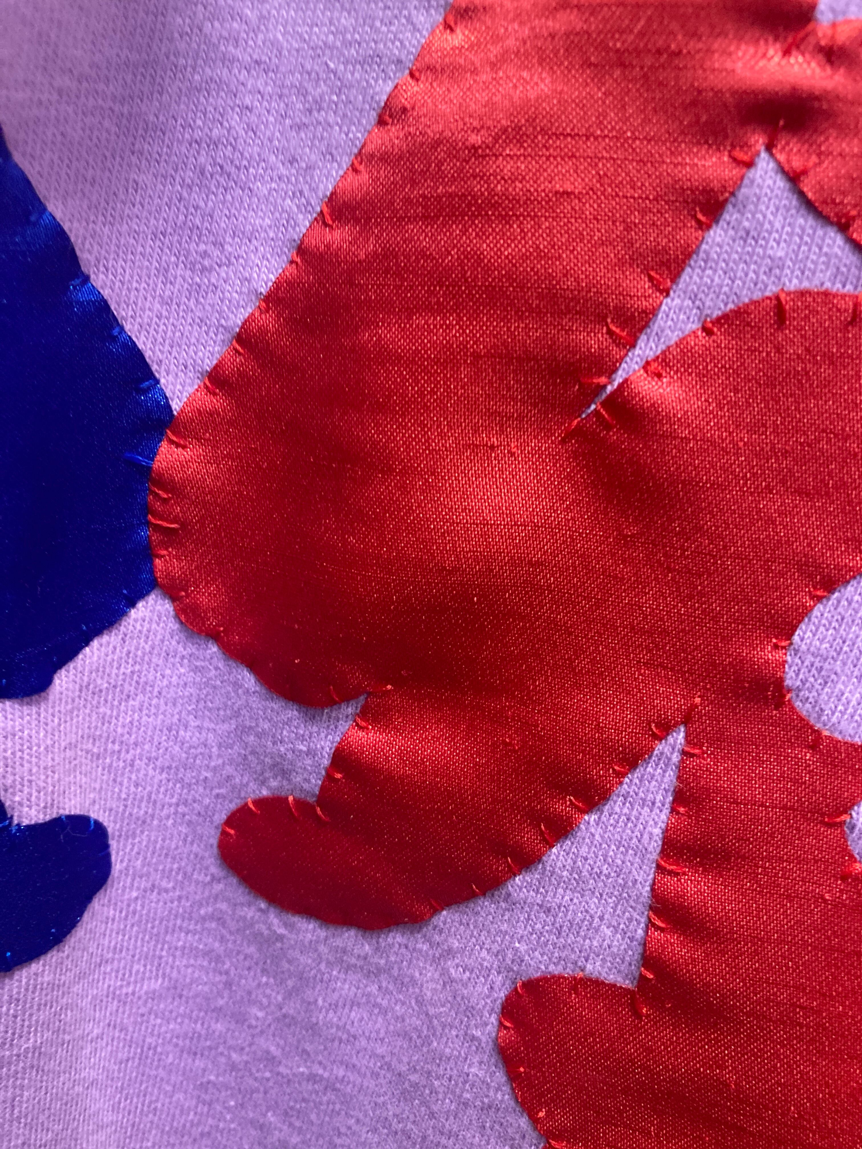 レーザーカットしたパッチを手縫いした手の込んだアイテム