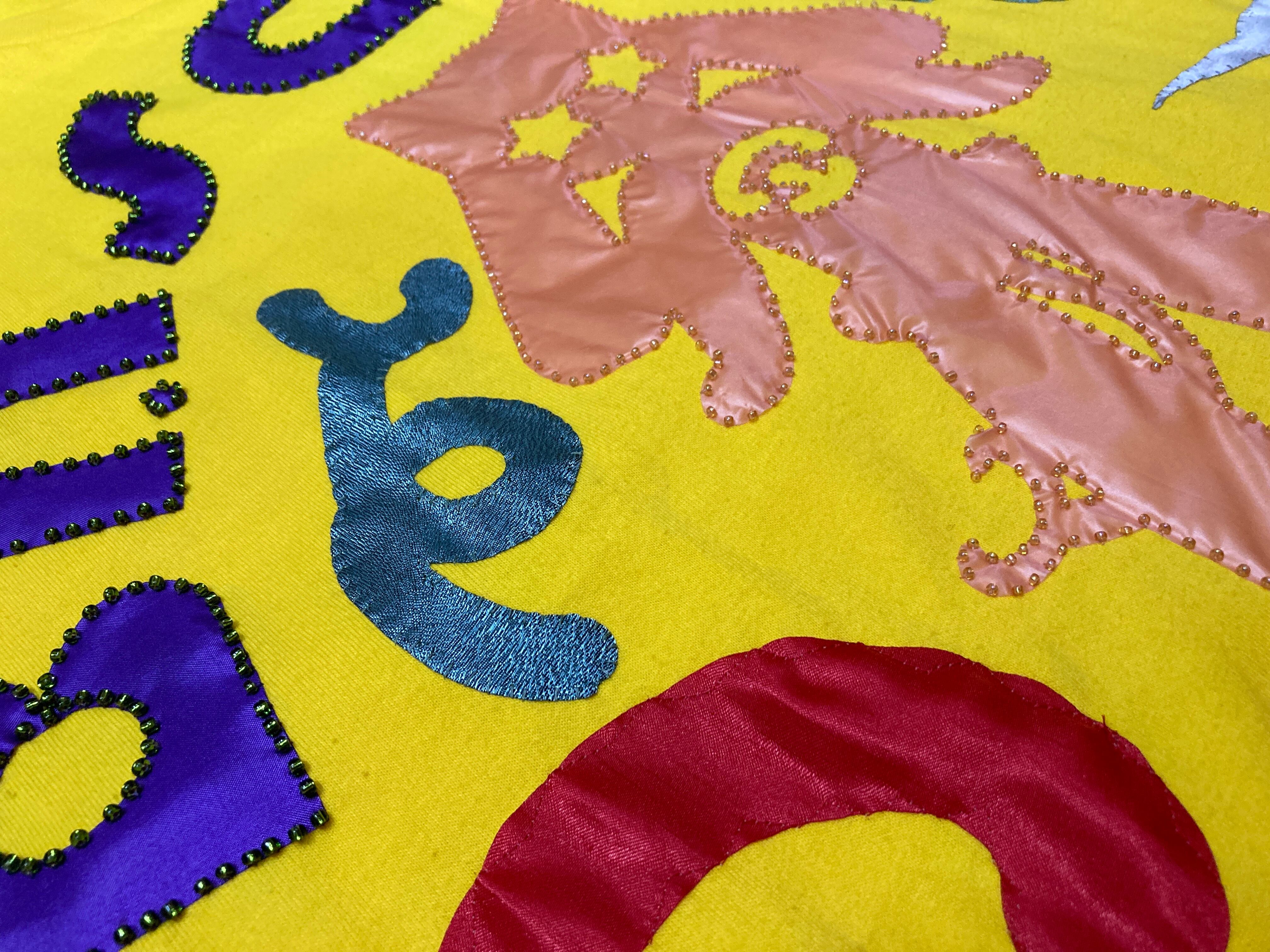 レーザーカットしたパッチを手縫いした手の込んだアイテム
