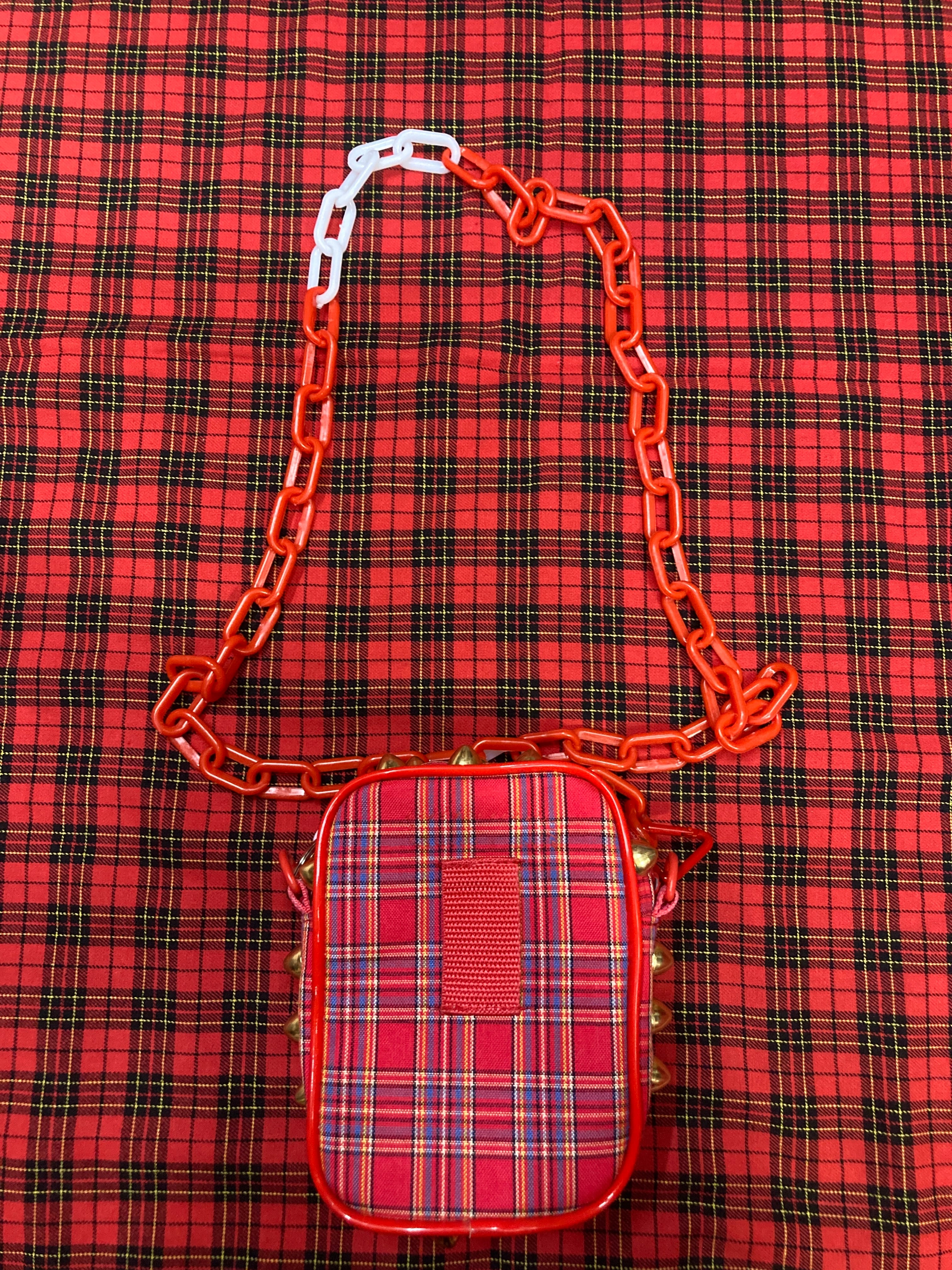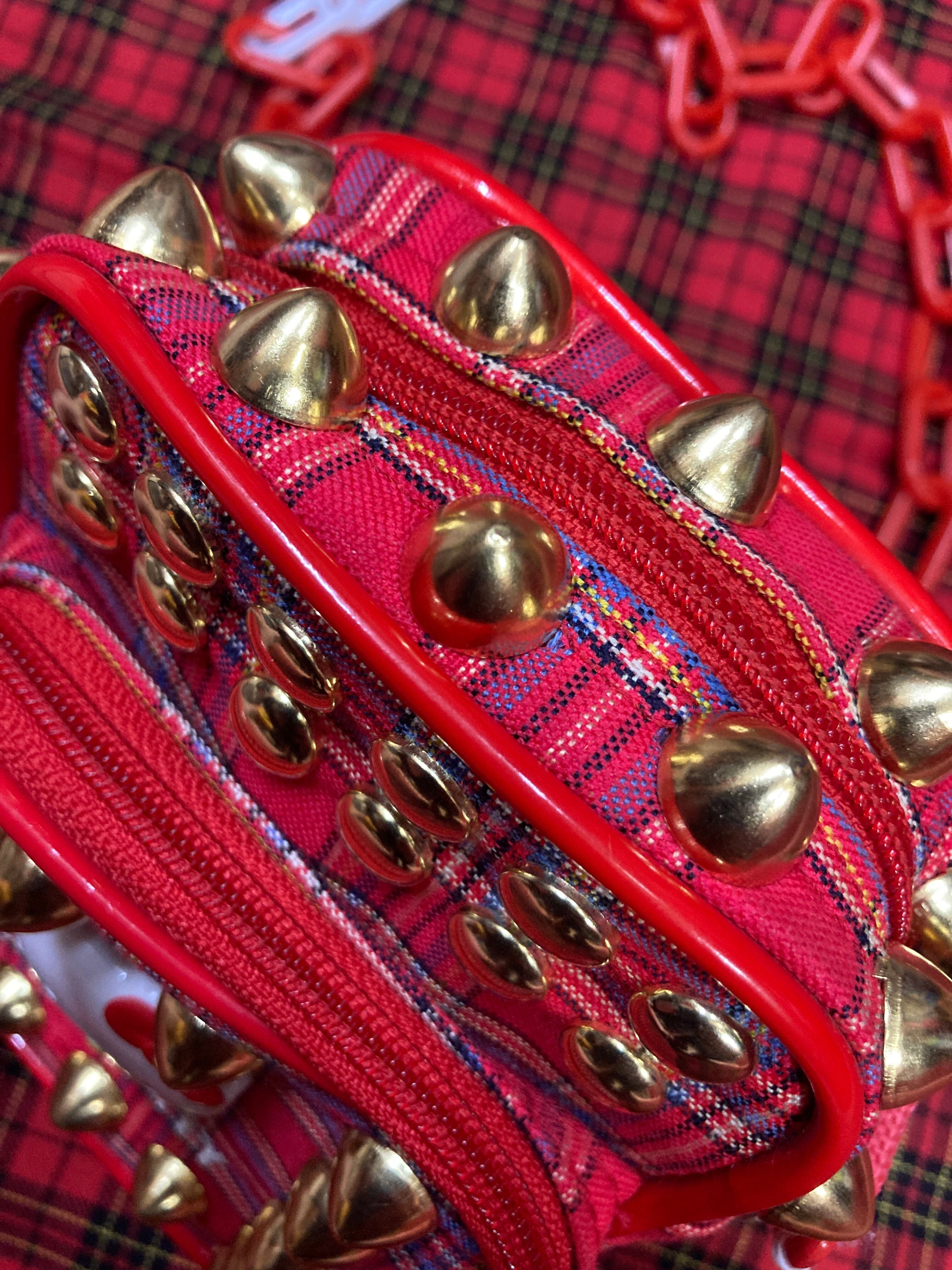 タータンチェックにバキバキ金スタッズカスタムが可愛いバキティー2wayポーチ