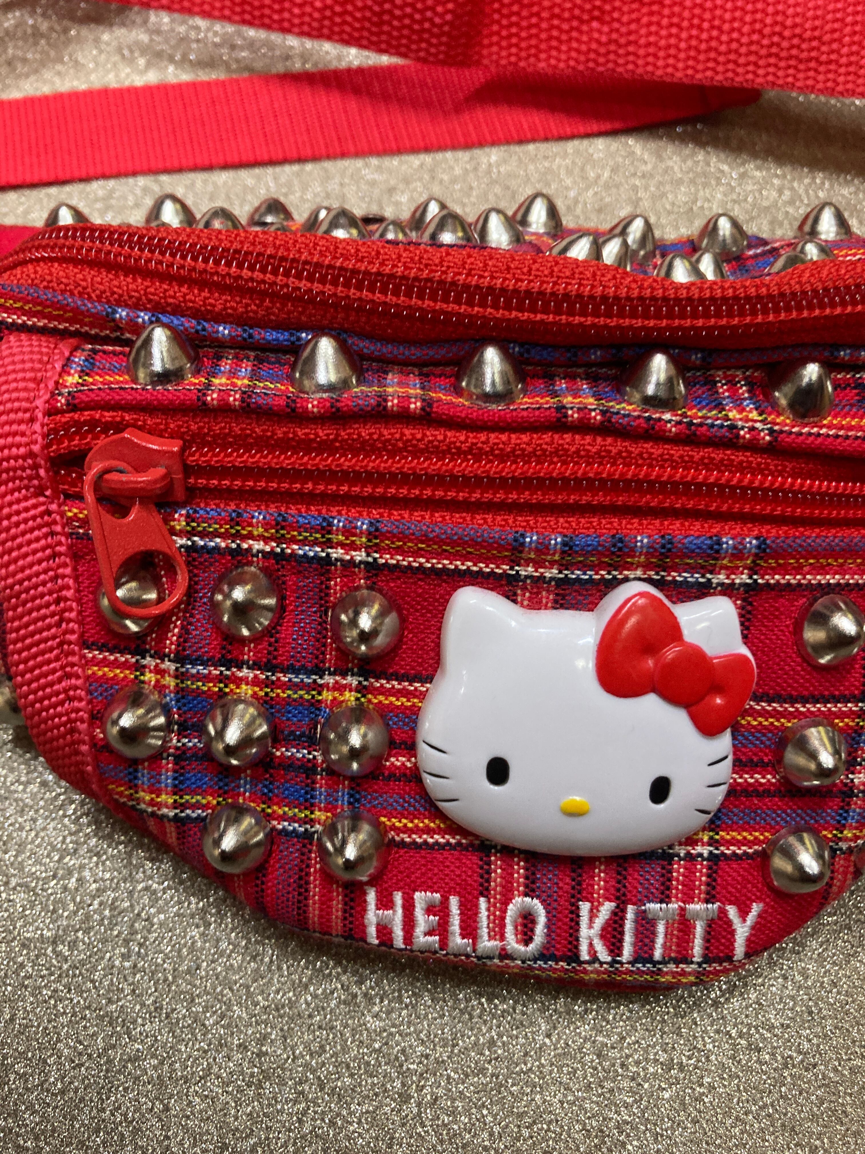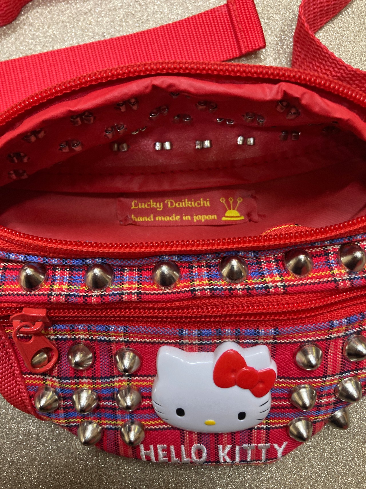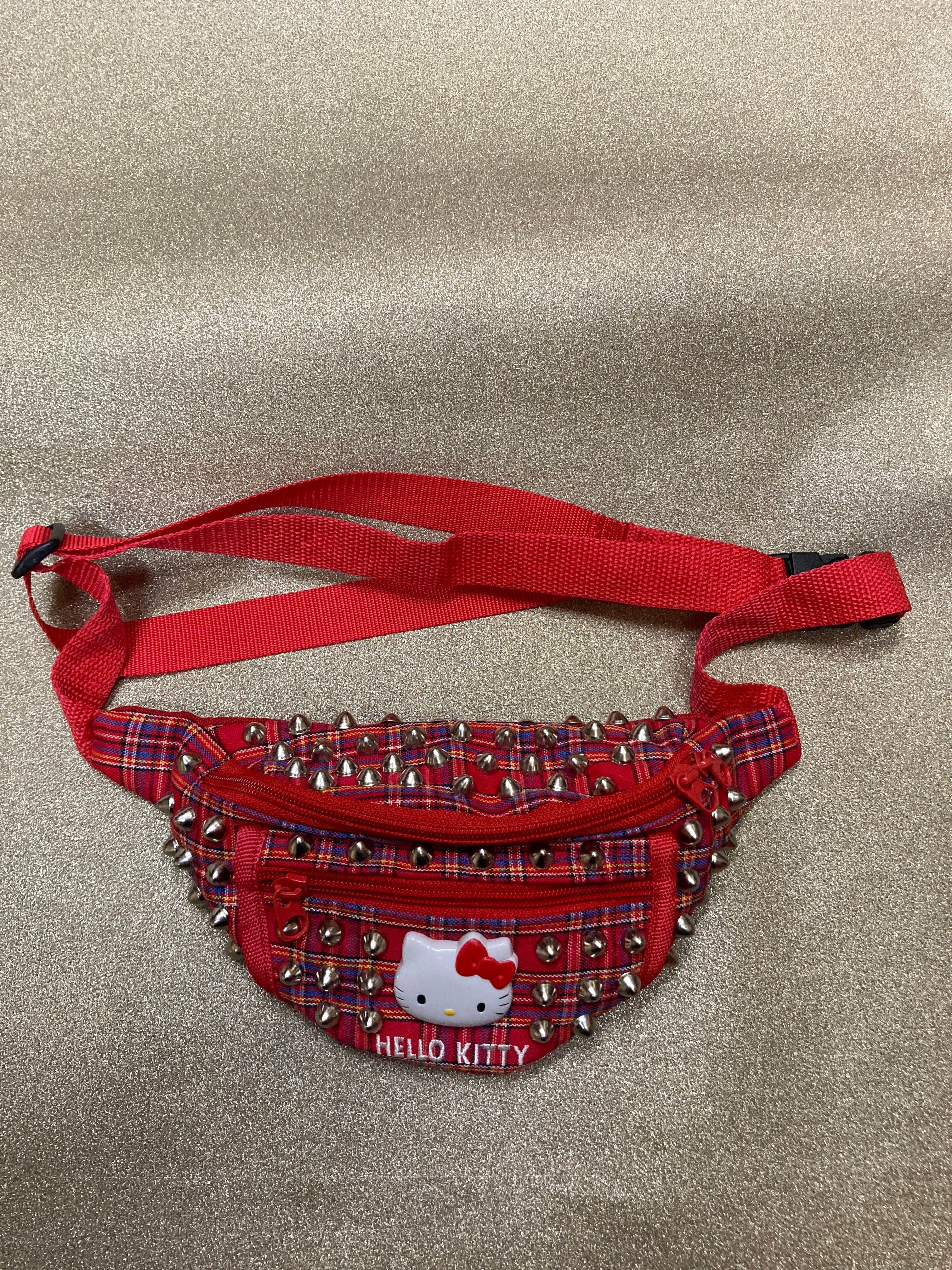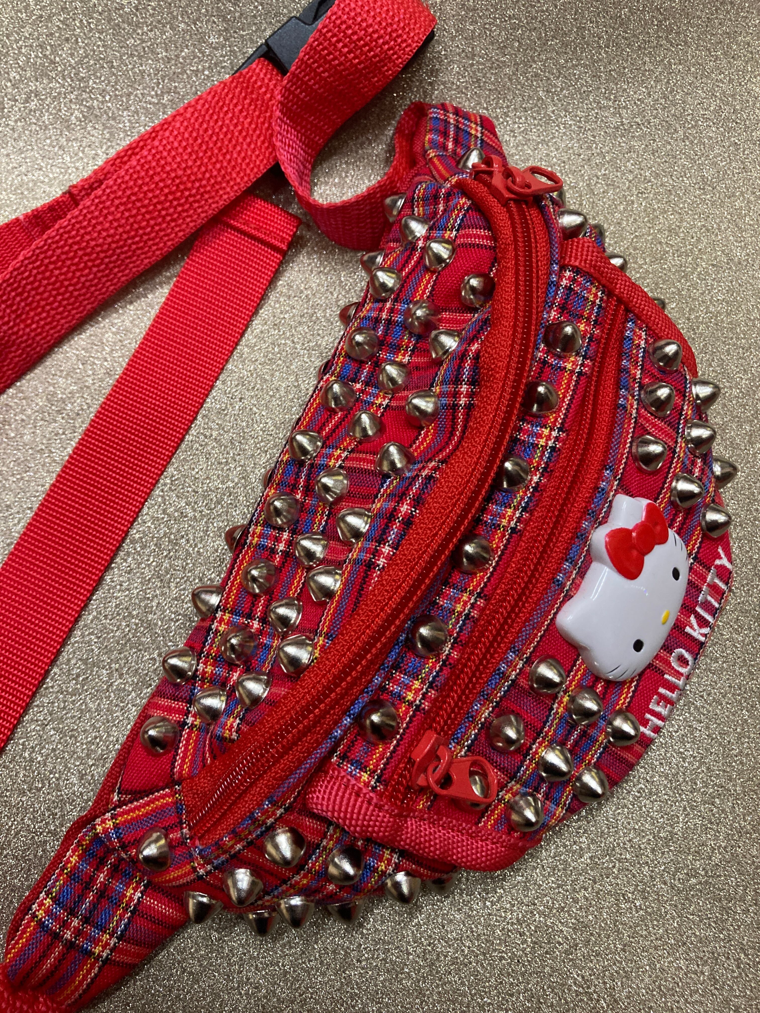 赤チェックスタッズカスタムウエストポーチ 赤チェック