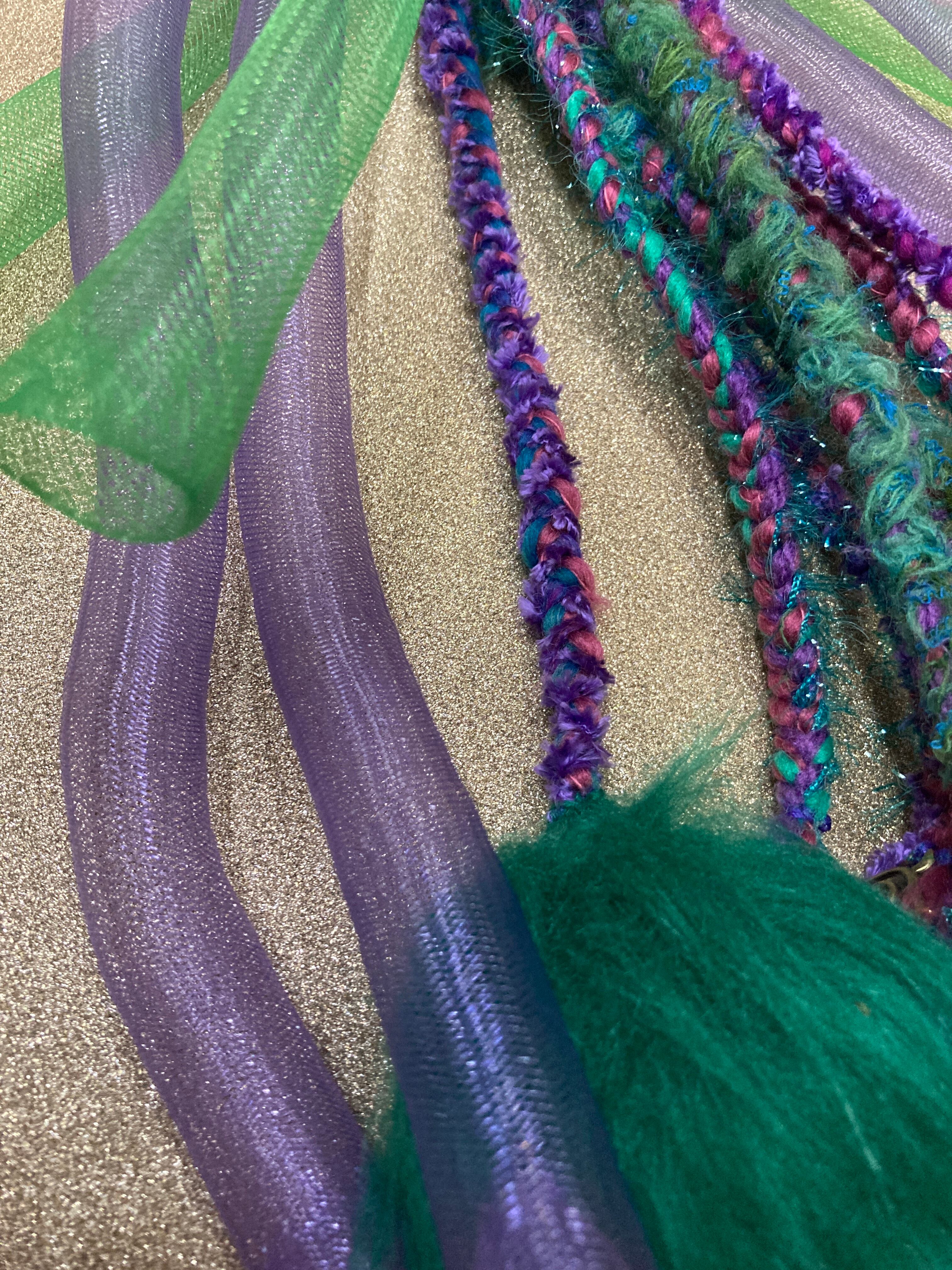 キラキラ毛糸&エスニックパーツ組み合わせ可愛いヘアゴム エクステ