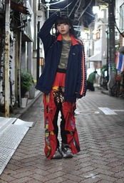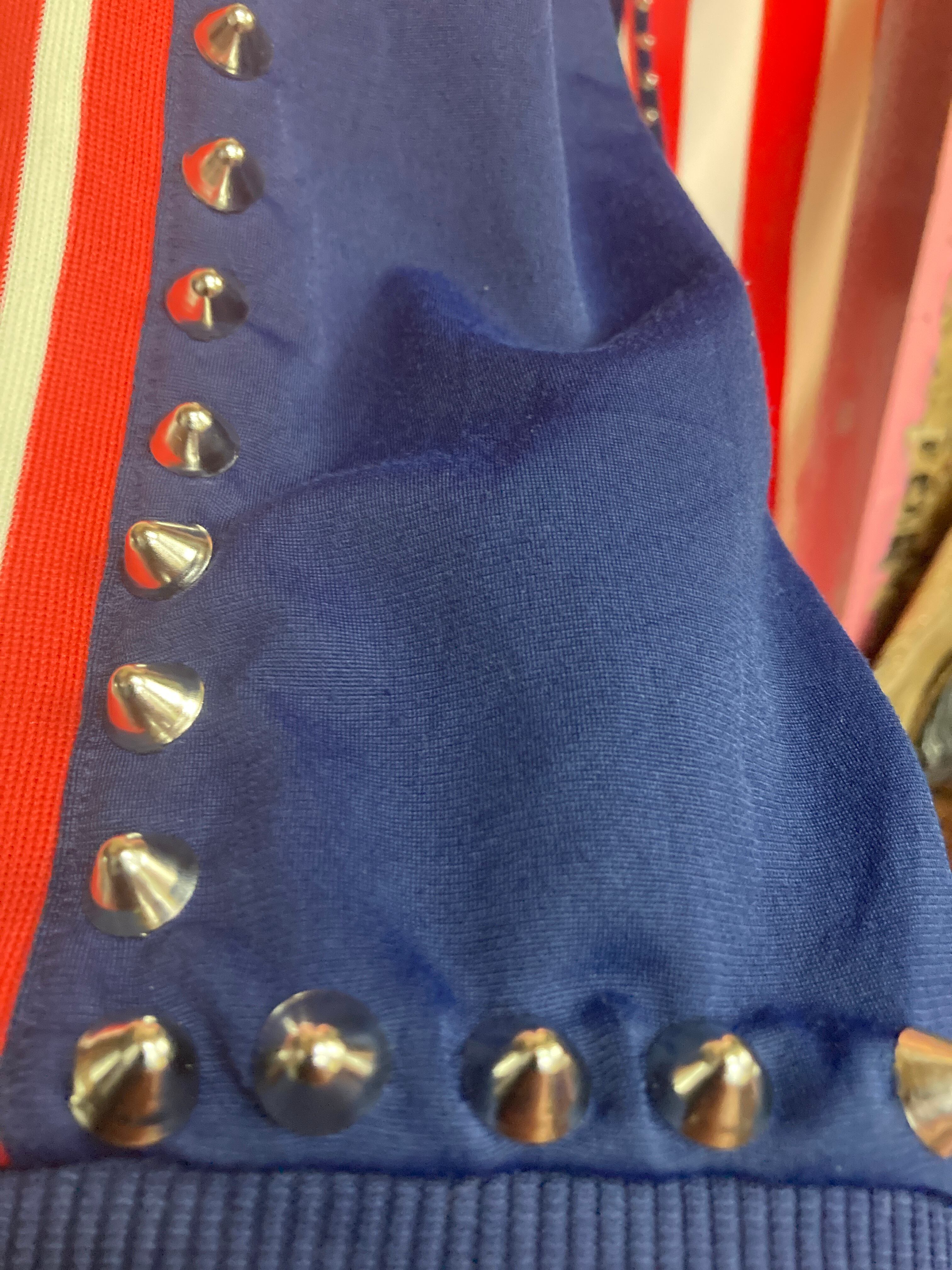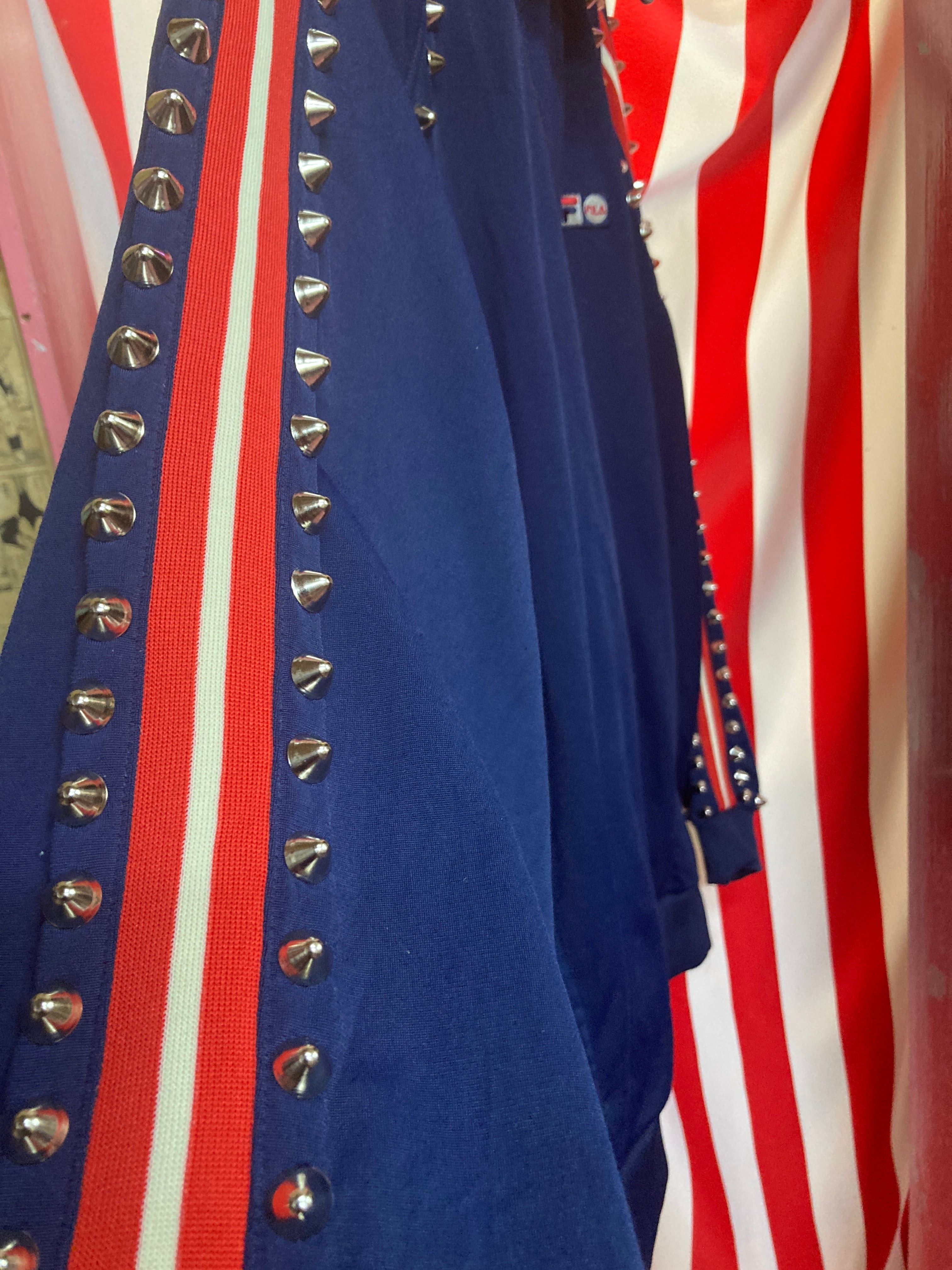 レトロなカラーリングが可愛いFILAラインジャージにハードなスタッズカスタムが可愛いジャージ