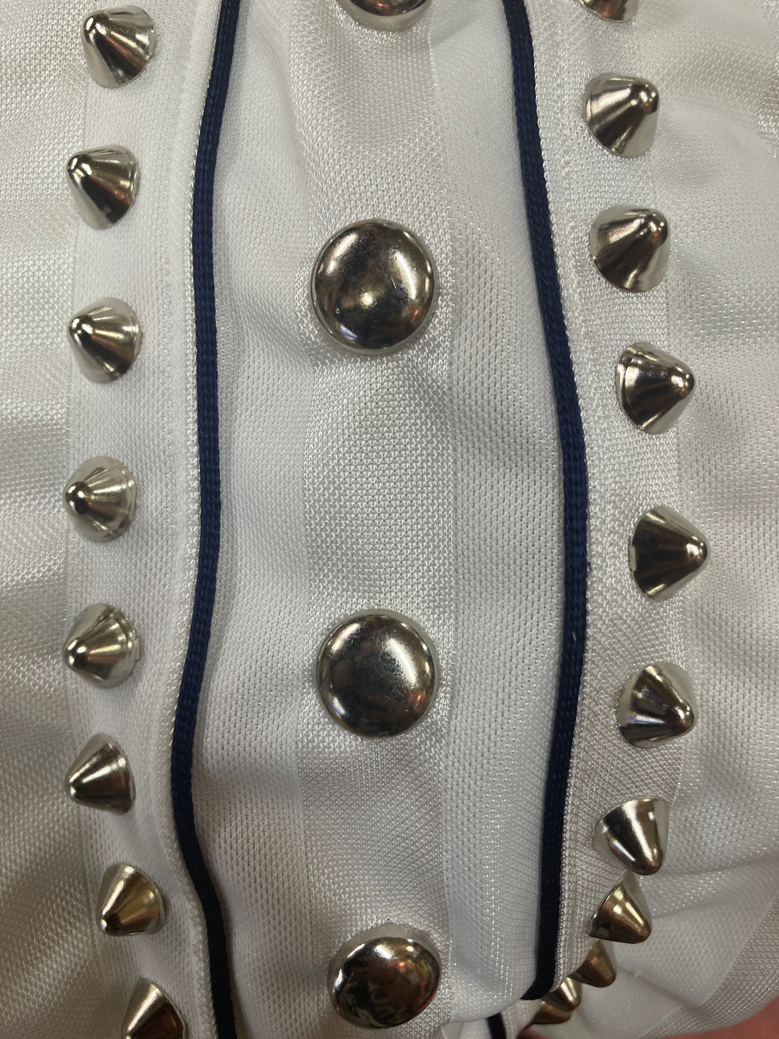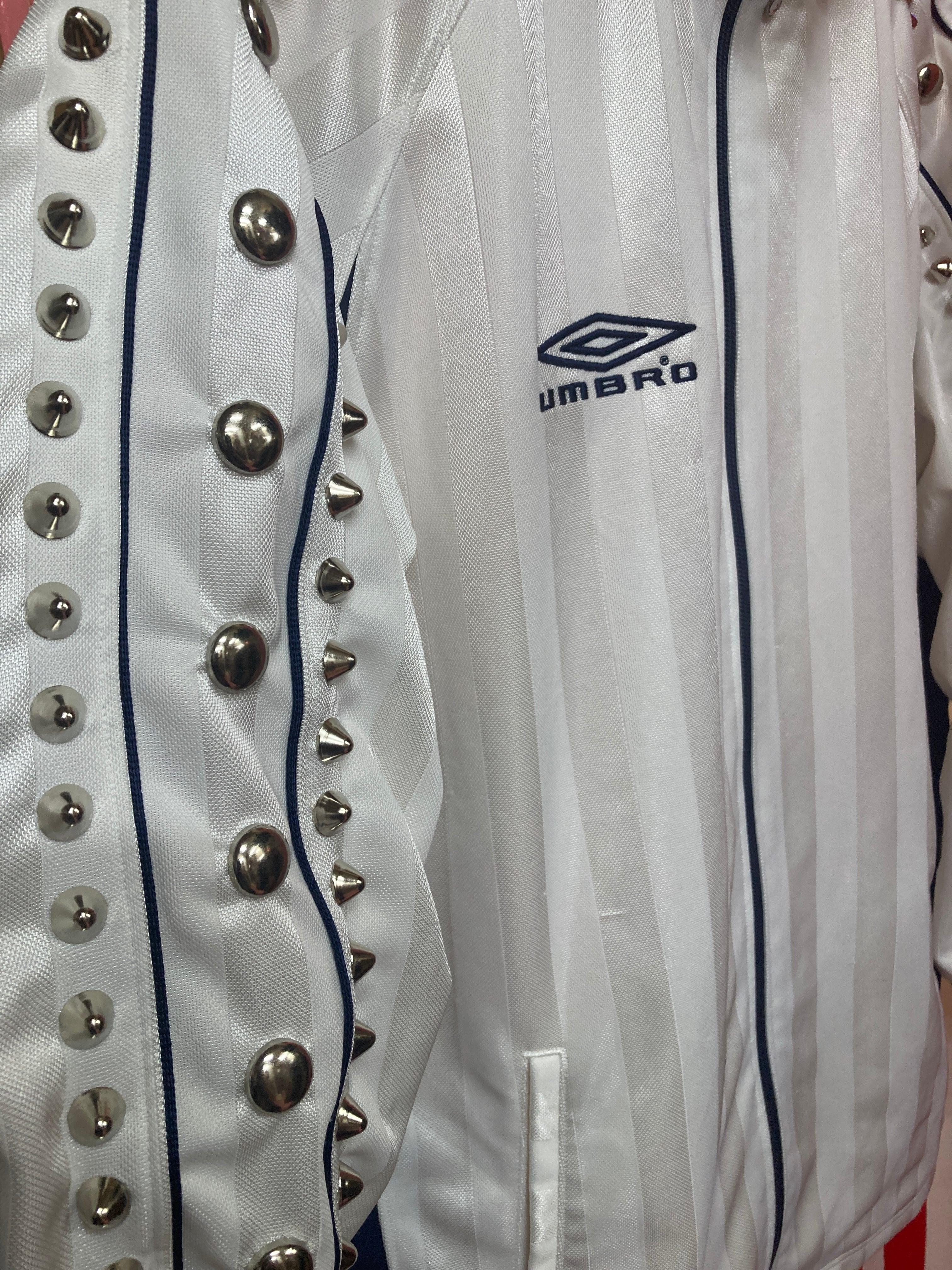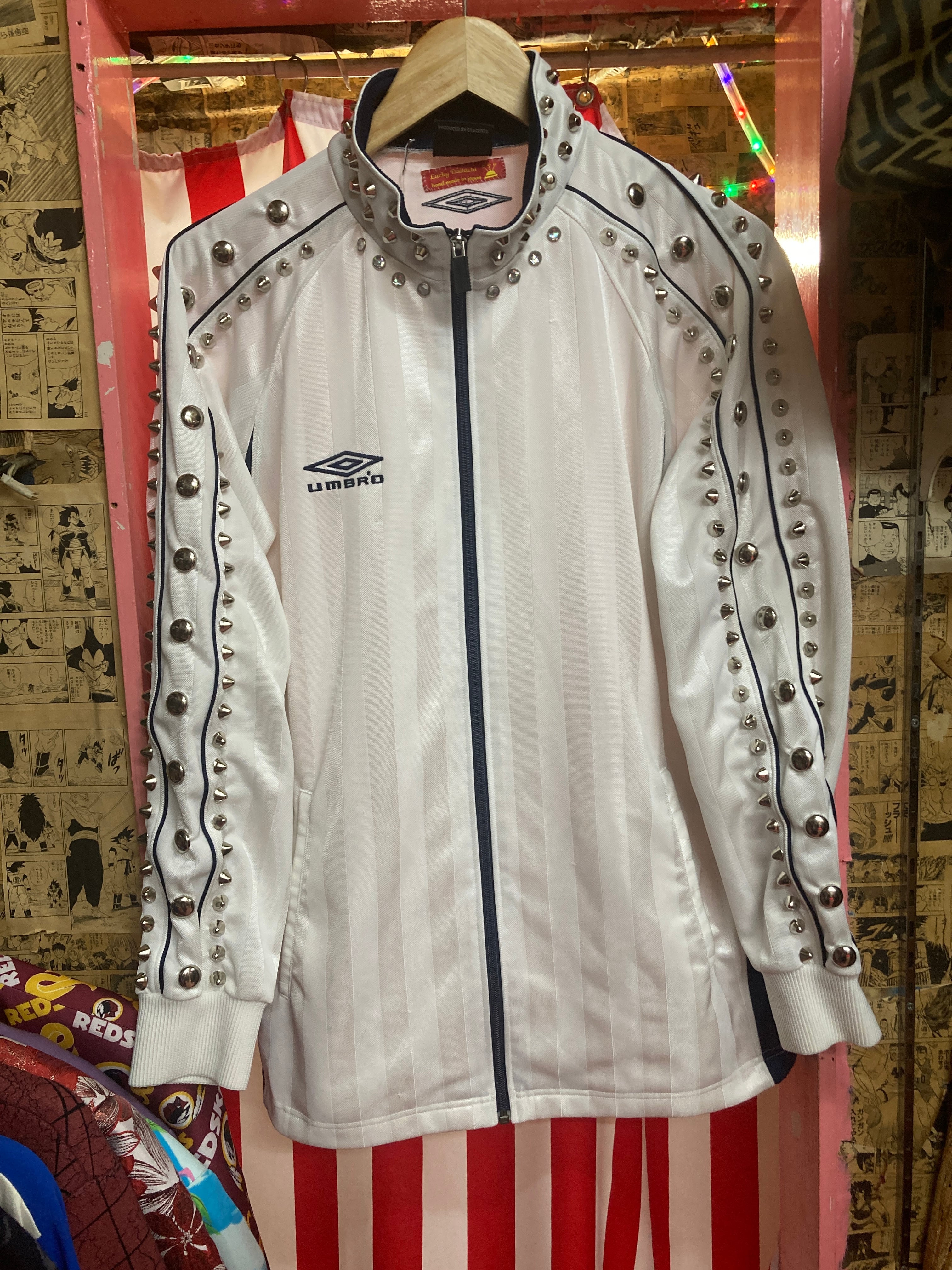 白トラックジャケットにスタッズカスタムが可愛いアイテム