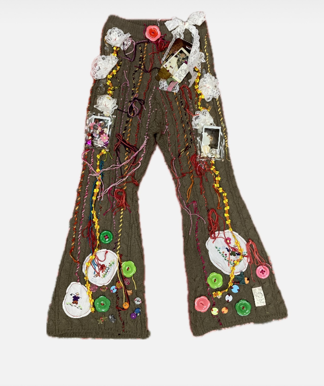 思い出つまった装飾リメイクが可愛いリメイクニットパンツ