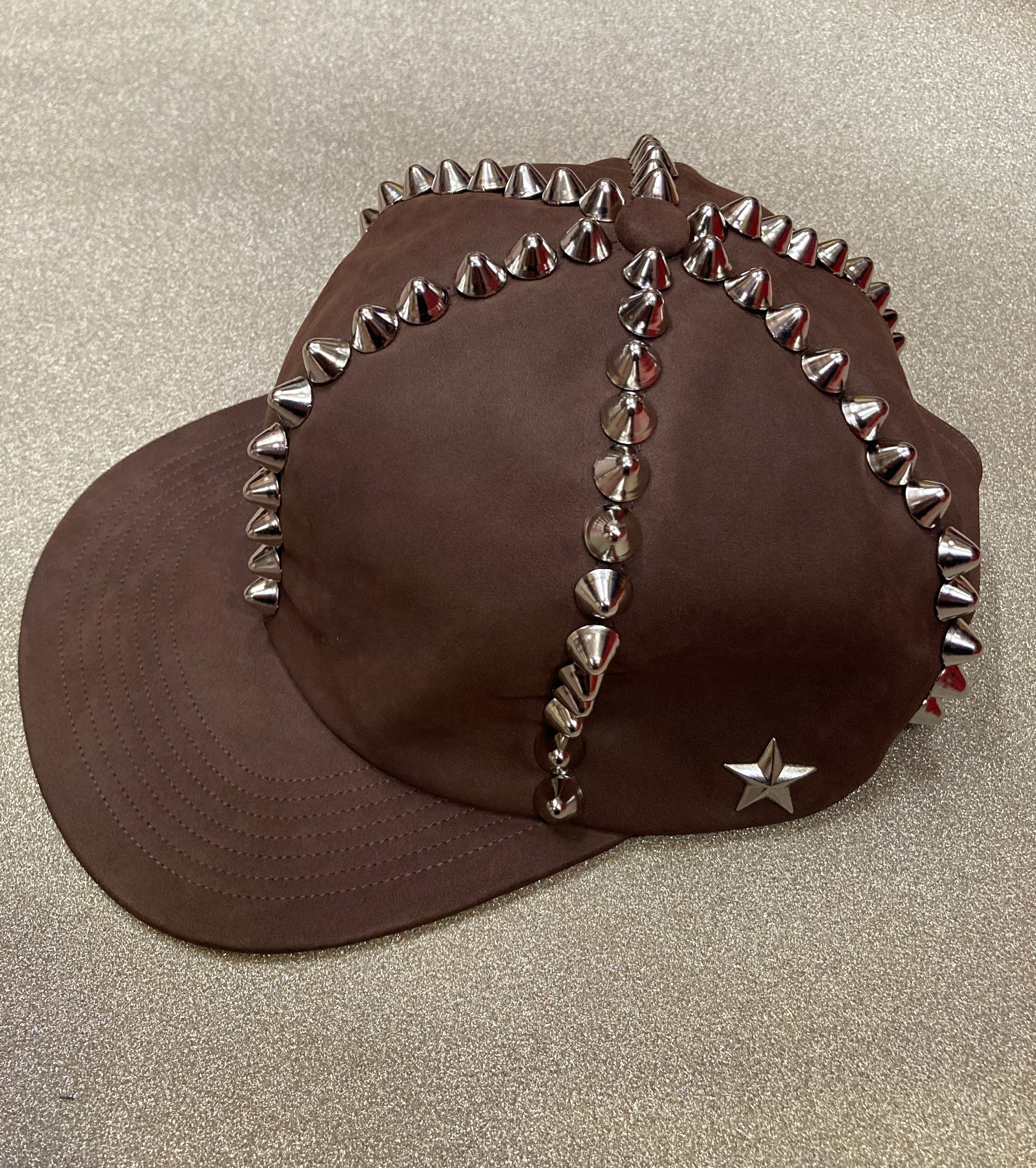 牛革タンニンなめし革のウォッシャブルレザーキャップにスタッズカスタム&ワンスターが可愛いアイテム