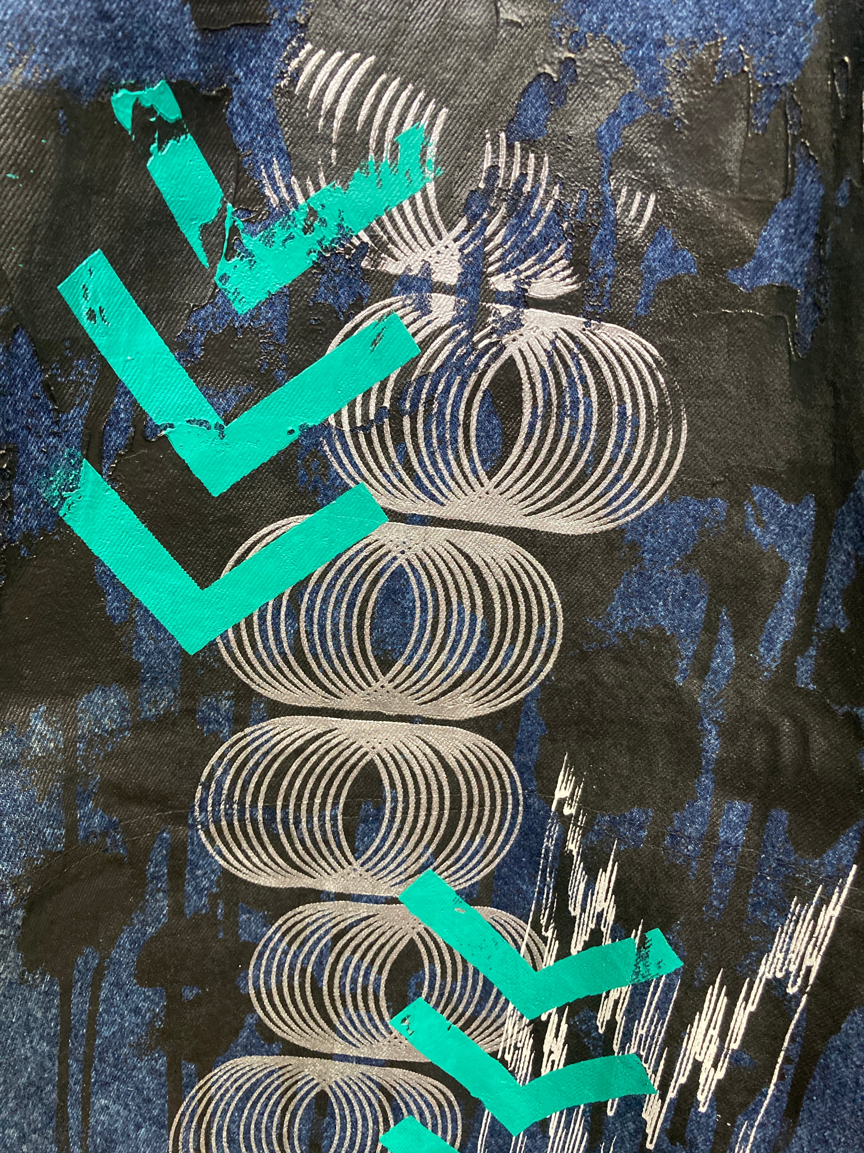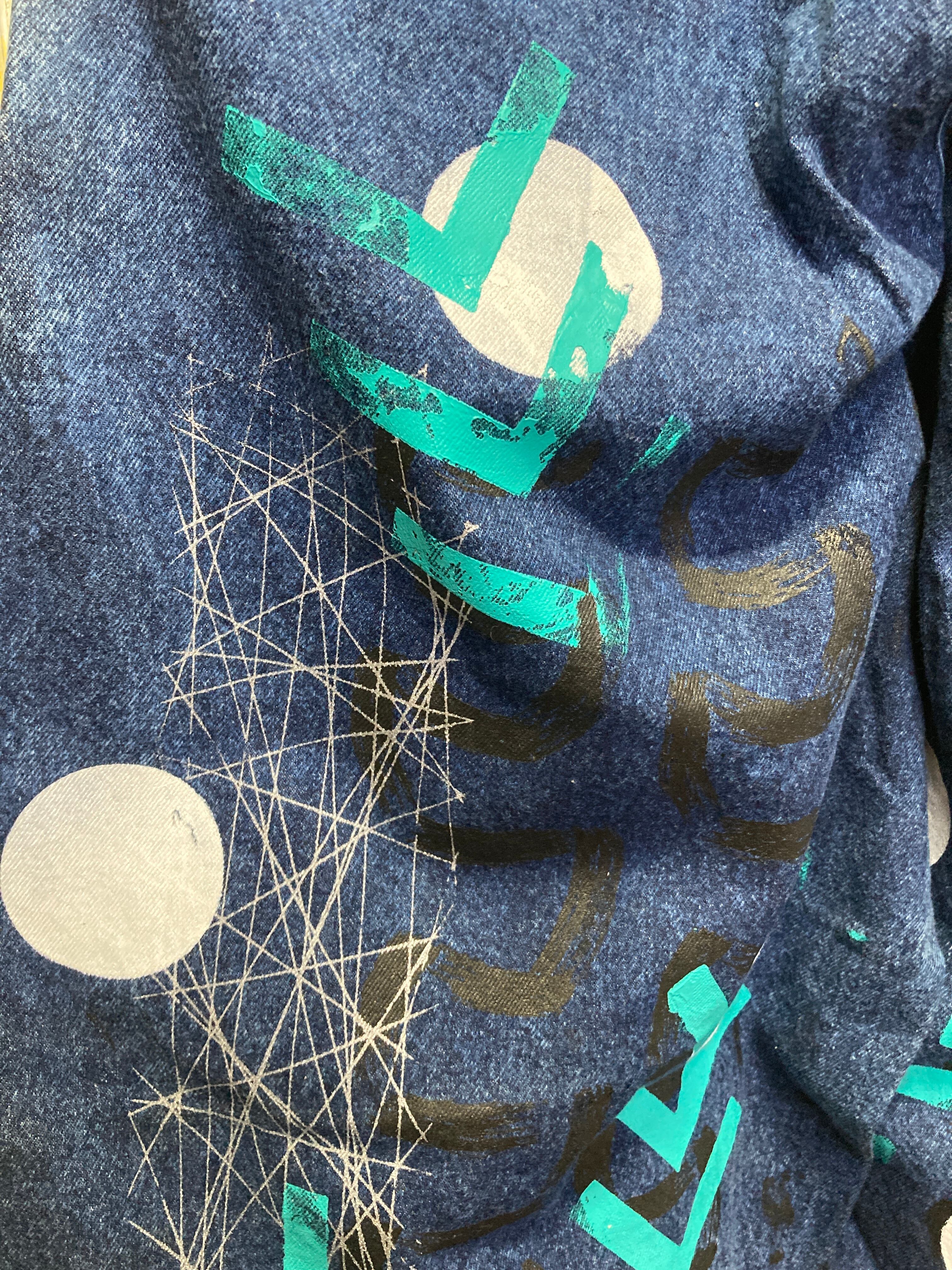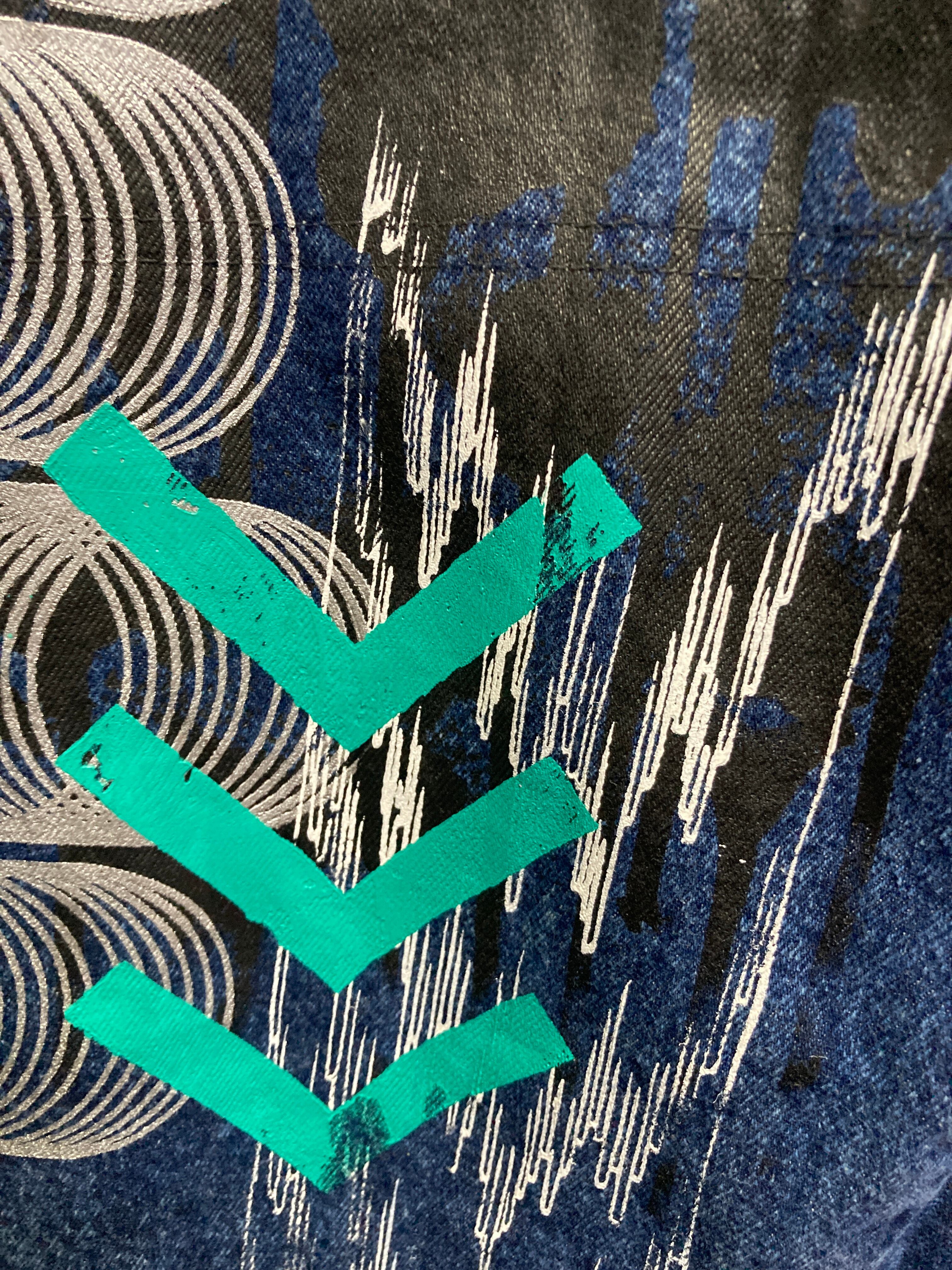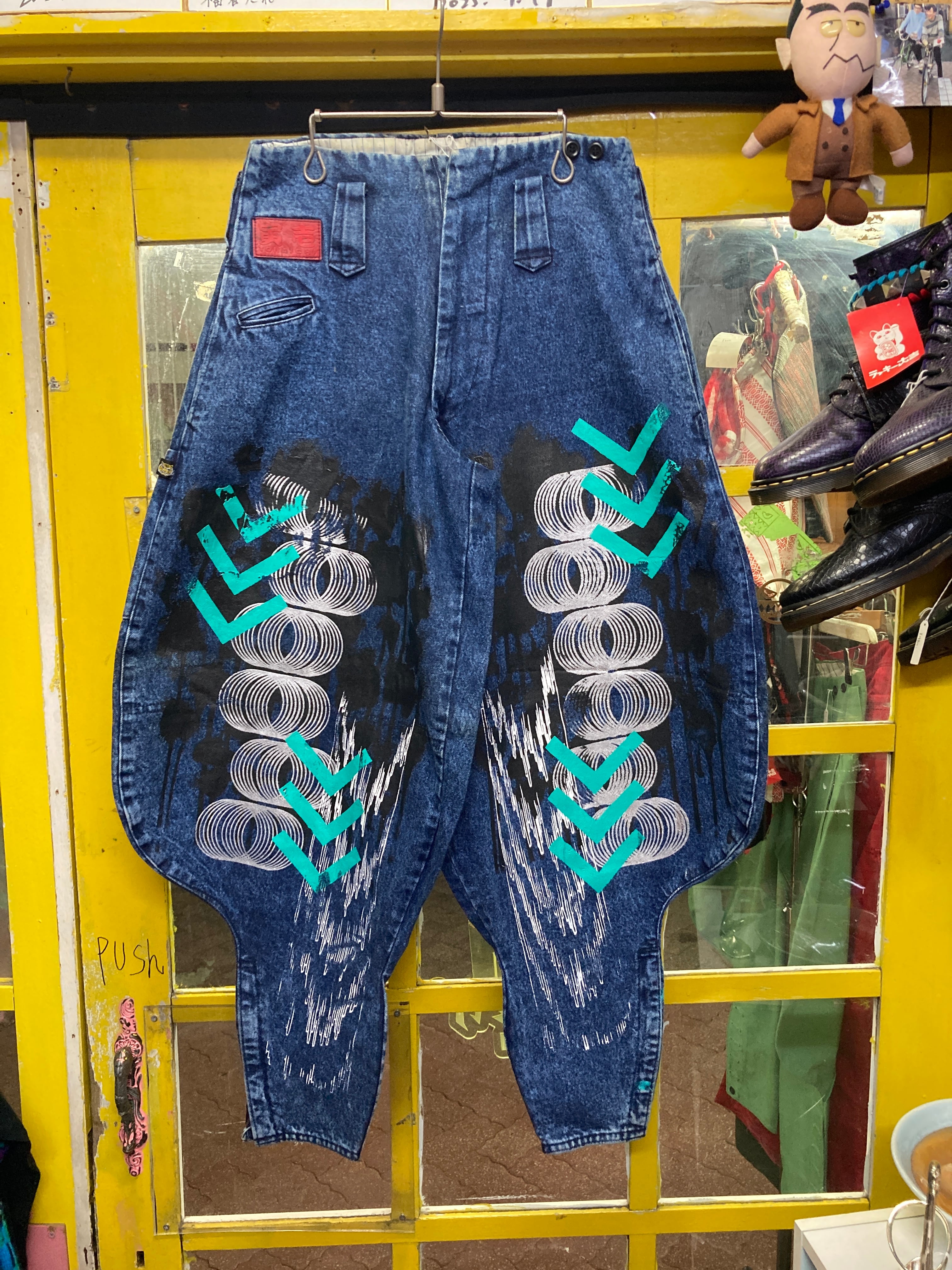 デニムニッカパンツにシルクスクリーンベタ塗りプリントがかっこいいアイテム