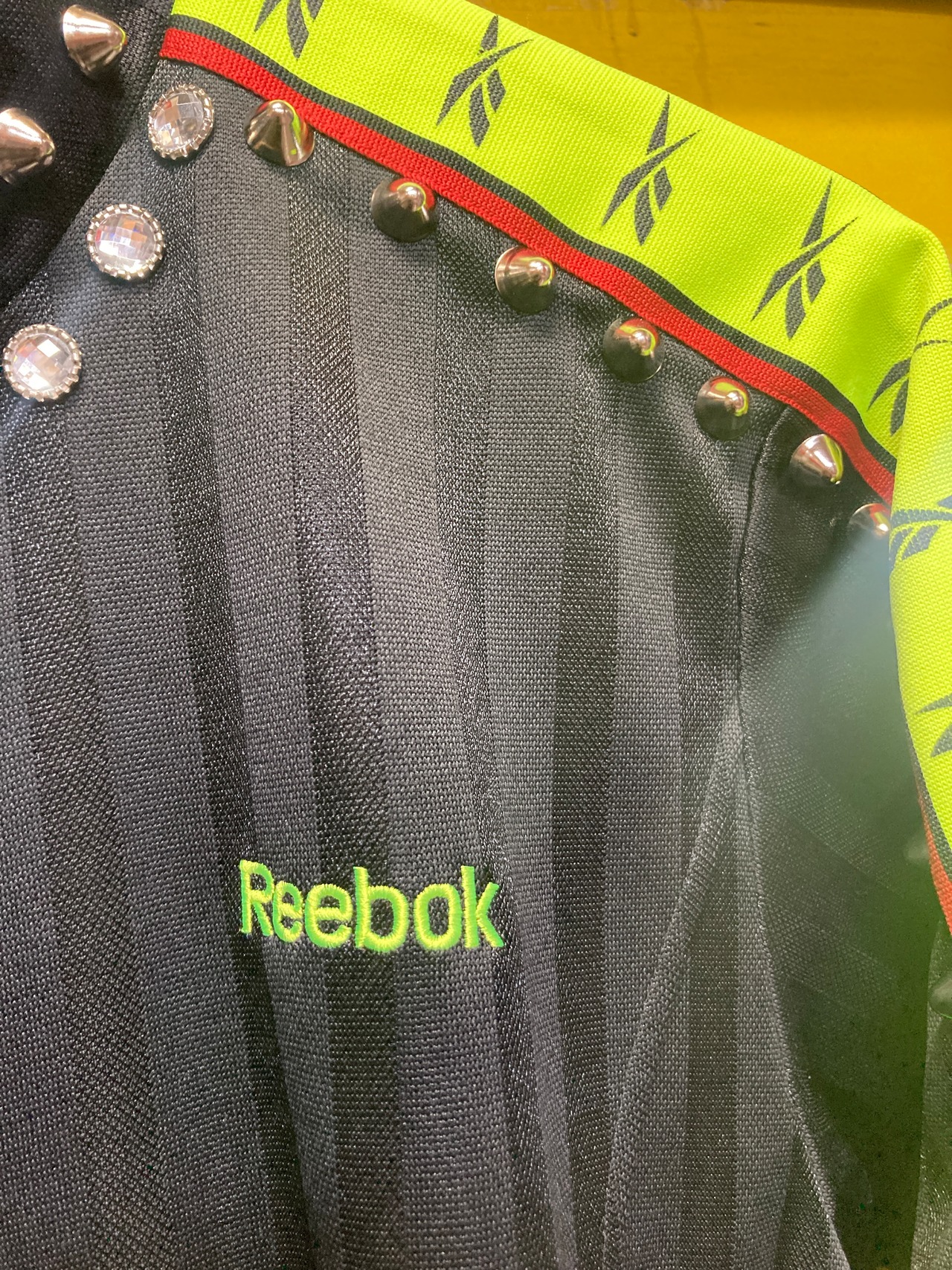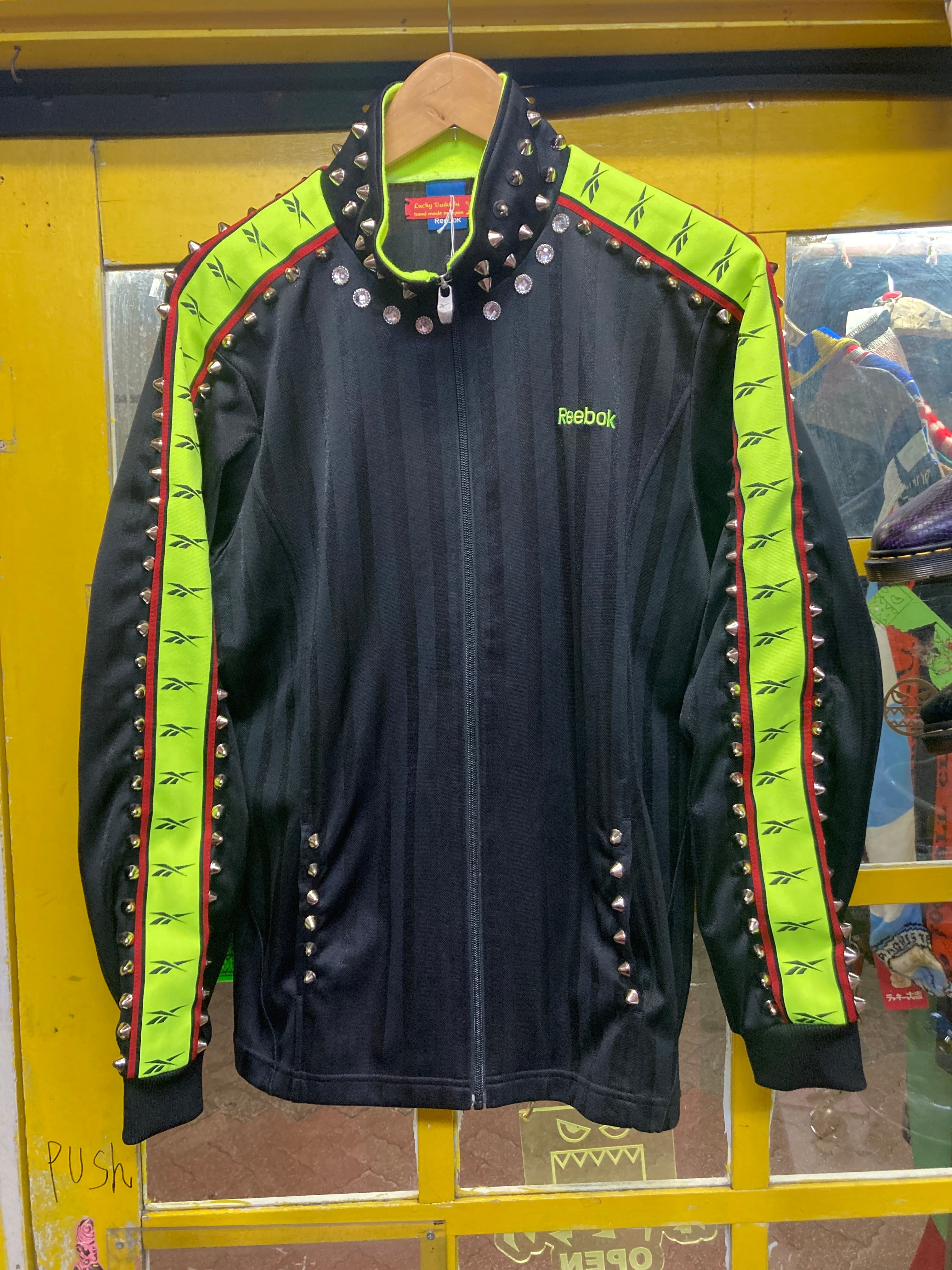 ネオンカラー&ブラック組み合わせが可愛いトラックジャケットのスタッズカスタムアイテム