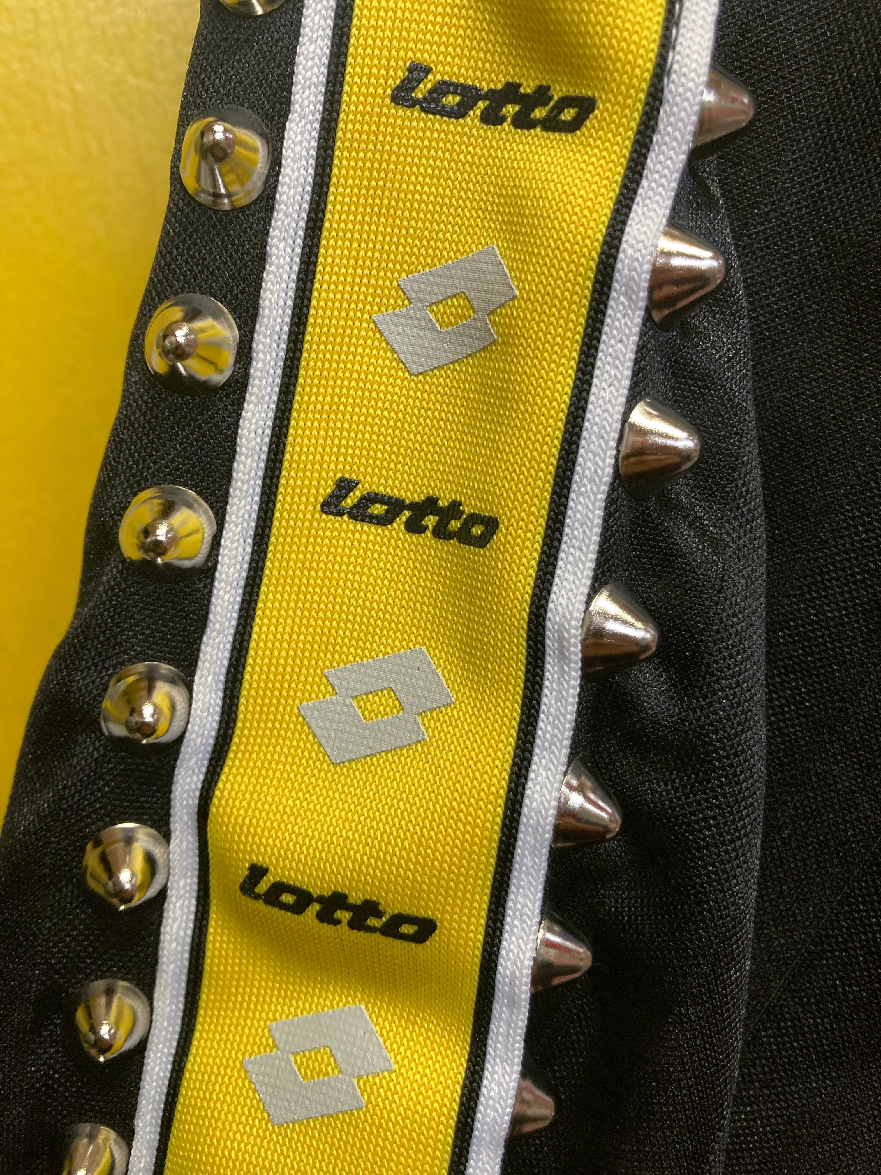 黒x黄カラーリングが可愛いトラックジャケットの鋲カスタムアイテム