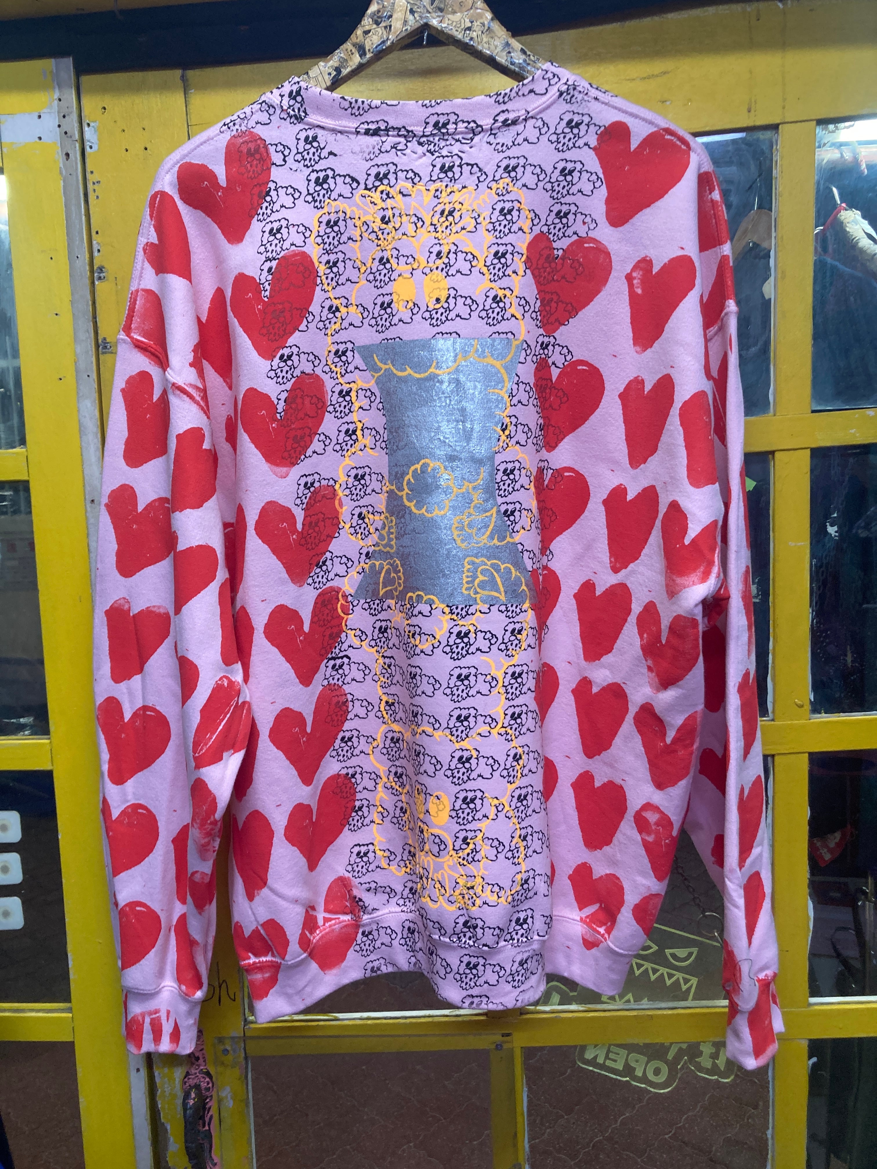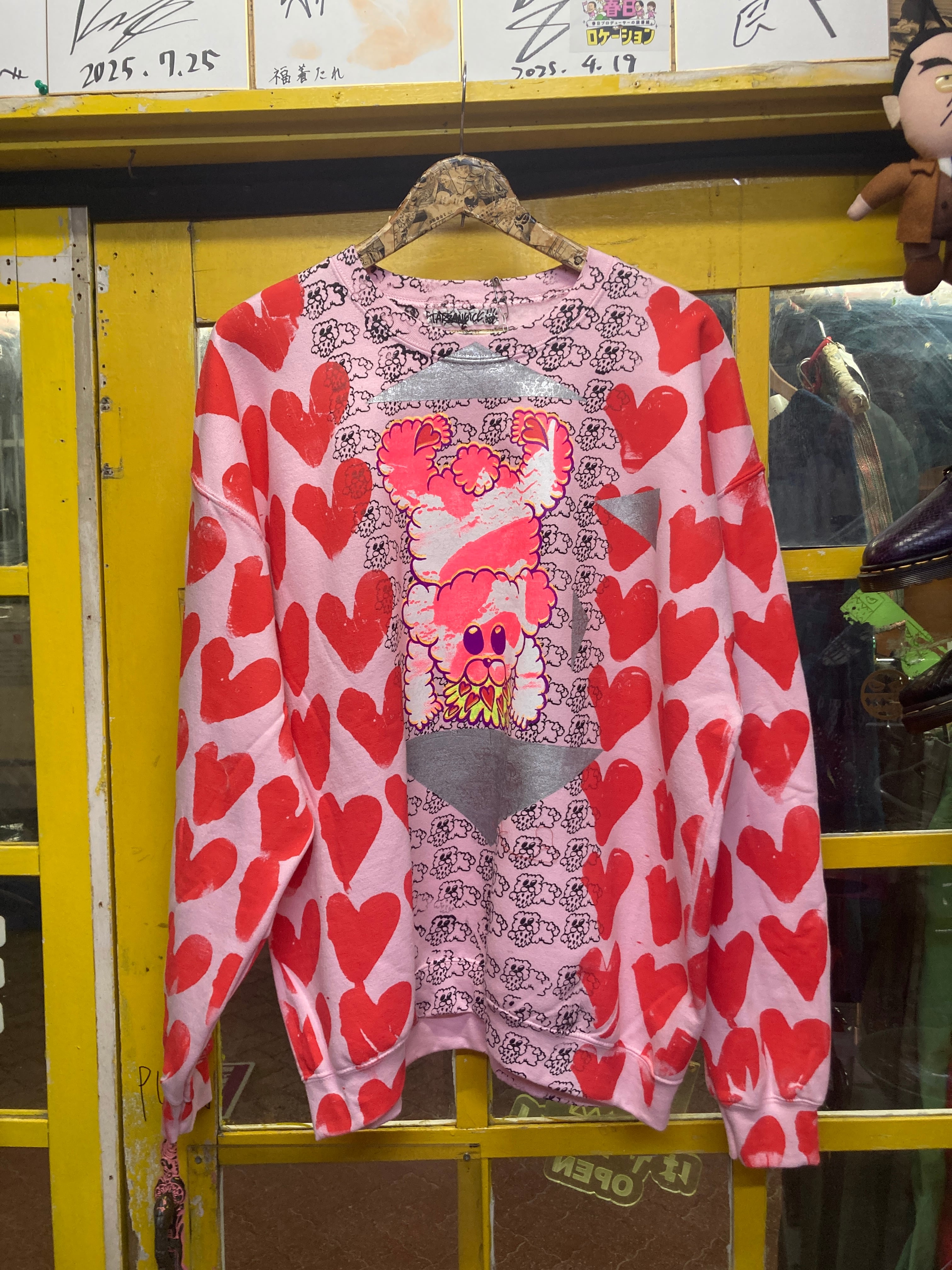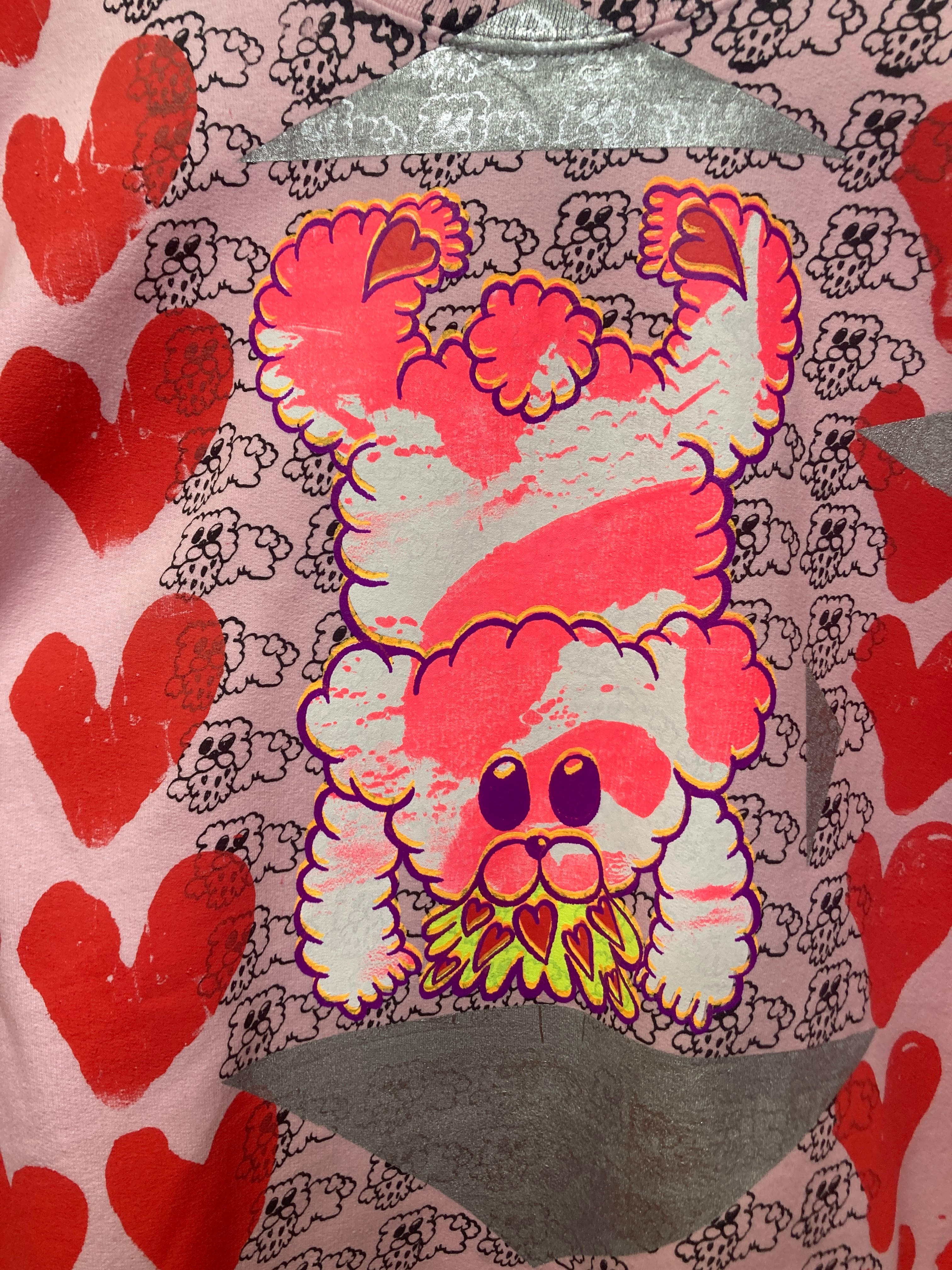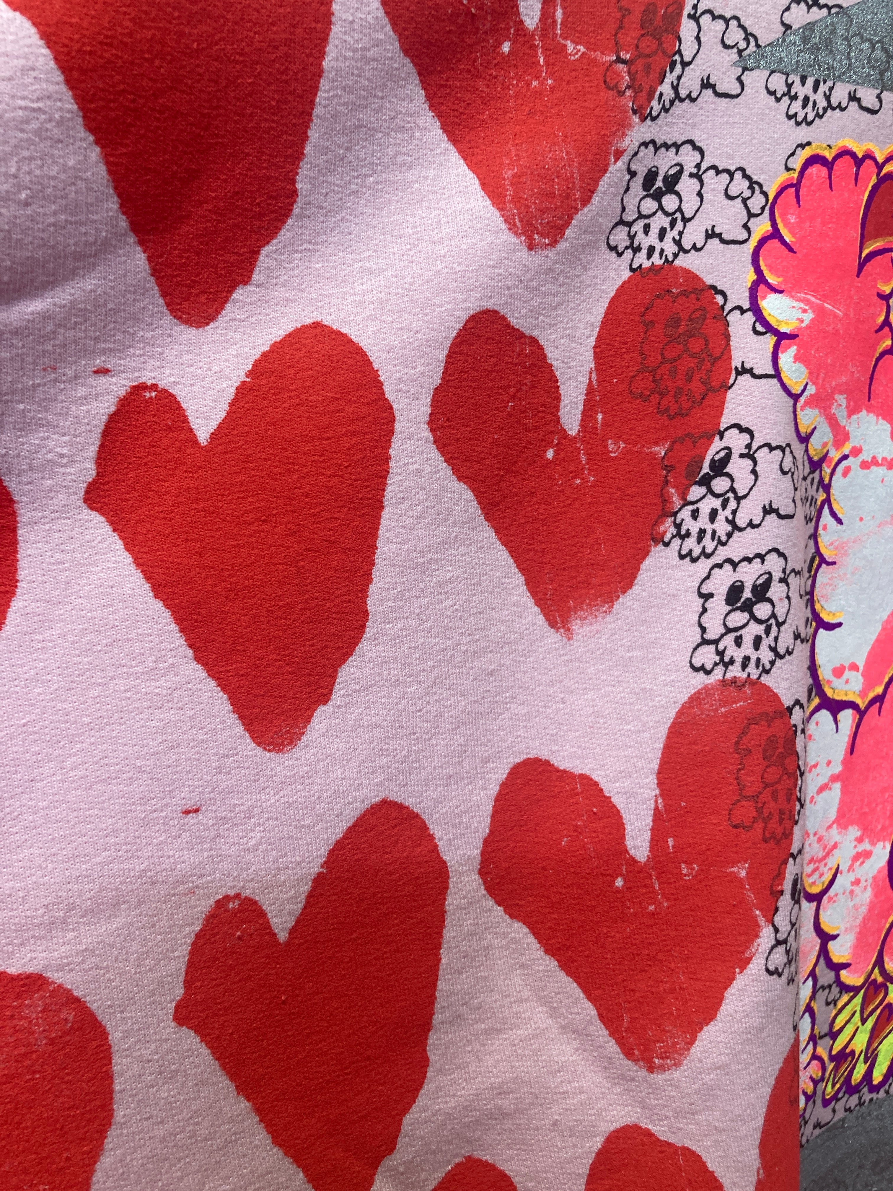 ピンクスウェット ボディーに総柄ハート&ゲロクマプリントが可愛いオーバーサイズスウェット