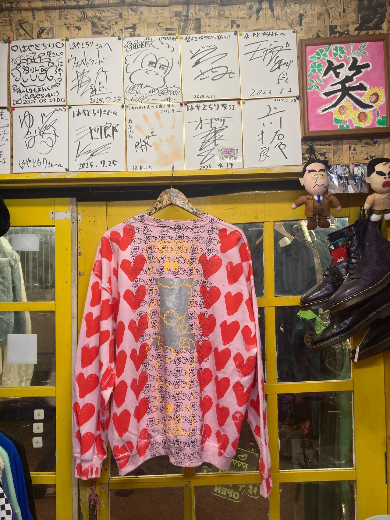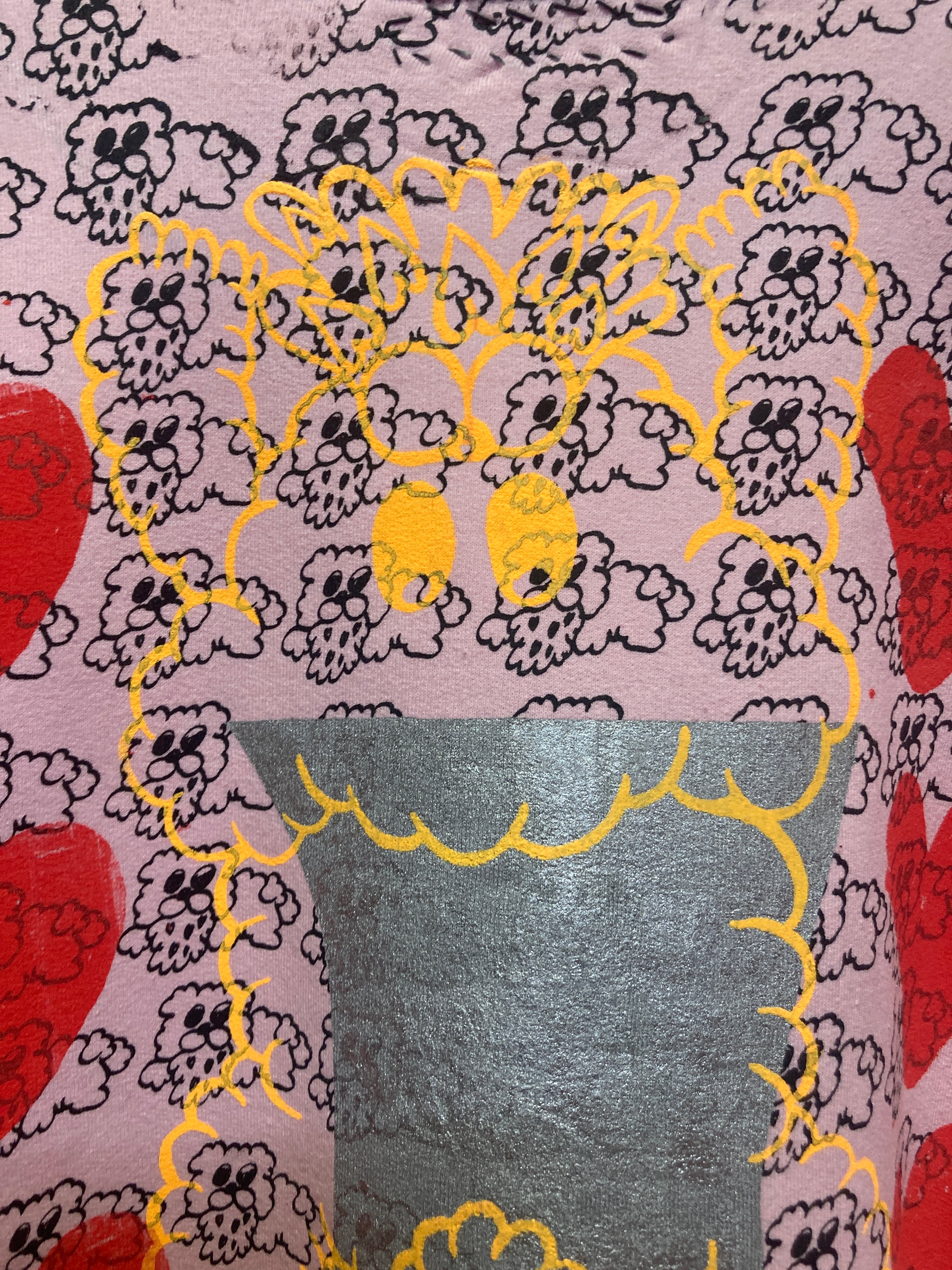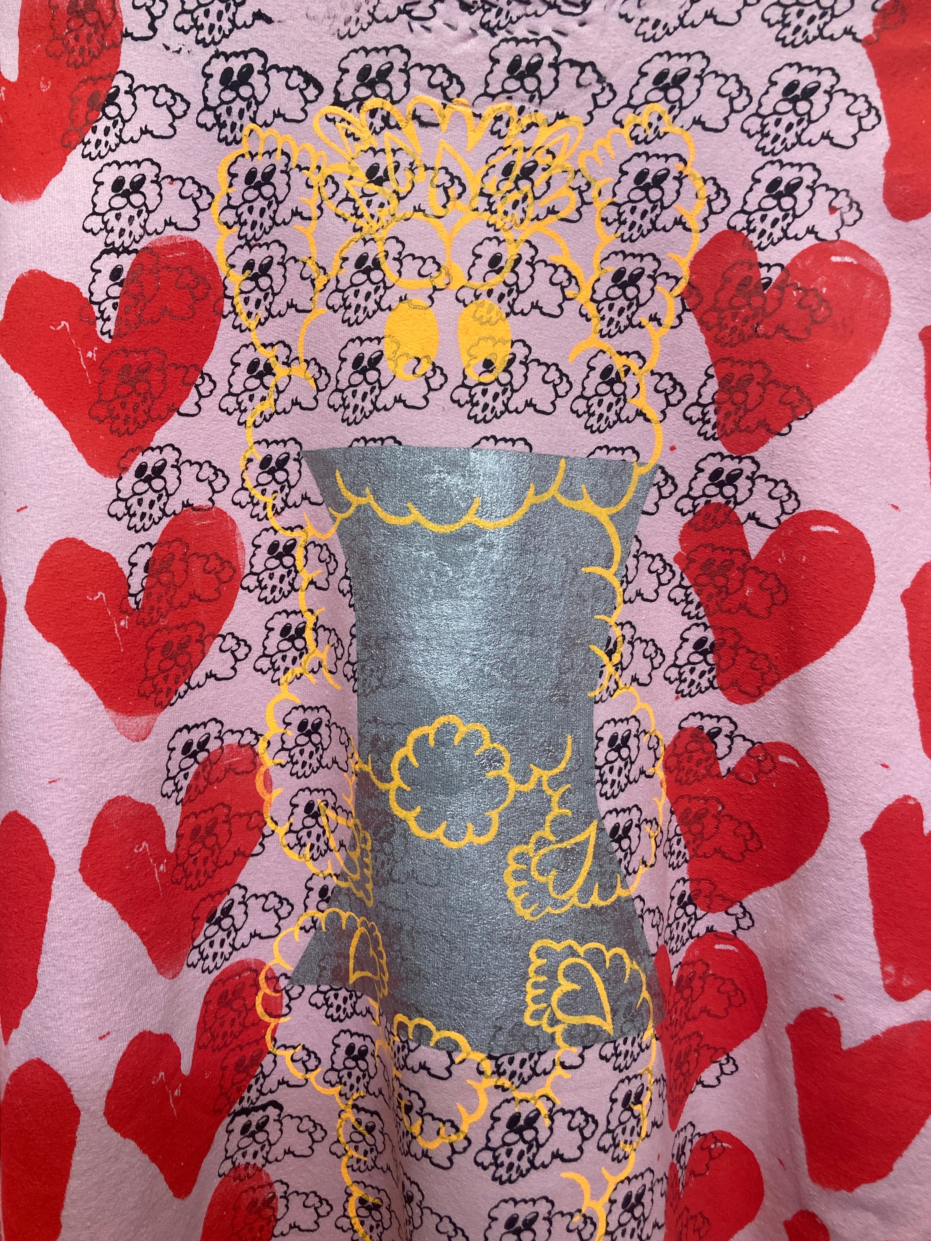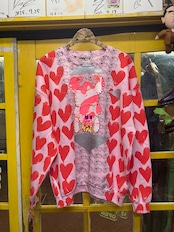 ピンクスウェット ボディーに総柄ハート&ゲロクマプリントが可愛いオーバーサイズスウェット