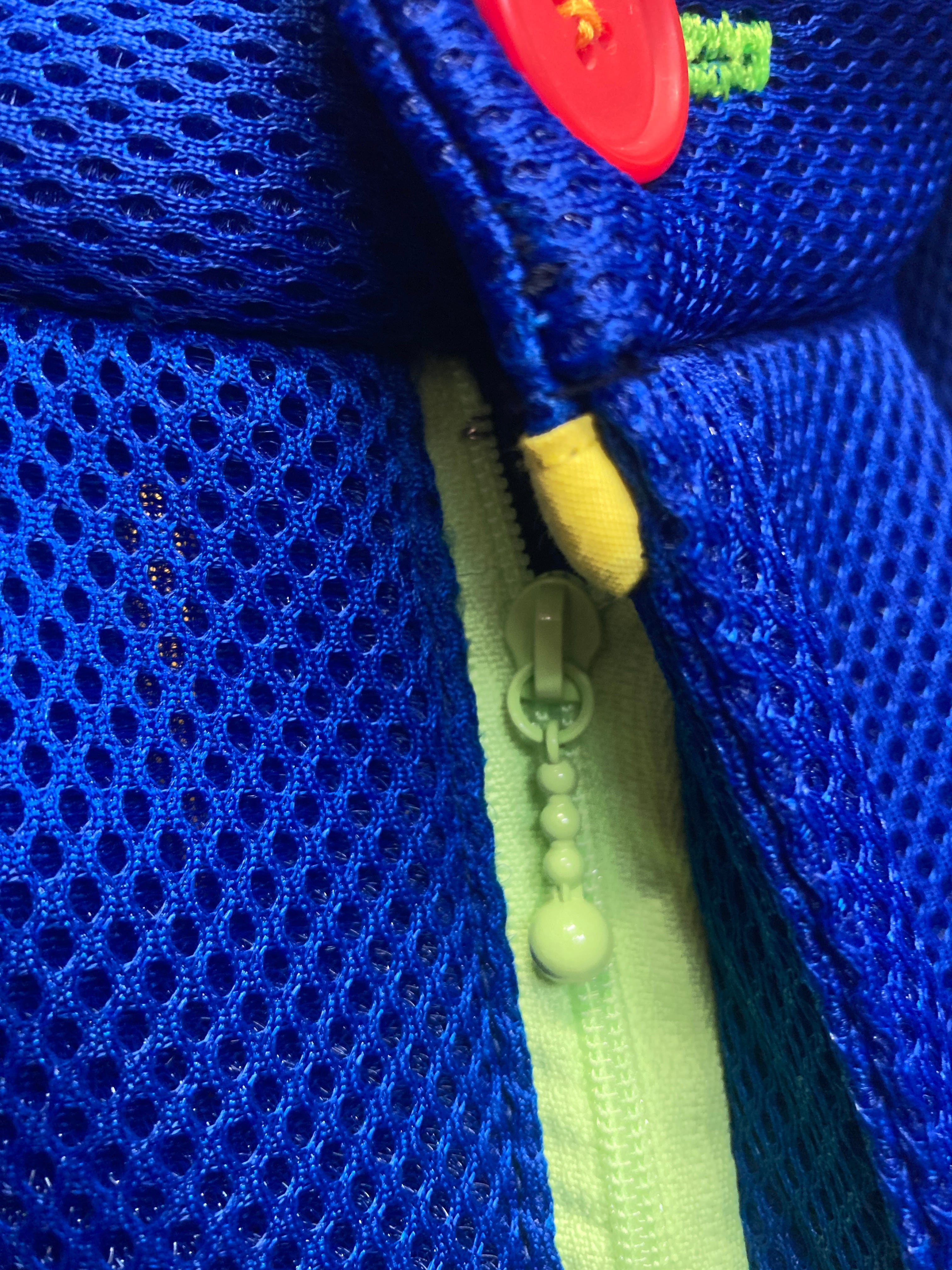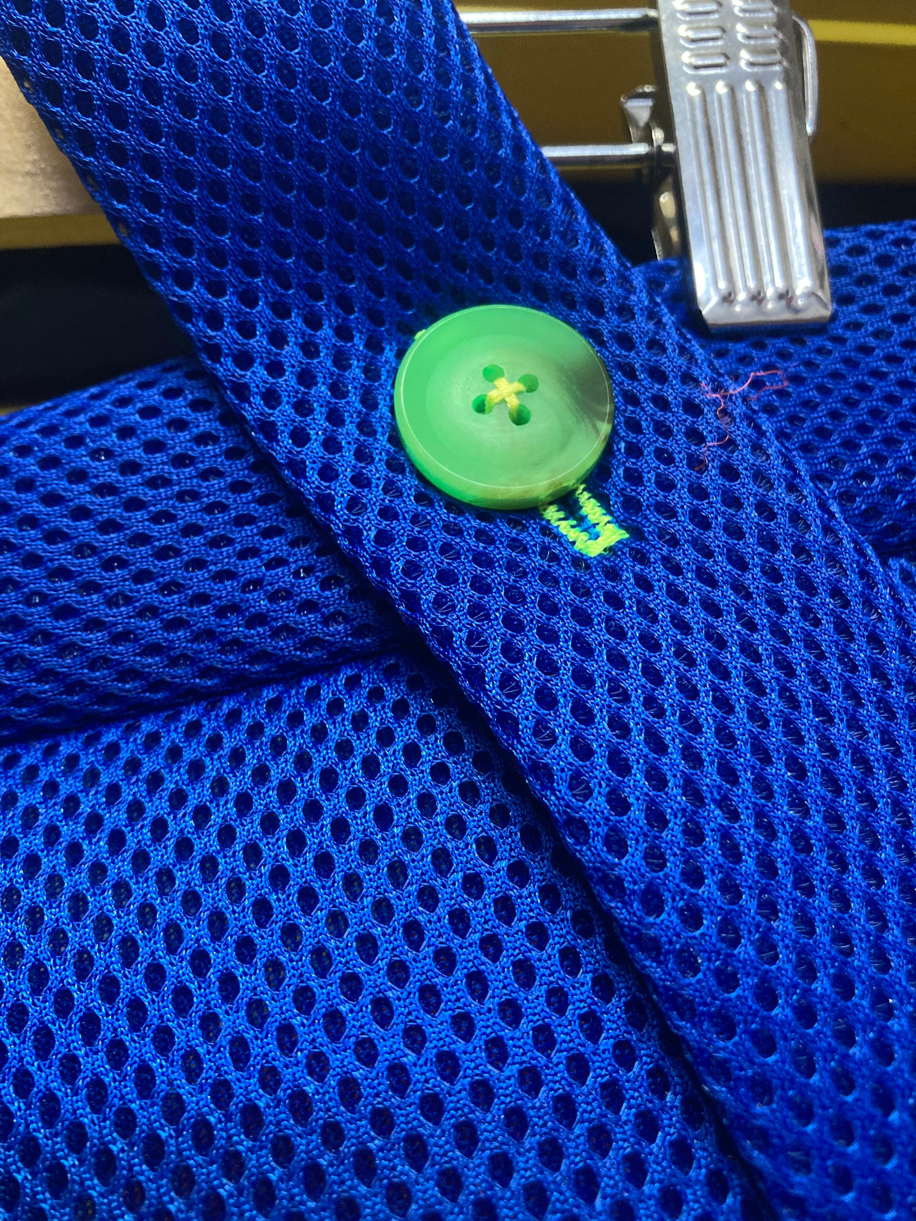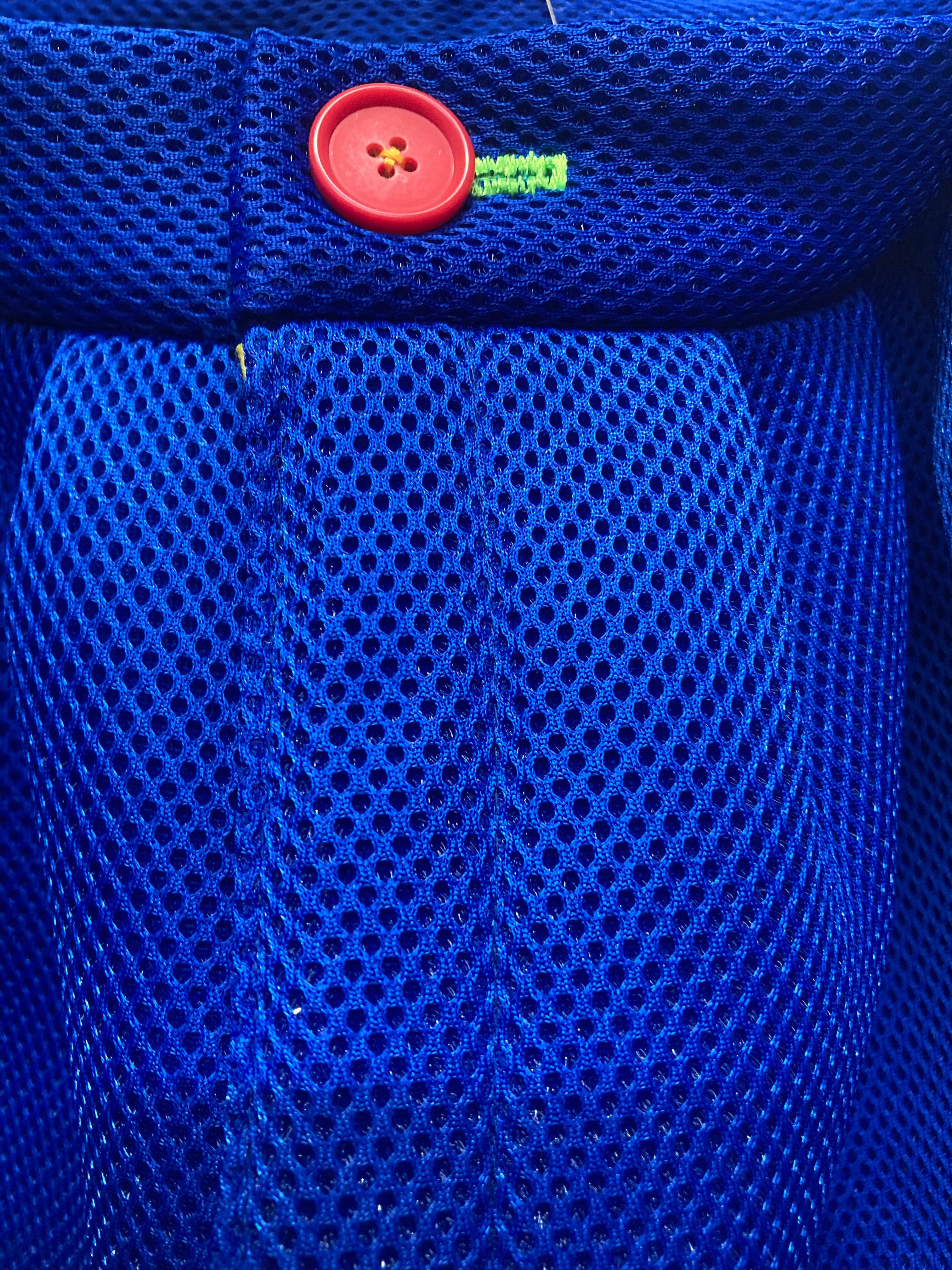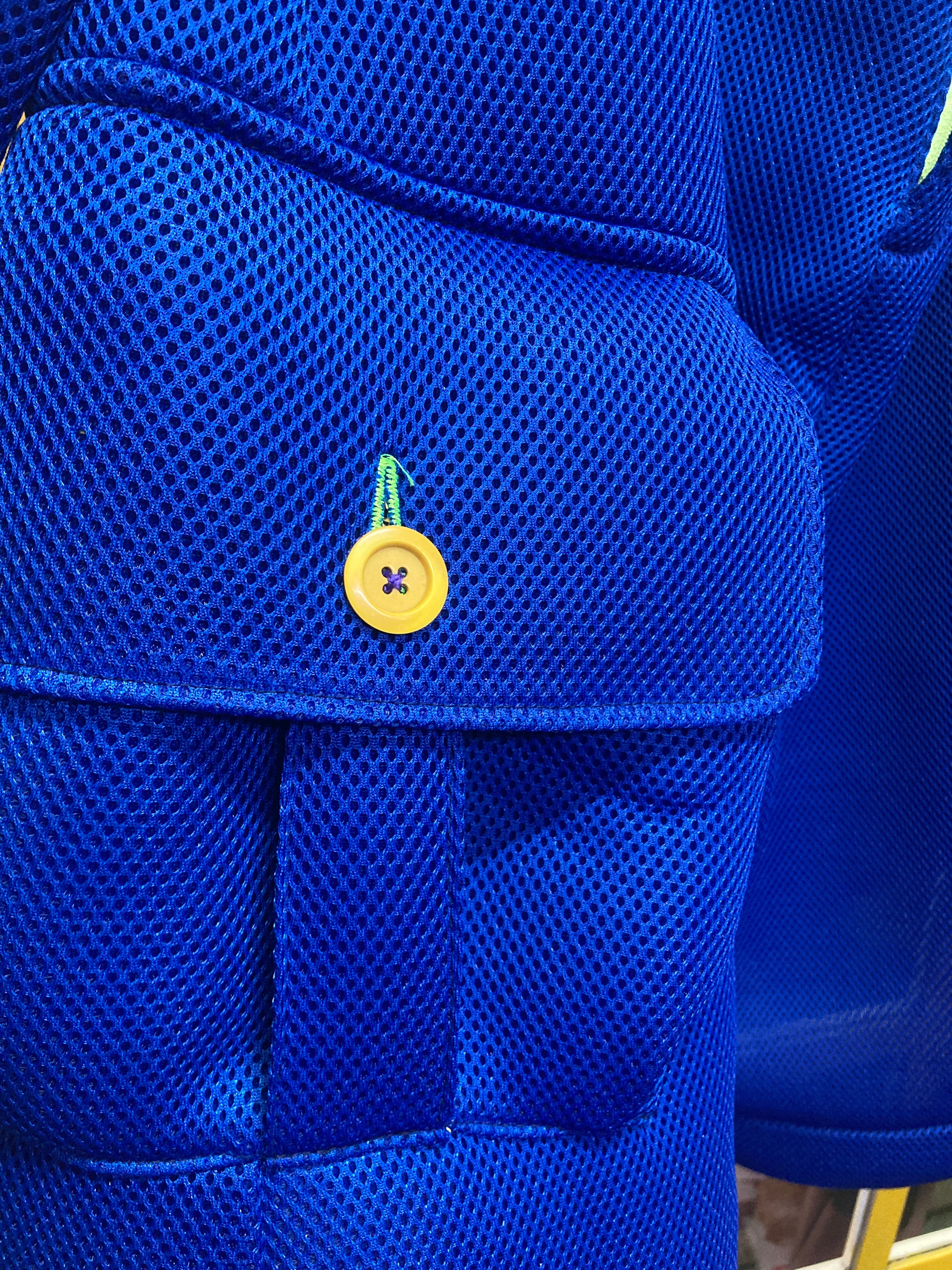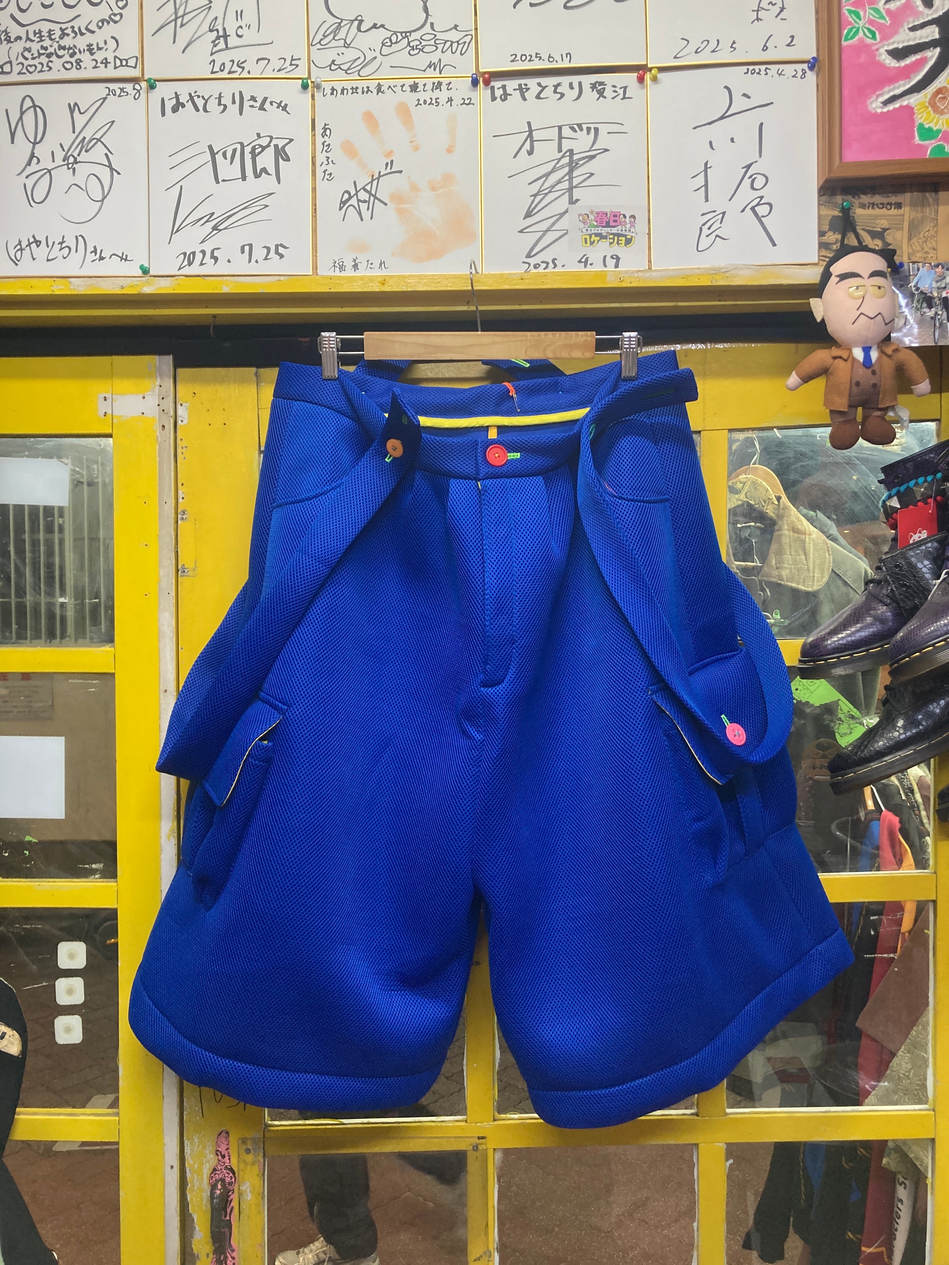発色いいメッシュブルーにポップなステッチ&ボタンが可愛いオーバーサイズカーゴハーフパンツ