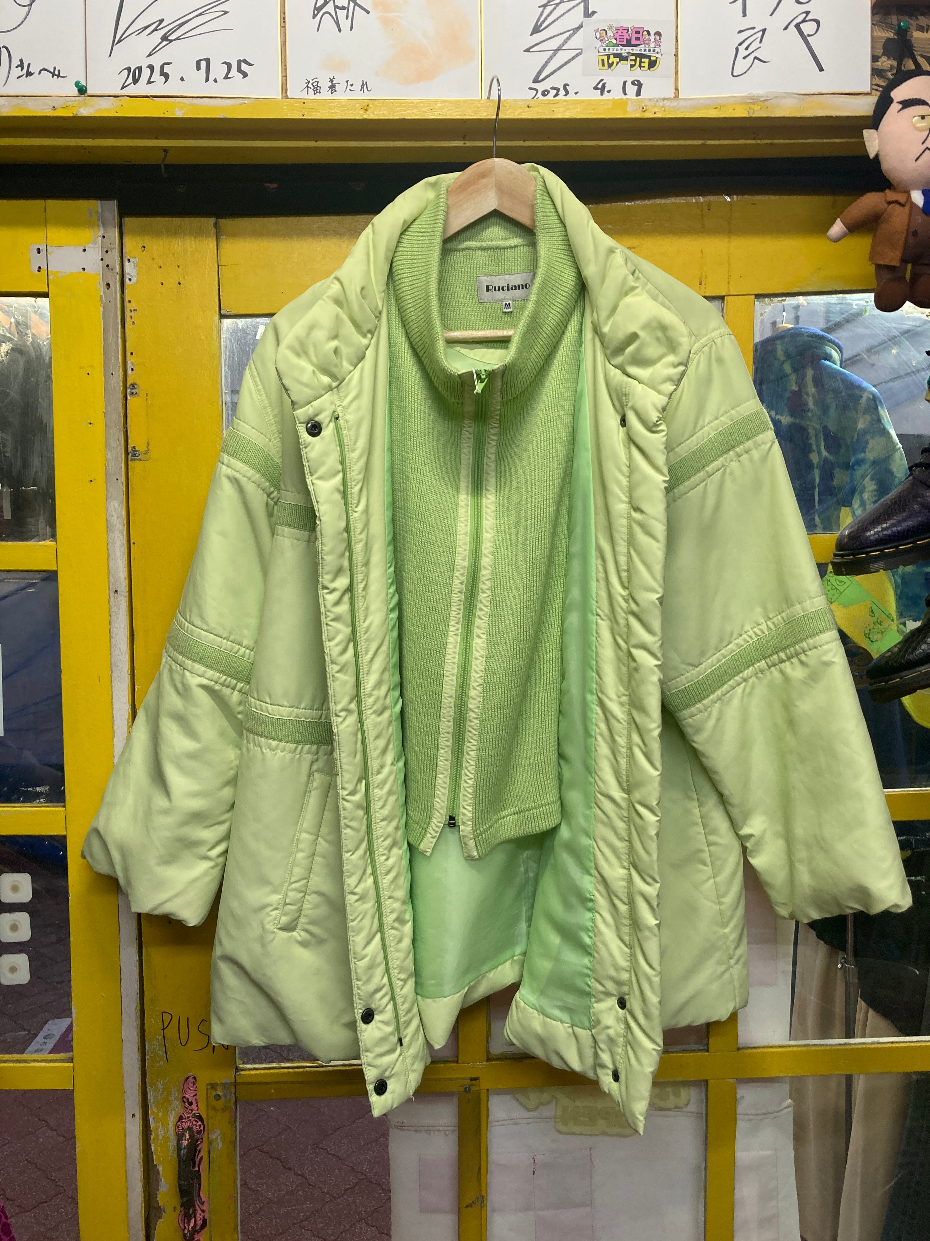 ライムグリーンニットドッキングブルゾン used