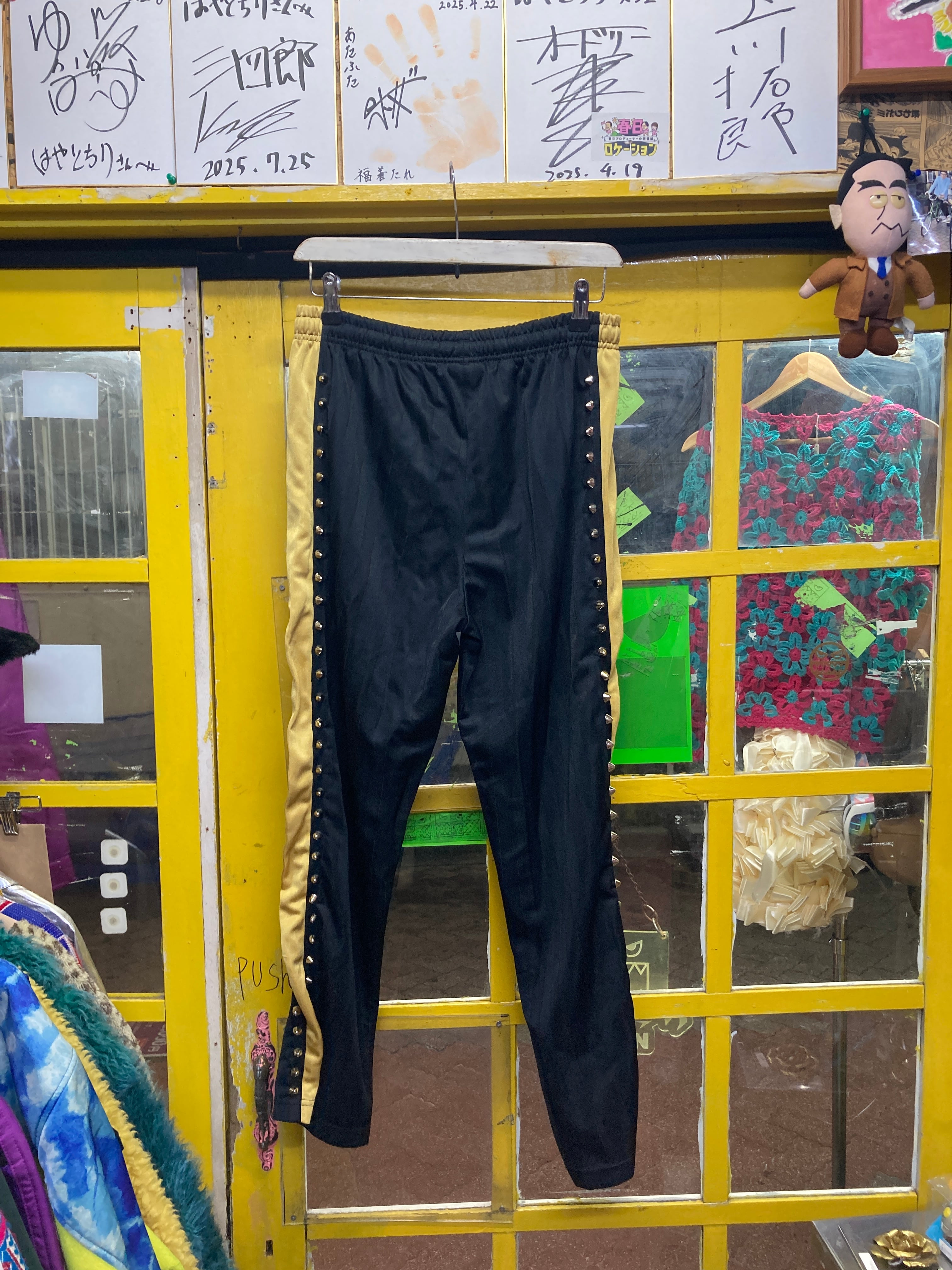 鋲ジャージ パンツ 黒金カラー