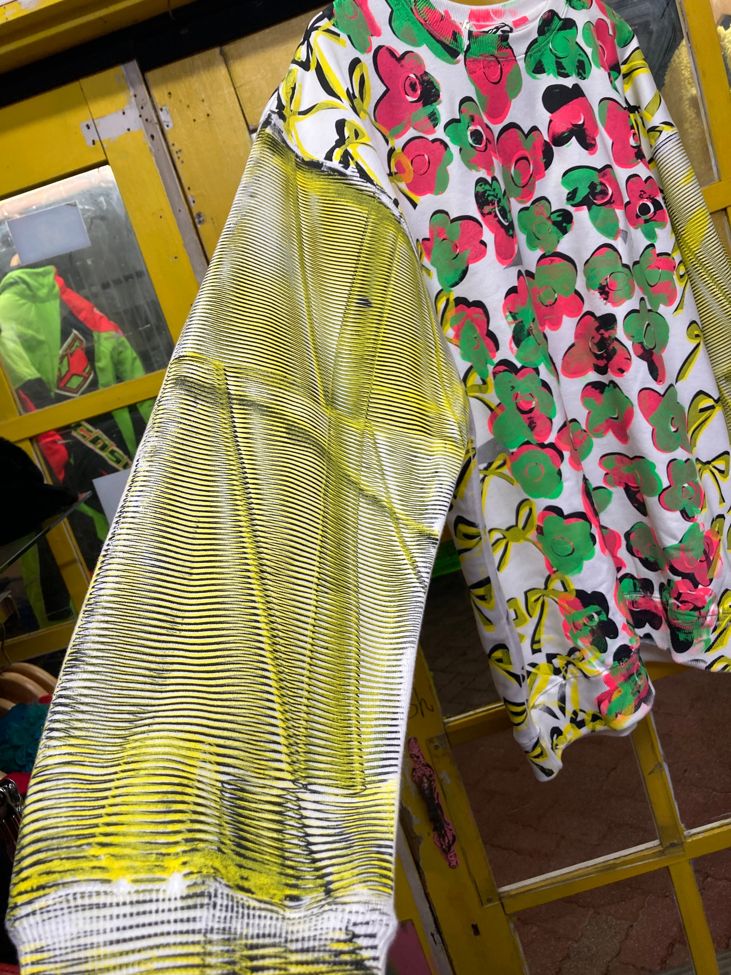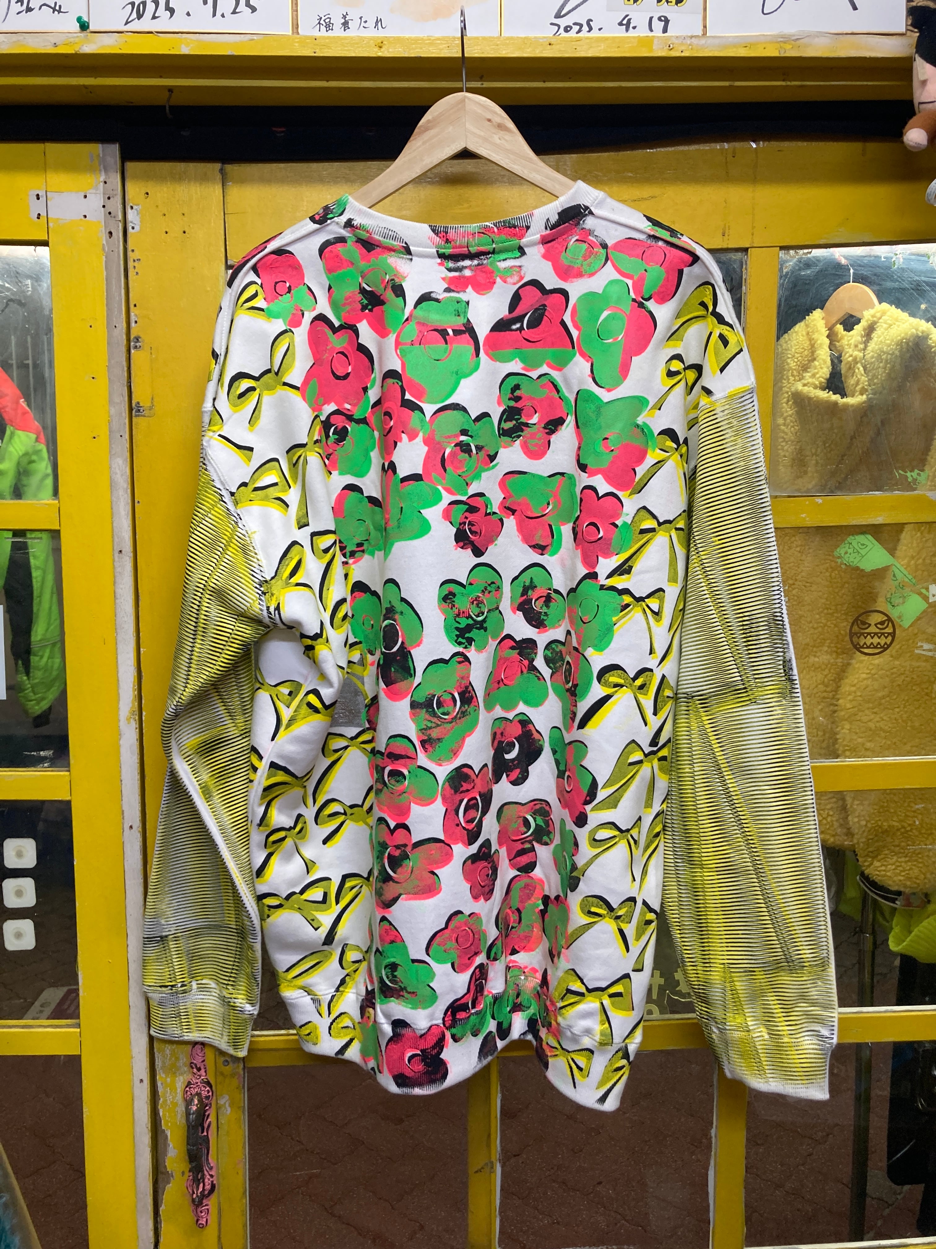 花とリボンの手刷り総柄が可愛いスウェット
