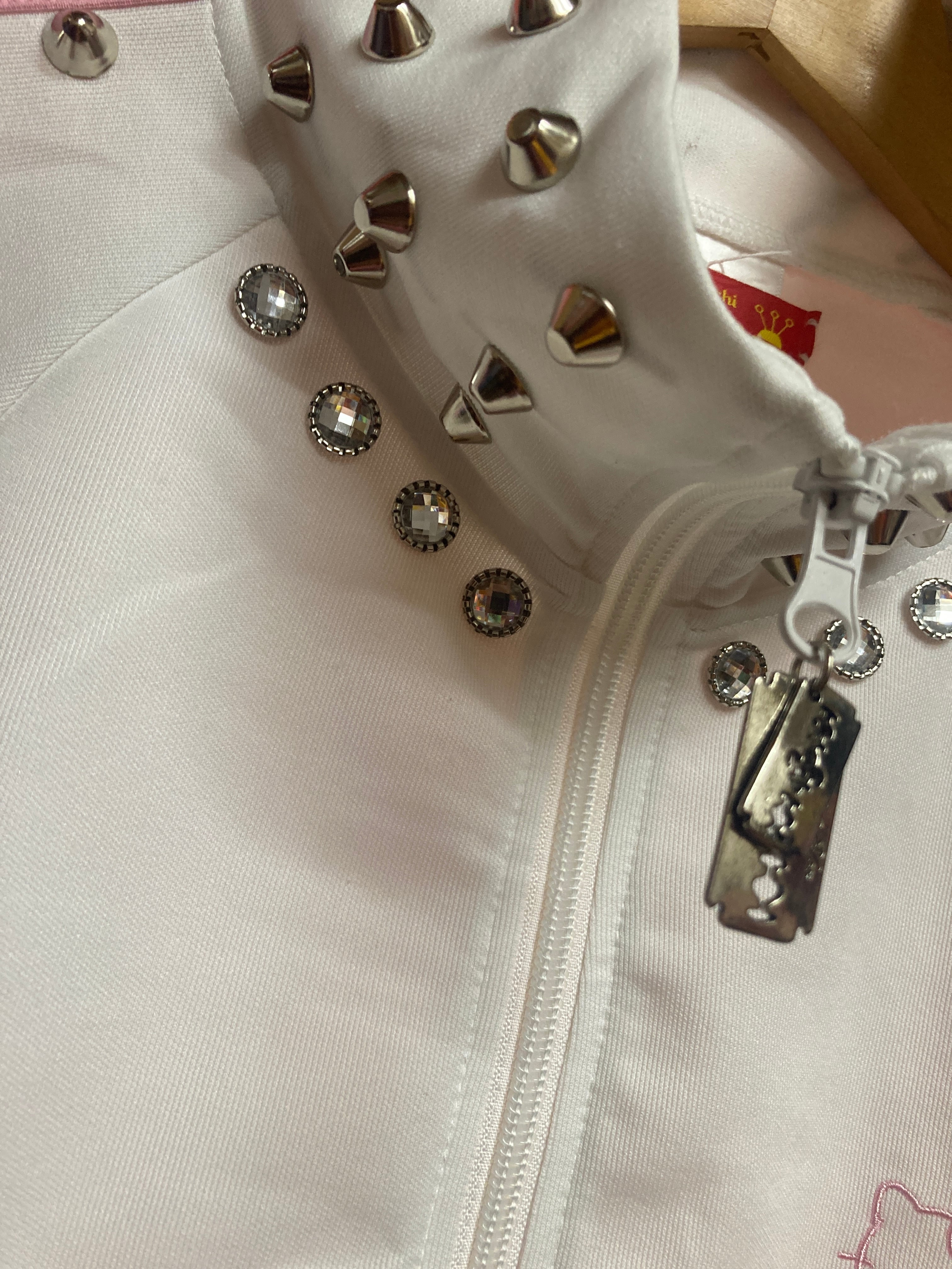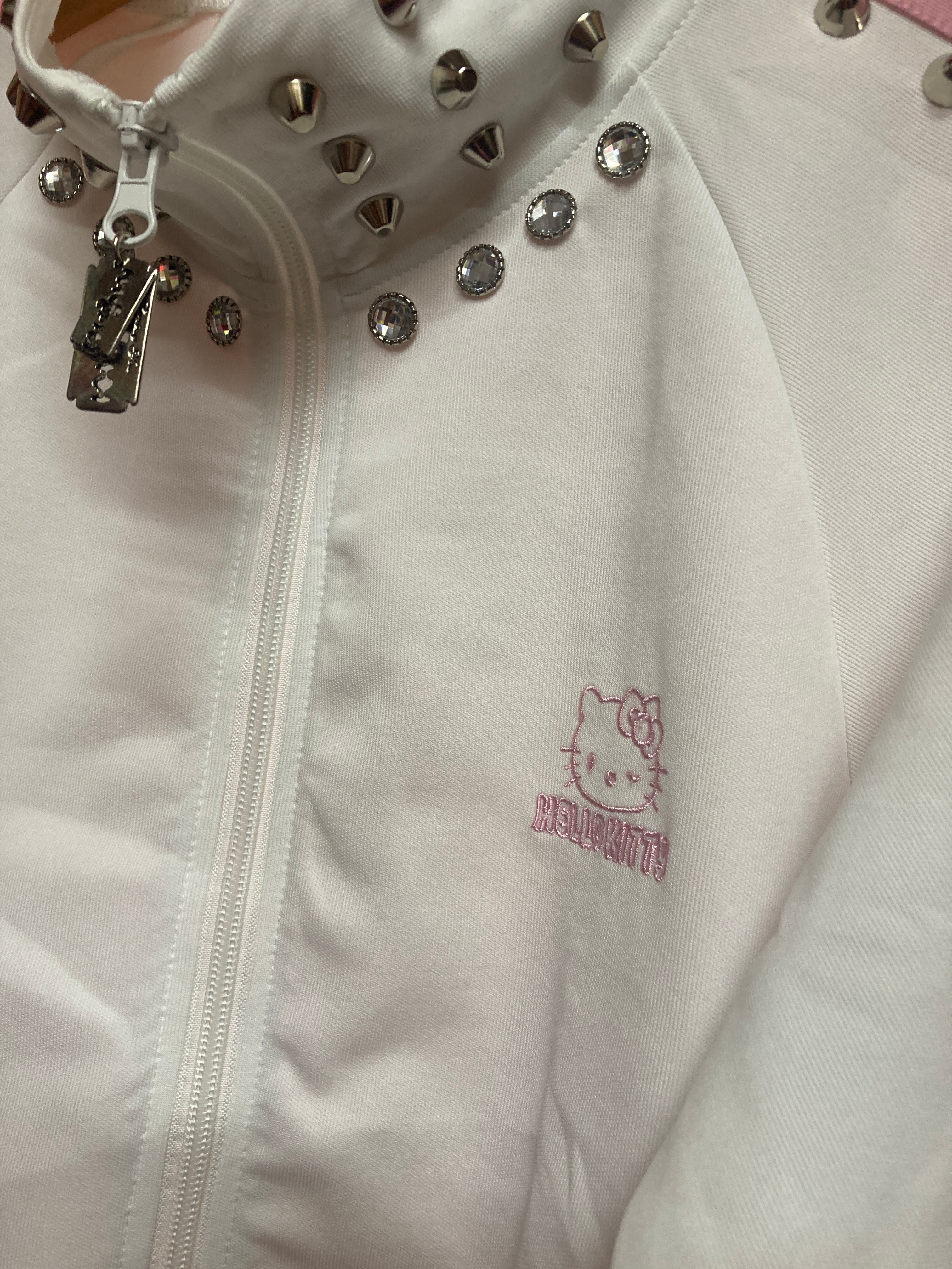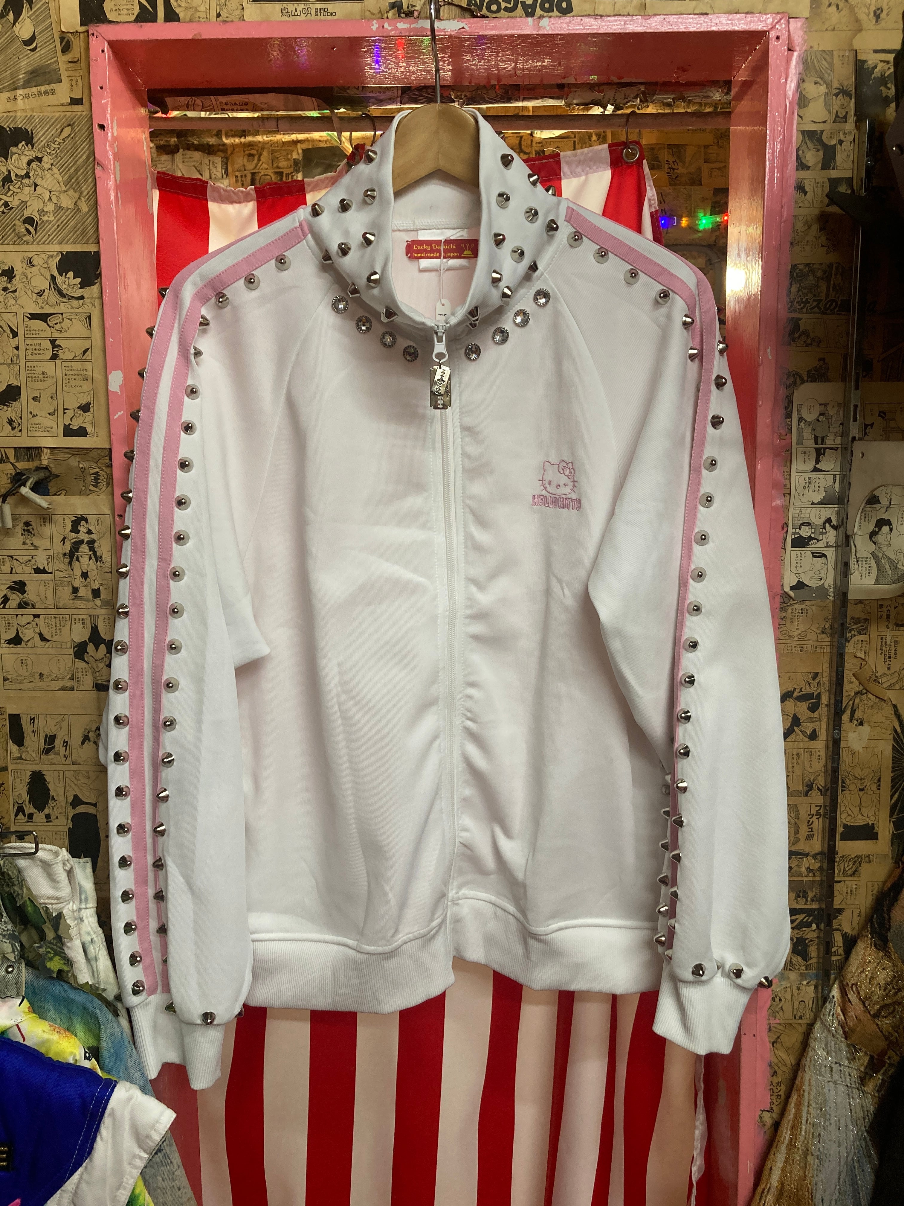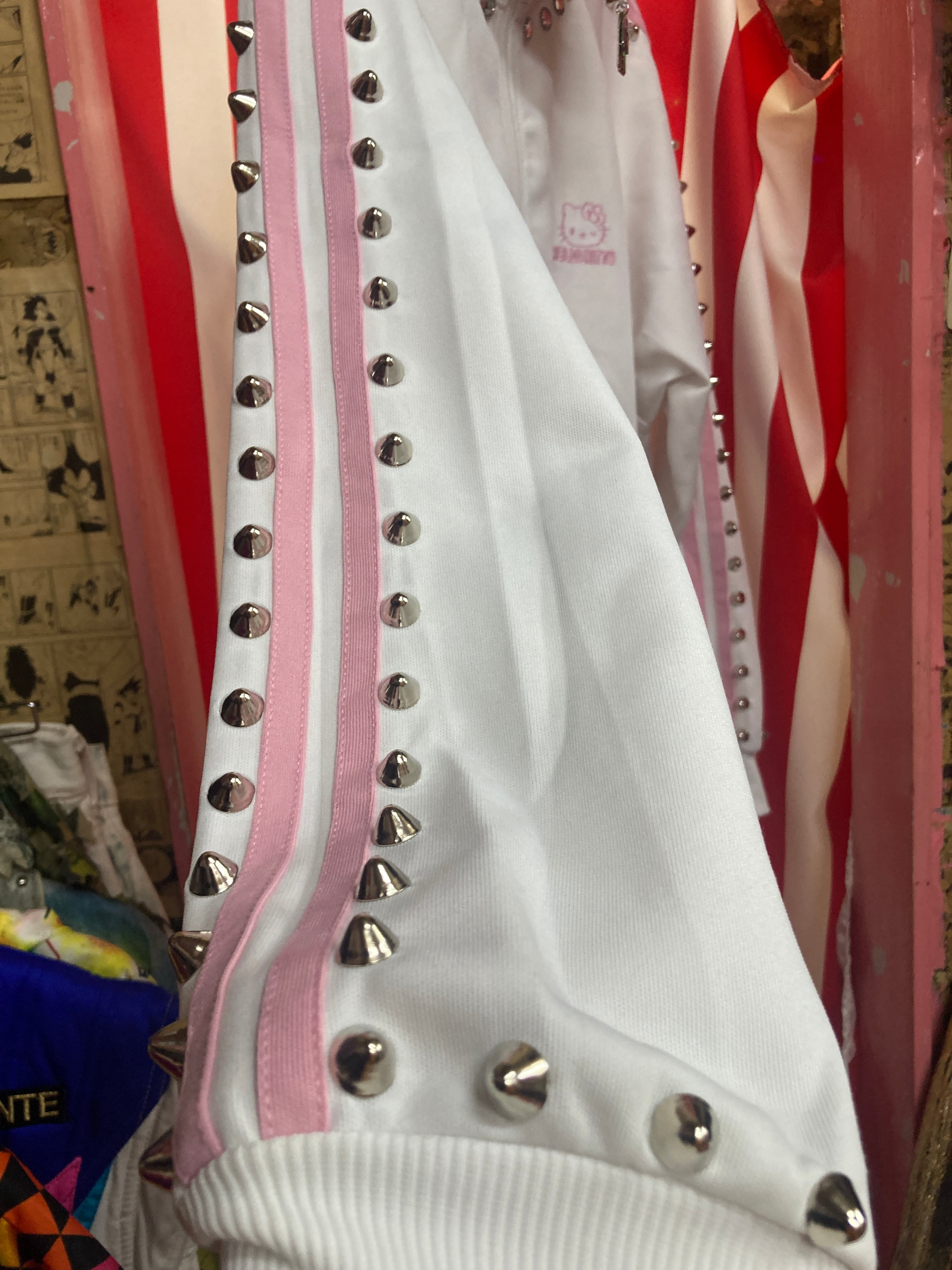 白&ピンクの可愛いジャージのスタッズカスタムアイテム