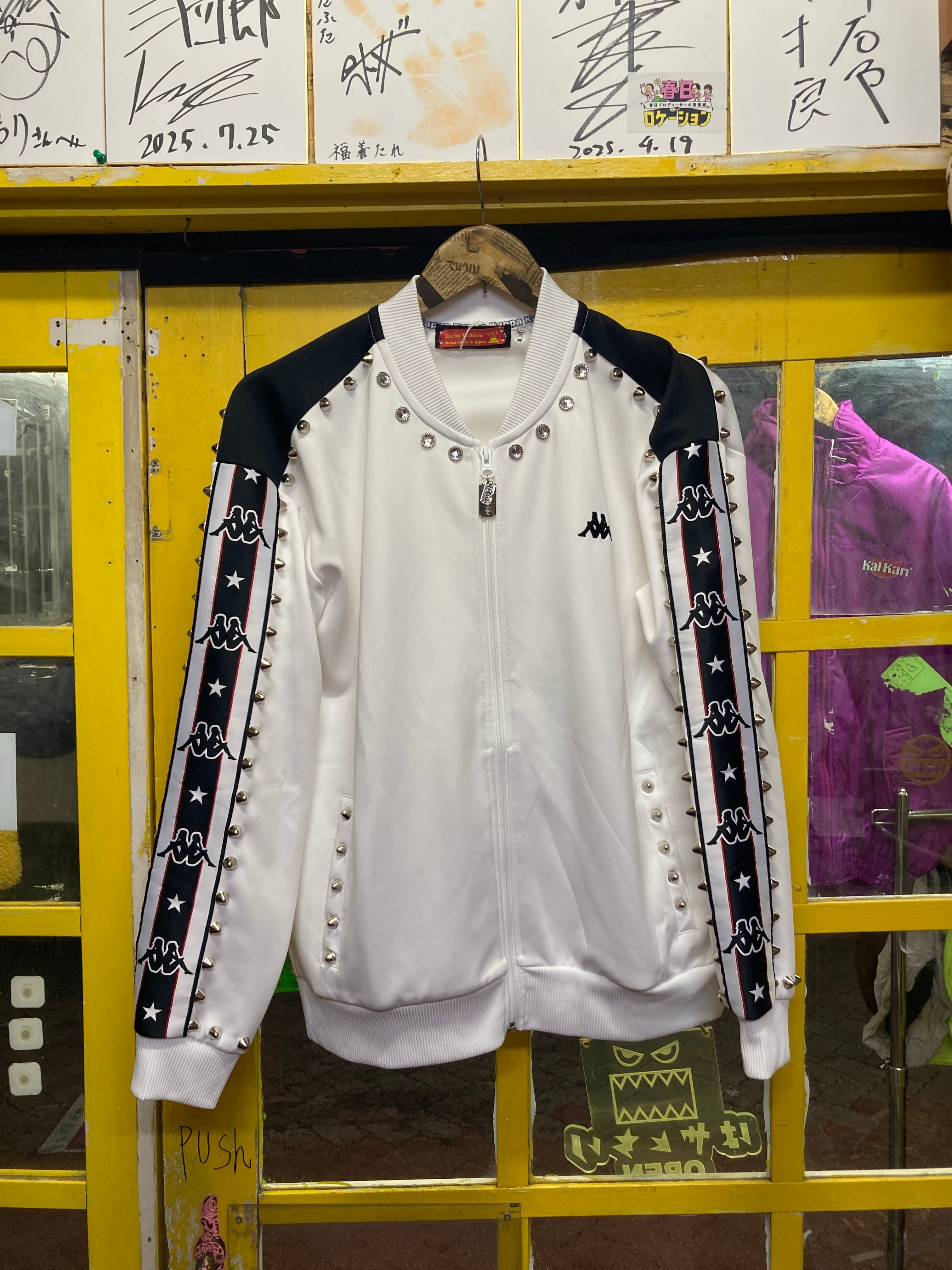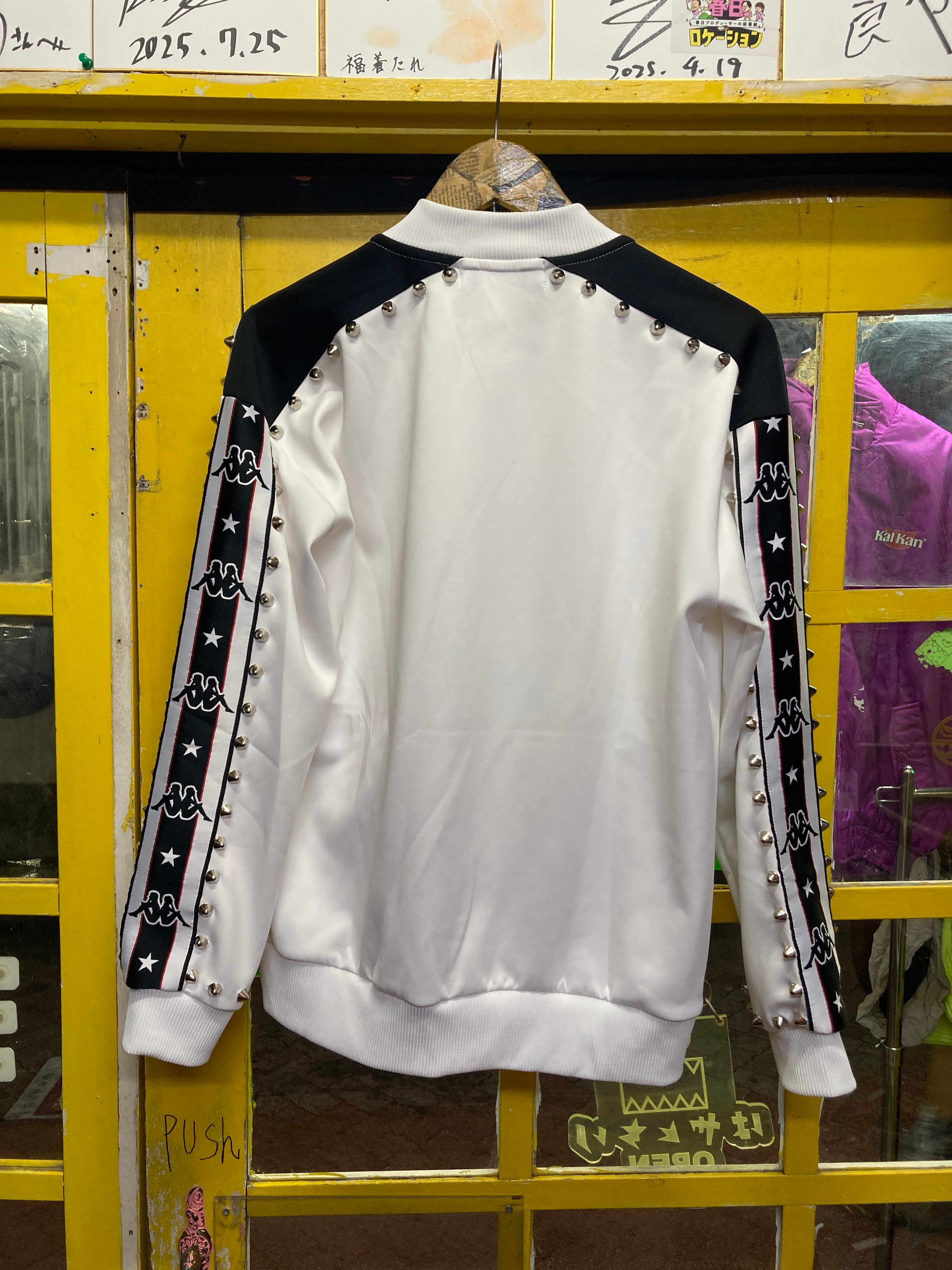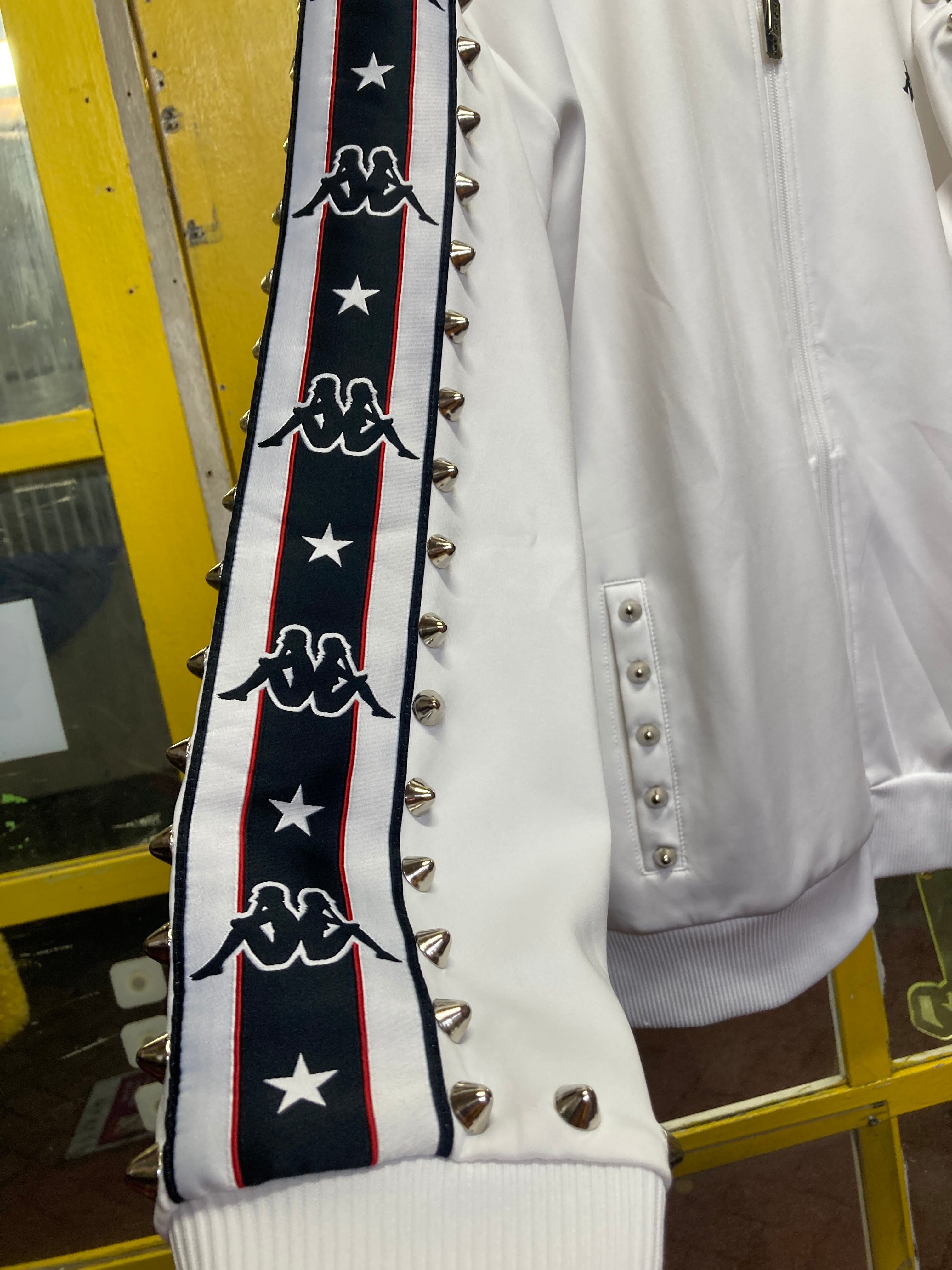 太ラインモノトーントラックジャケットのスタッズカスタムアイテム
