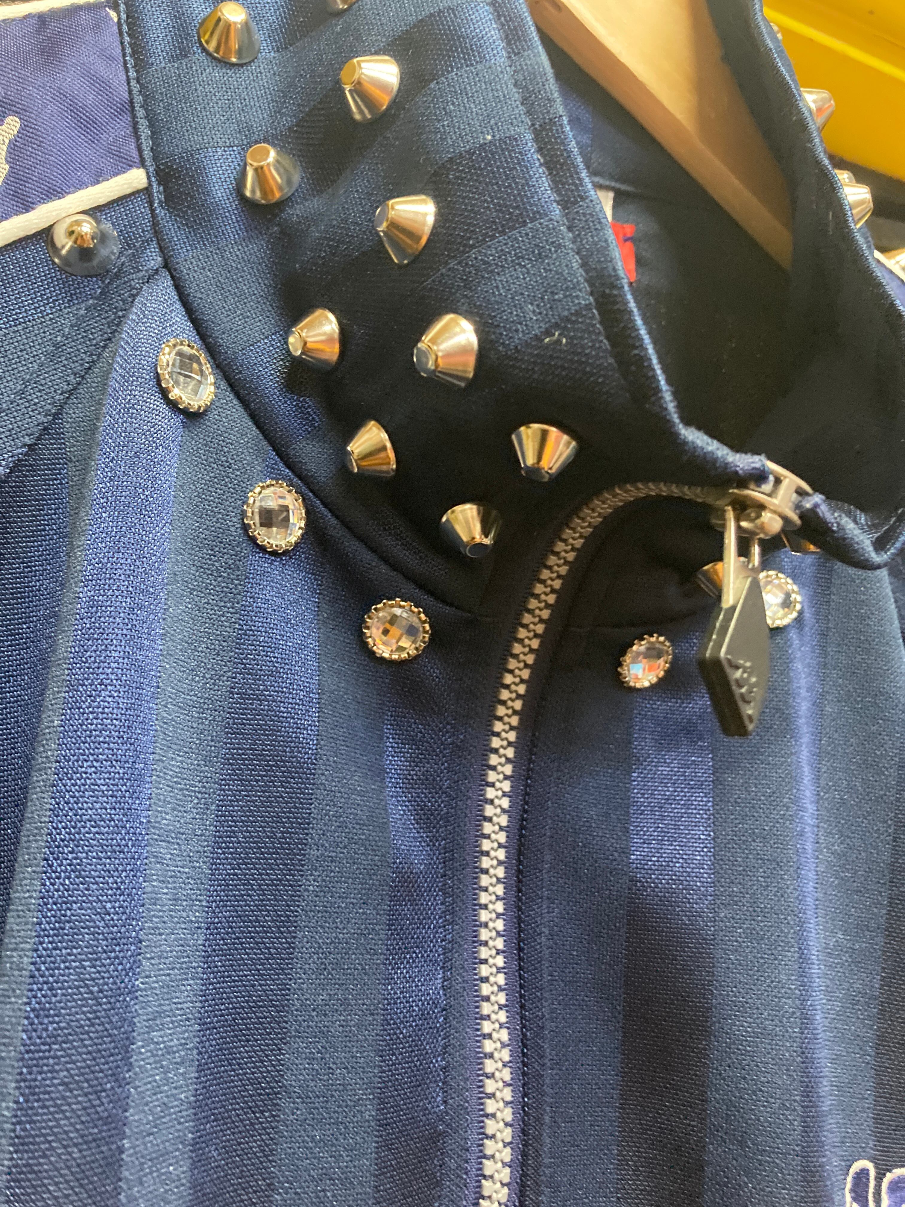 光沢あるネイビーストライプかっこいいスタッズカスタムジャージ