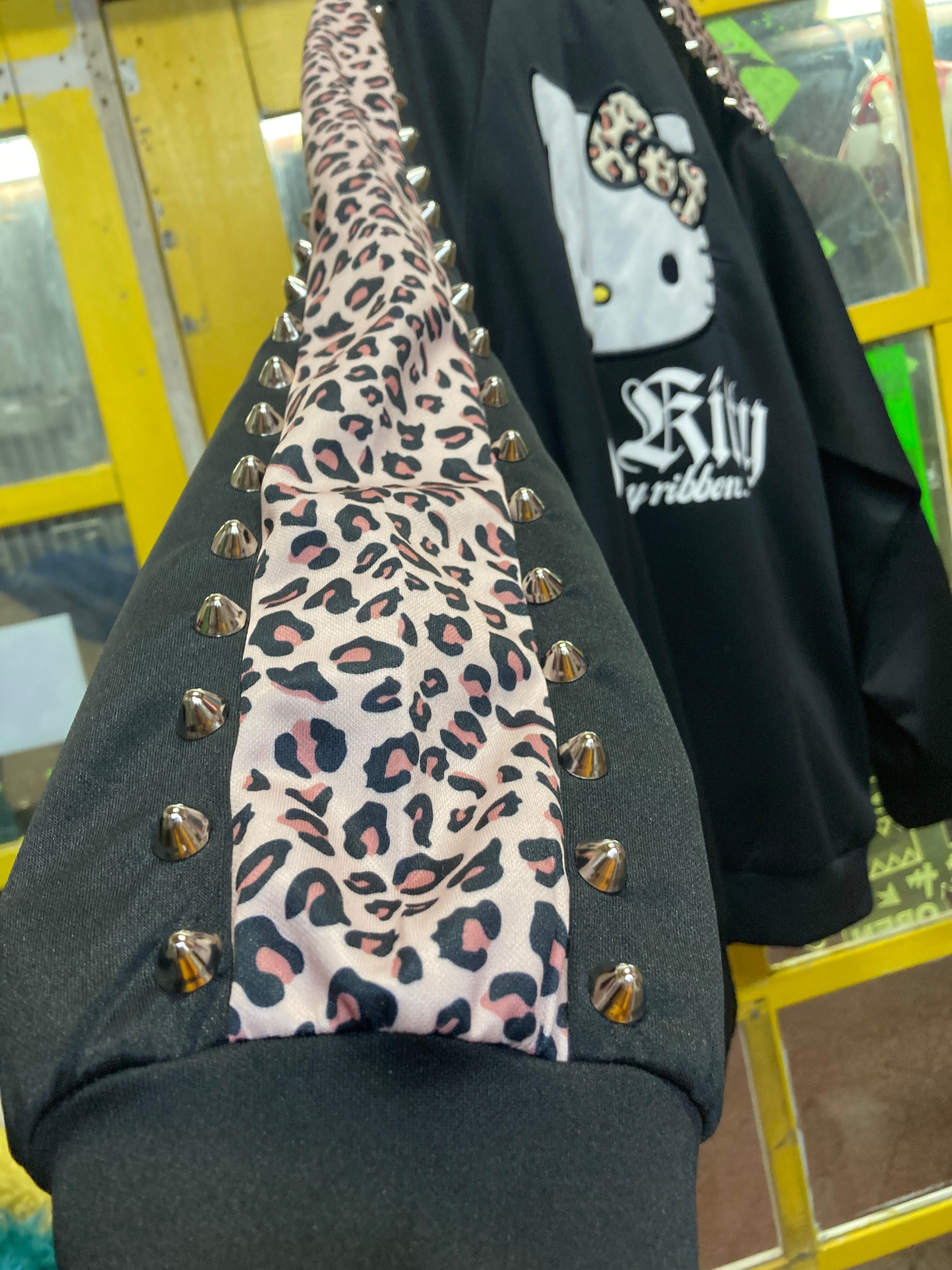 レオパードラインが可愛いトラックジャケットのスタッズカスタムアイテム