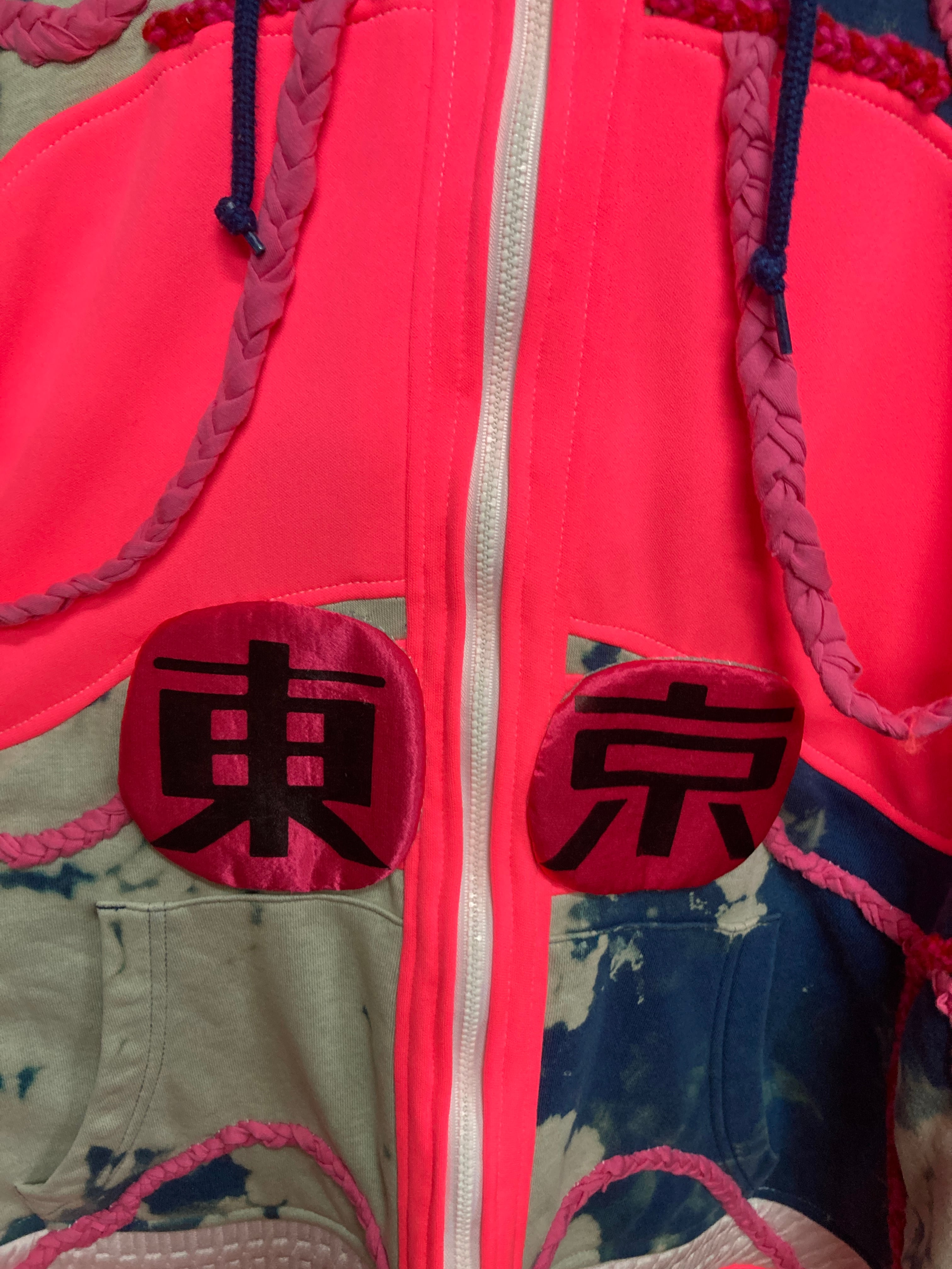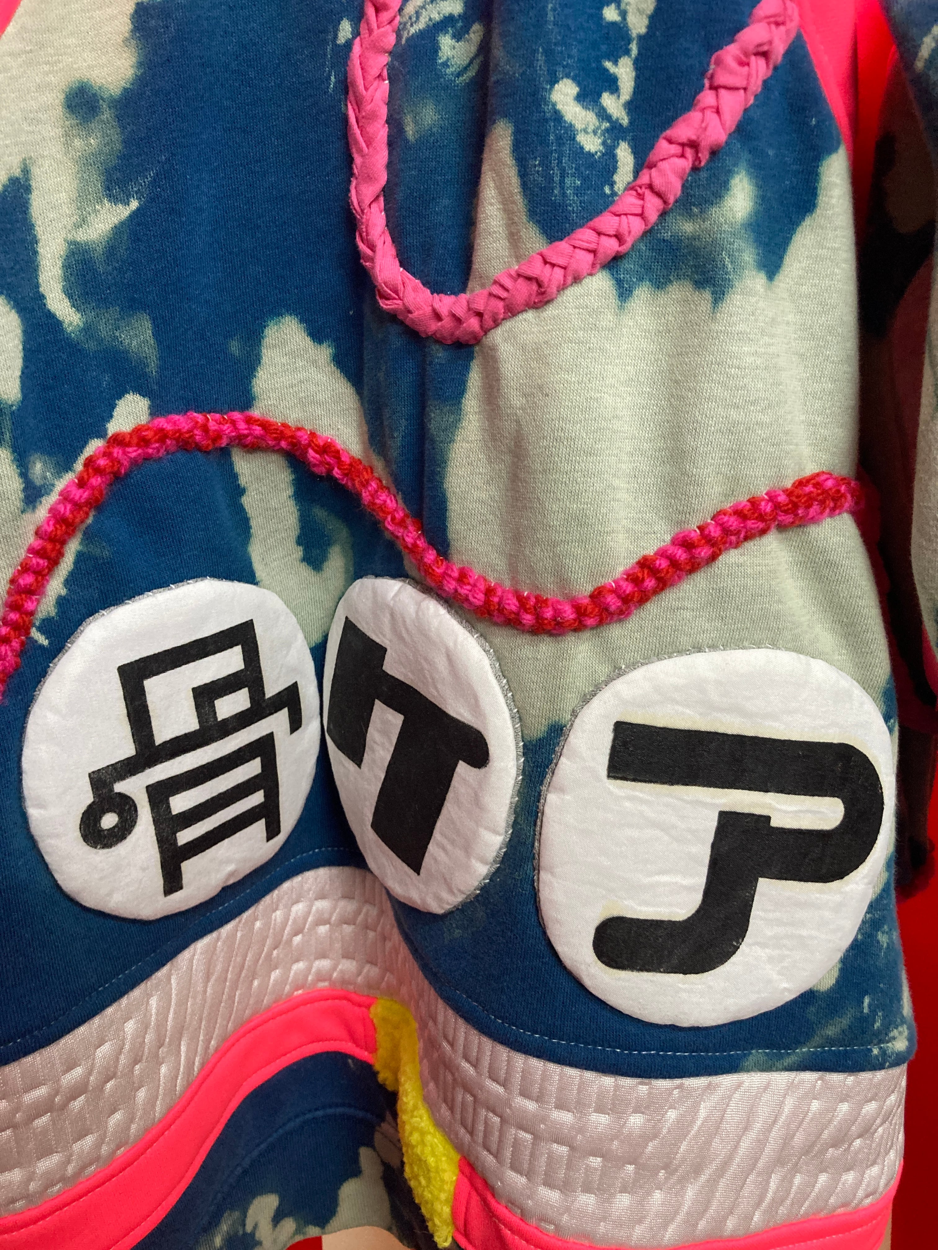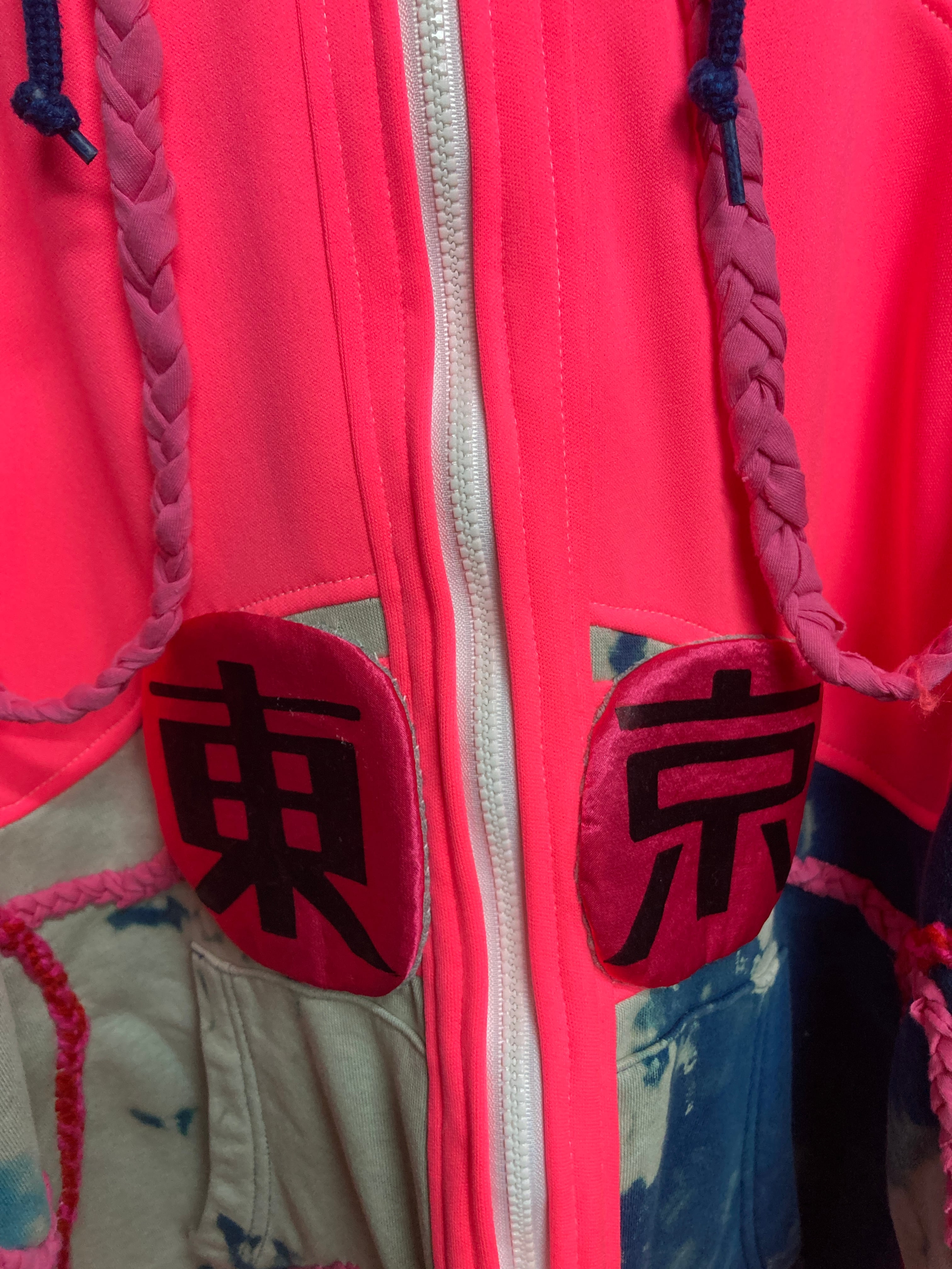 古い旗再構築の文字パッチ、三つ編み装飾可愛いビッグサイズパーカー