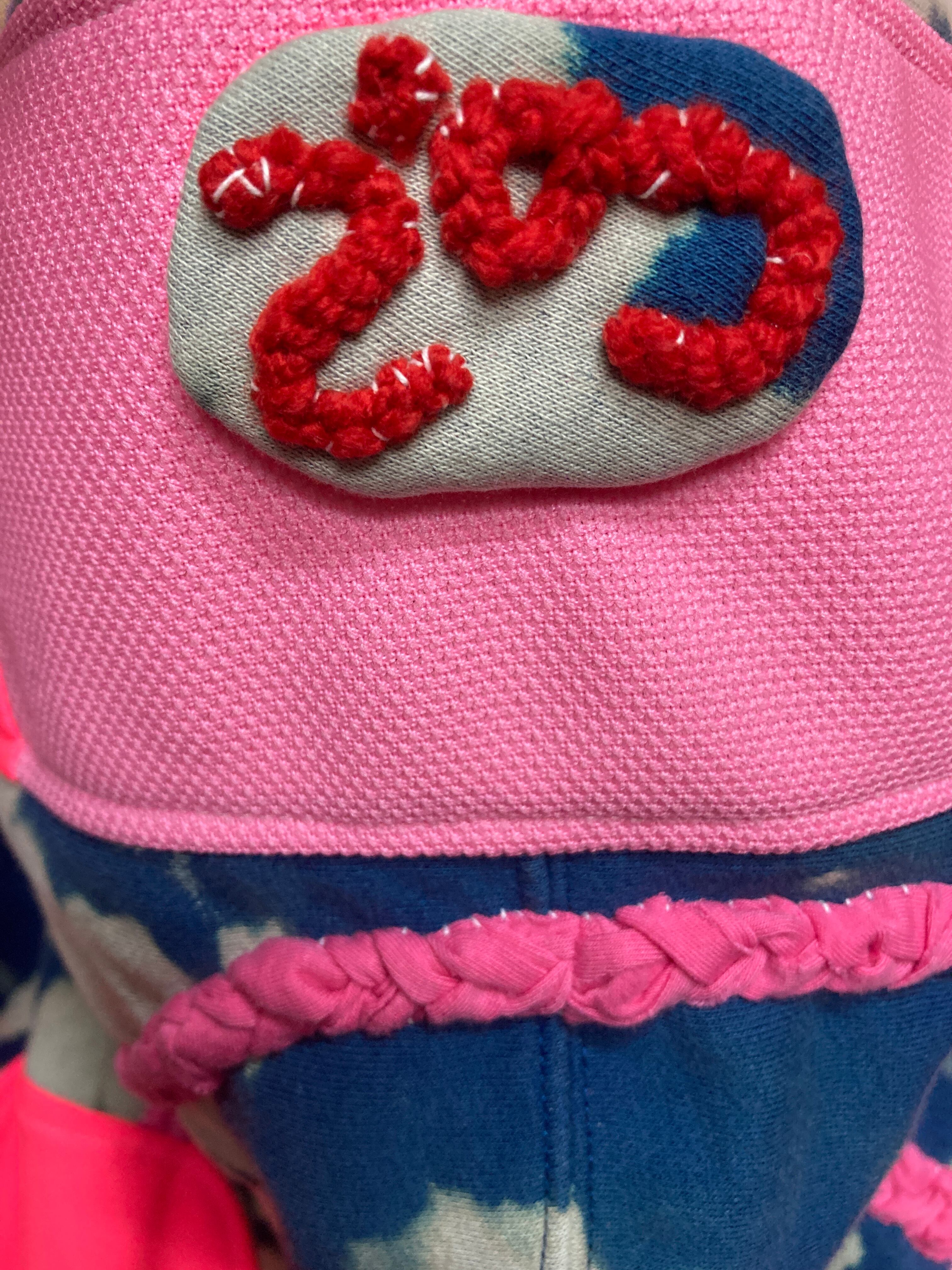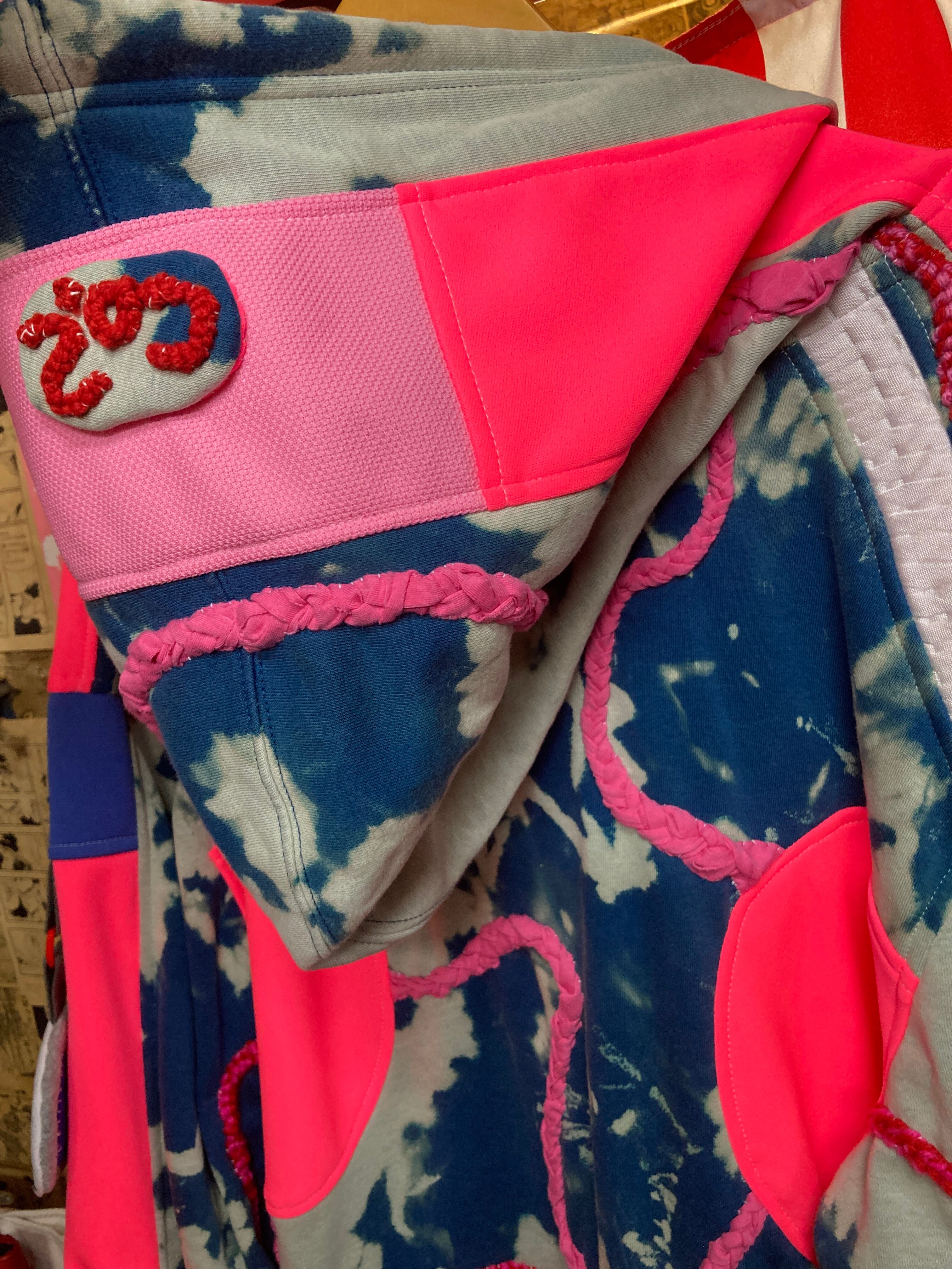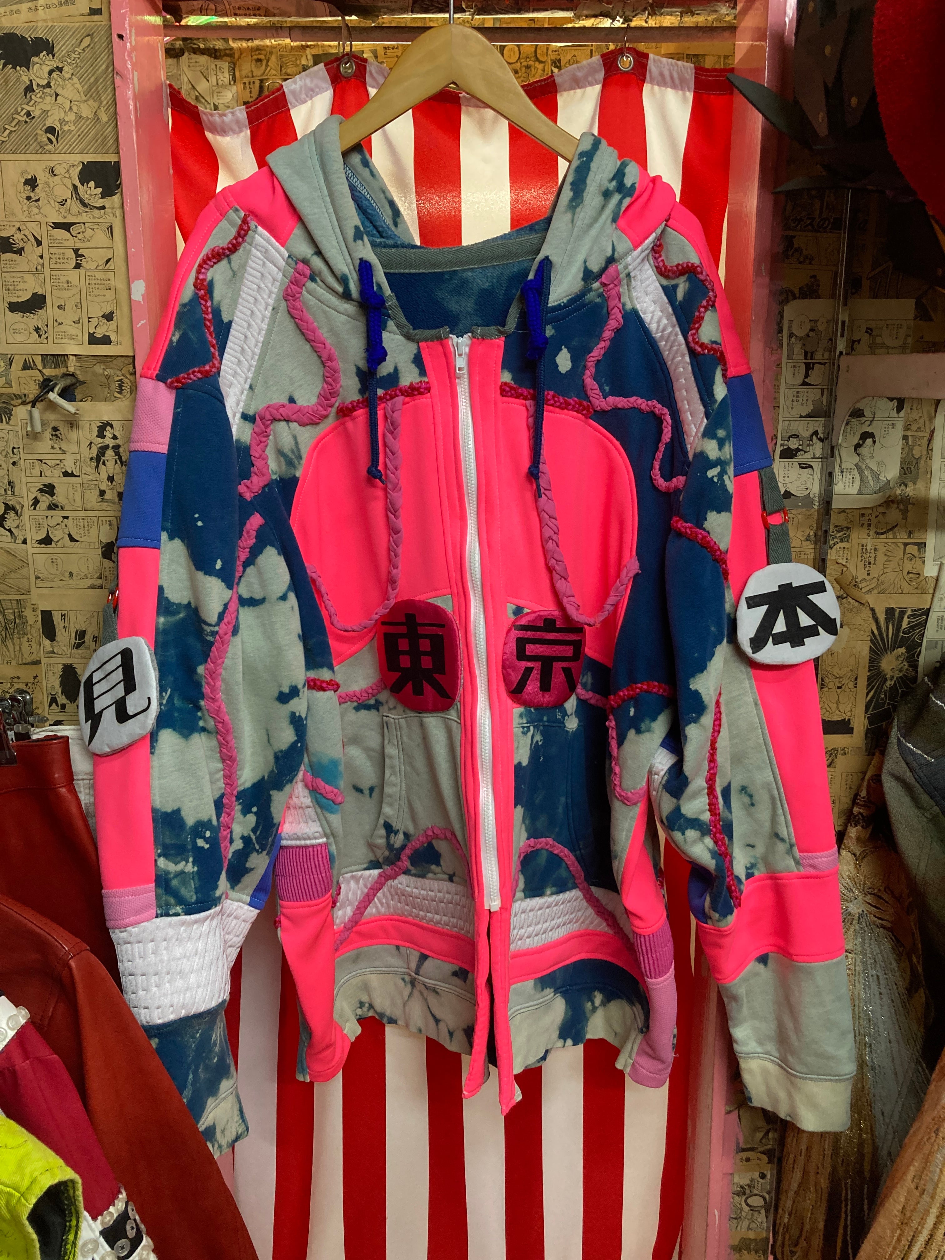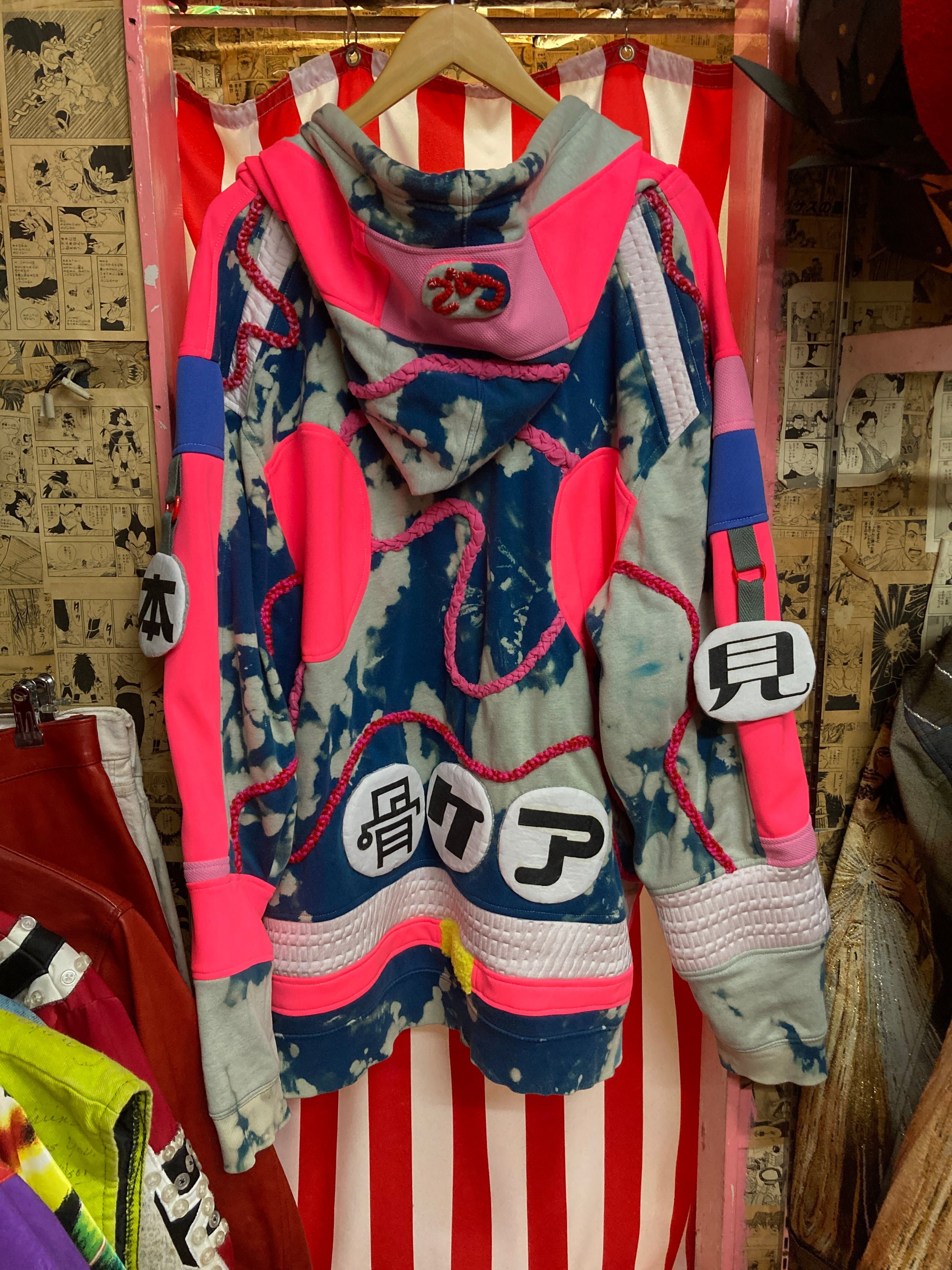 古い旗再構築の文字パッチ、三つ編み装飾可愛いビッグサイズパーカー
