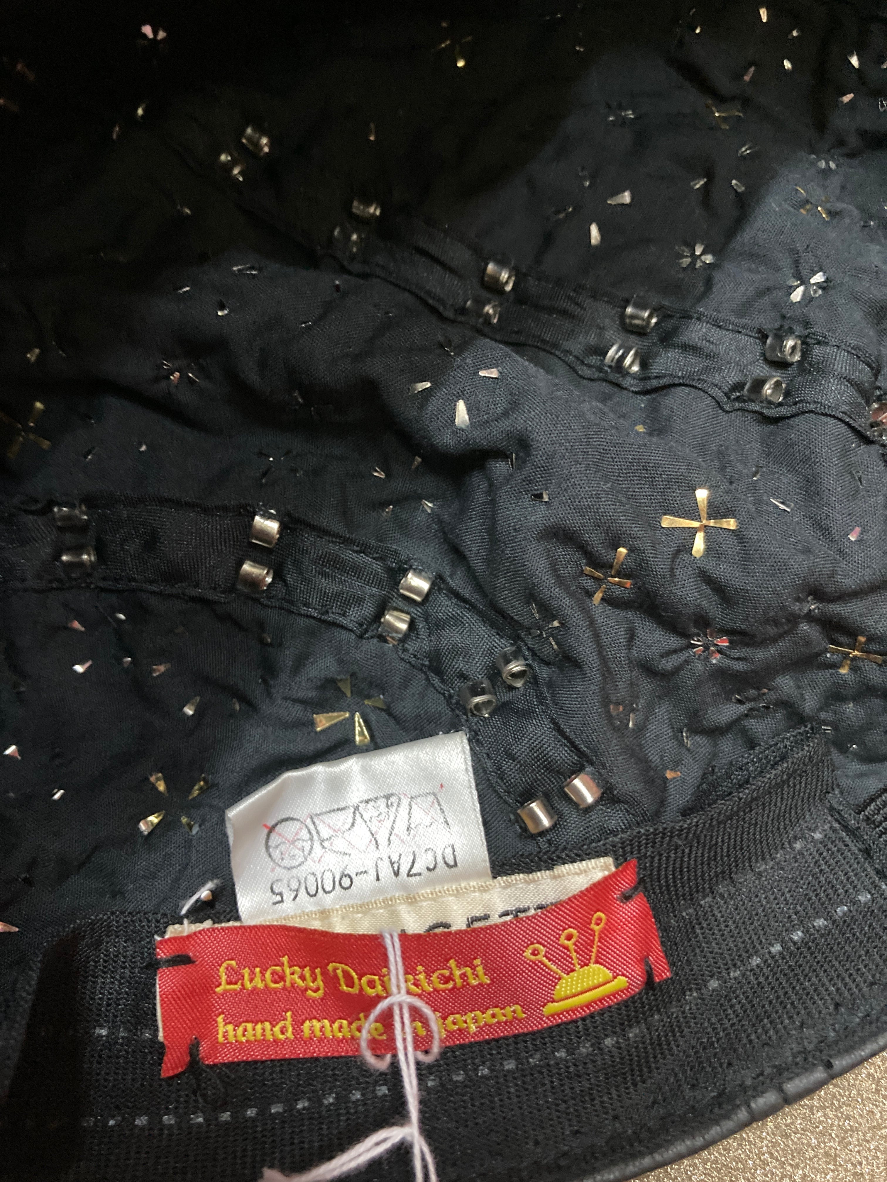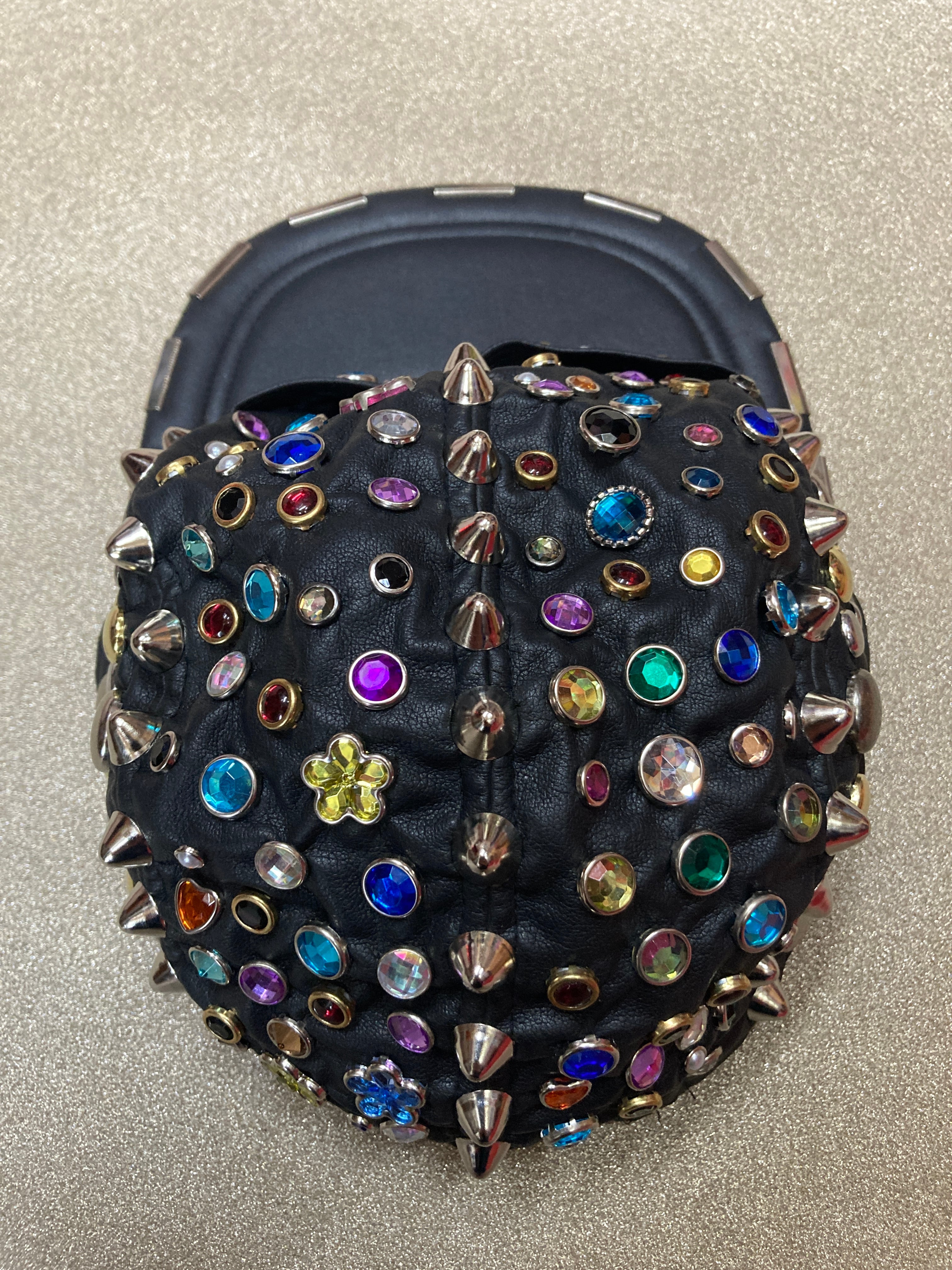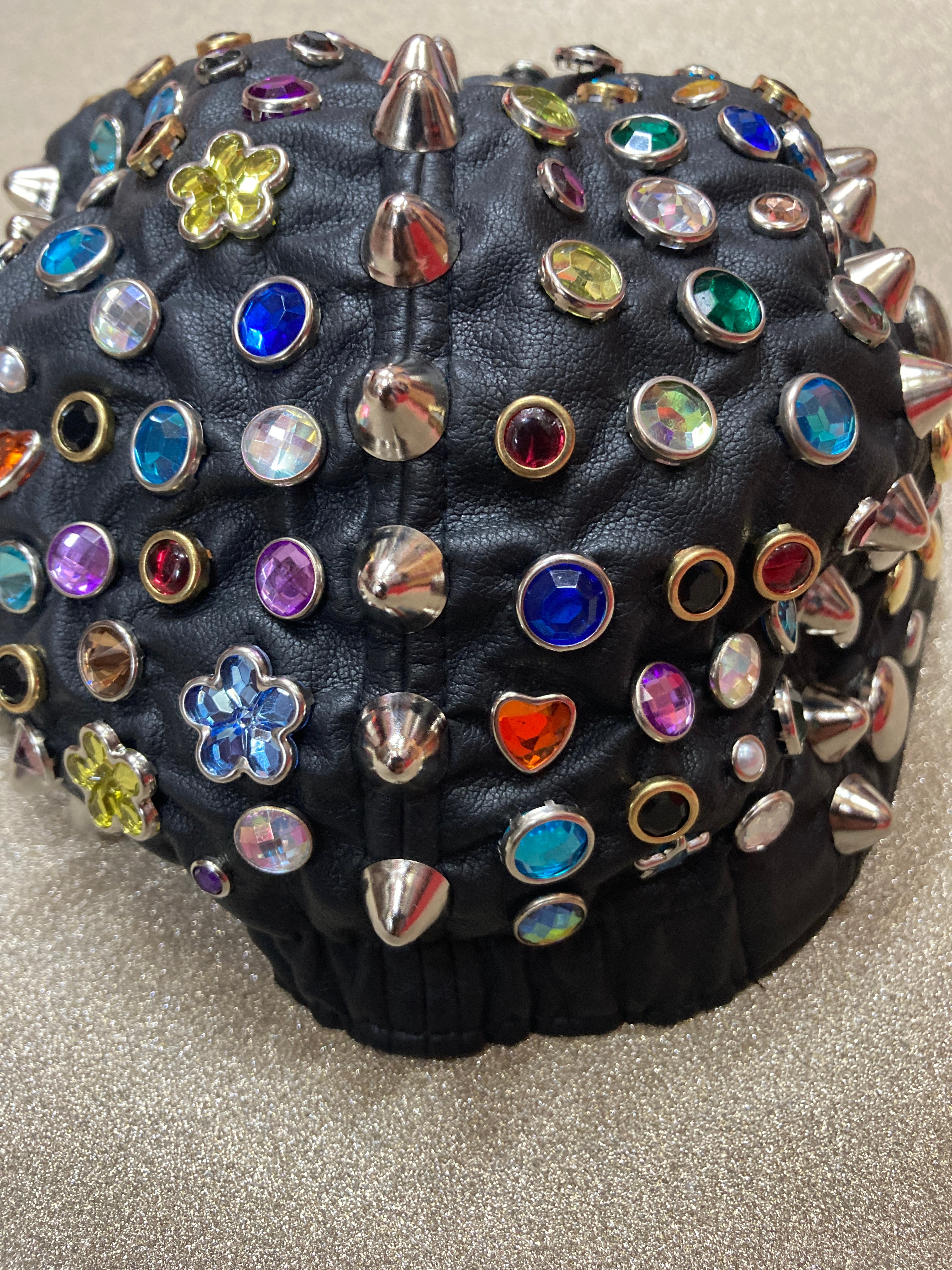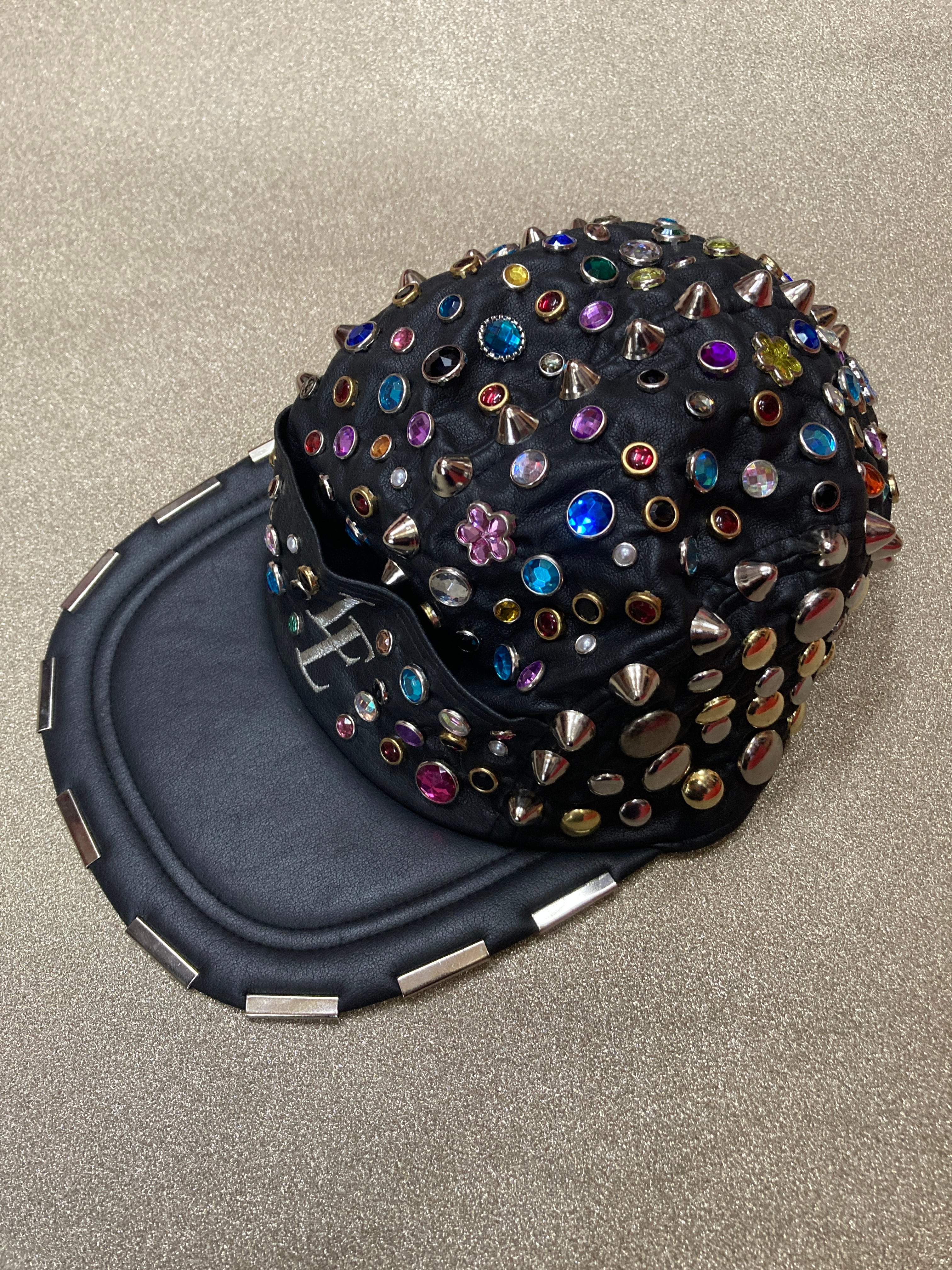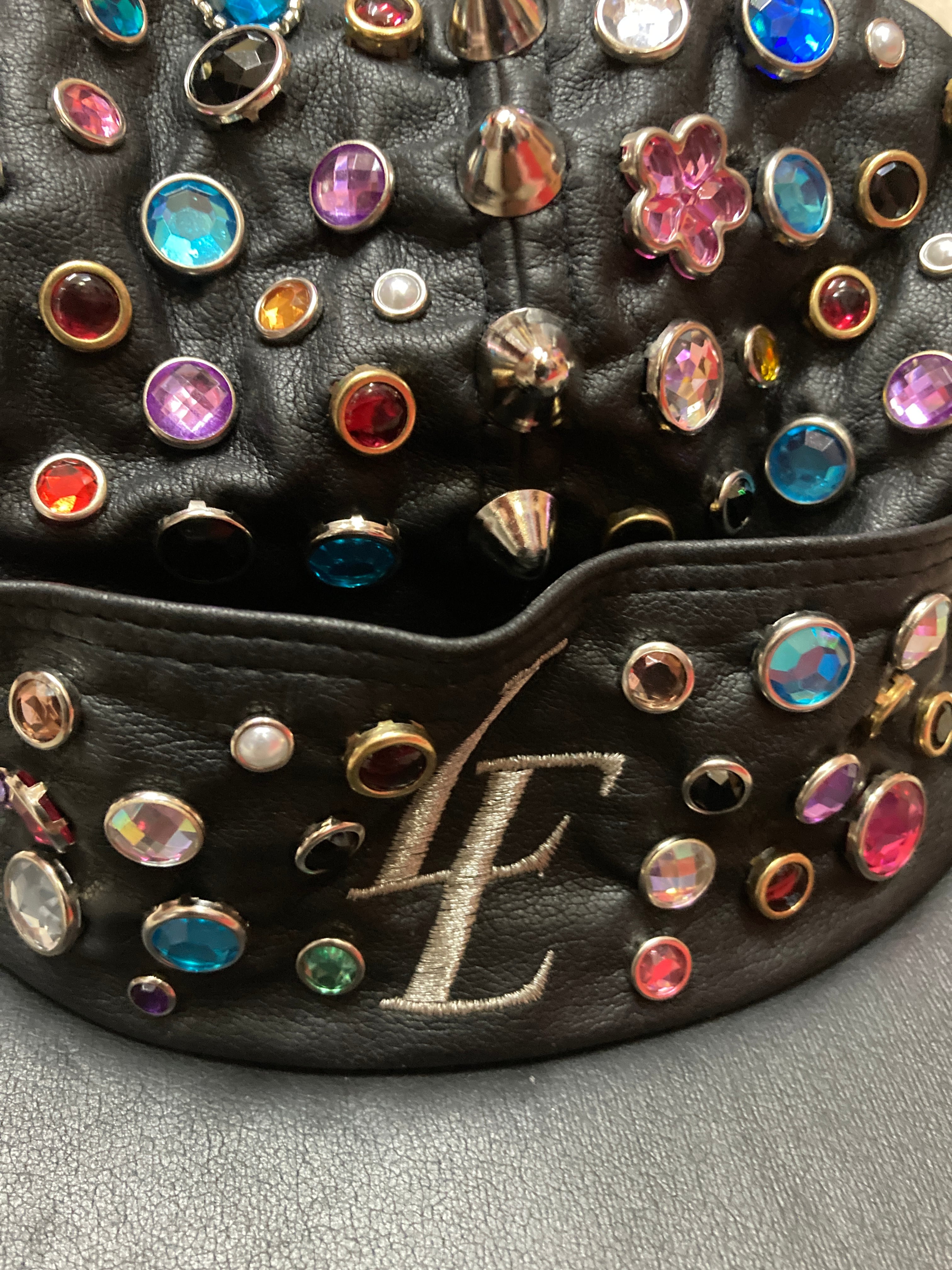 フェイクレザーキャップにゴージャスなジュエリーストーン大量に装飾された帽子