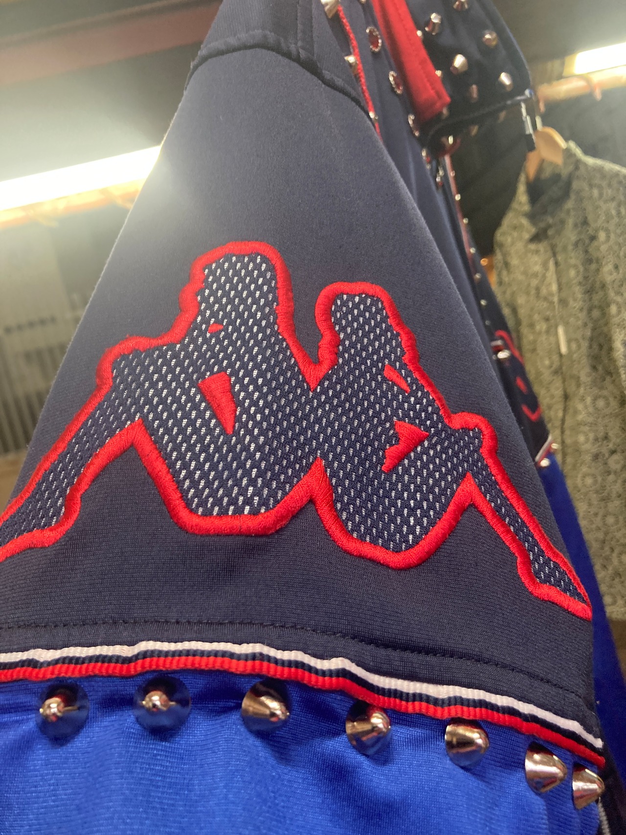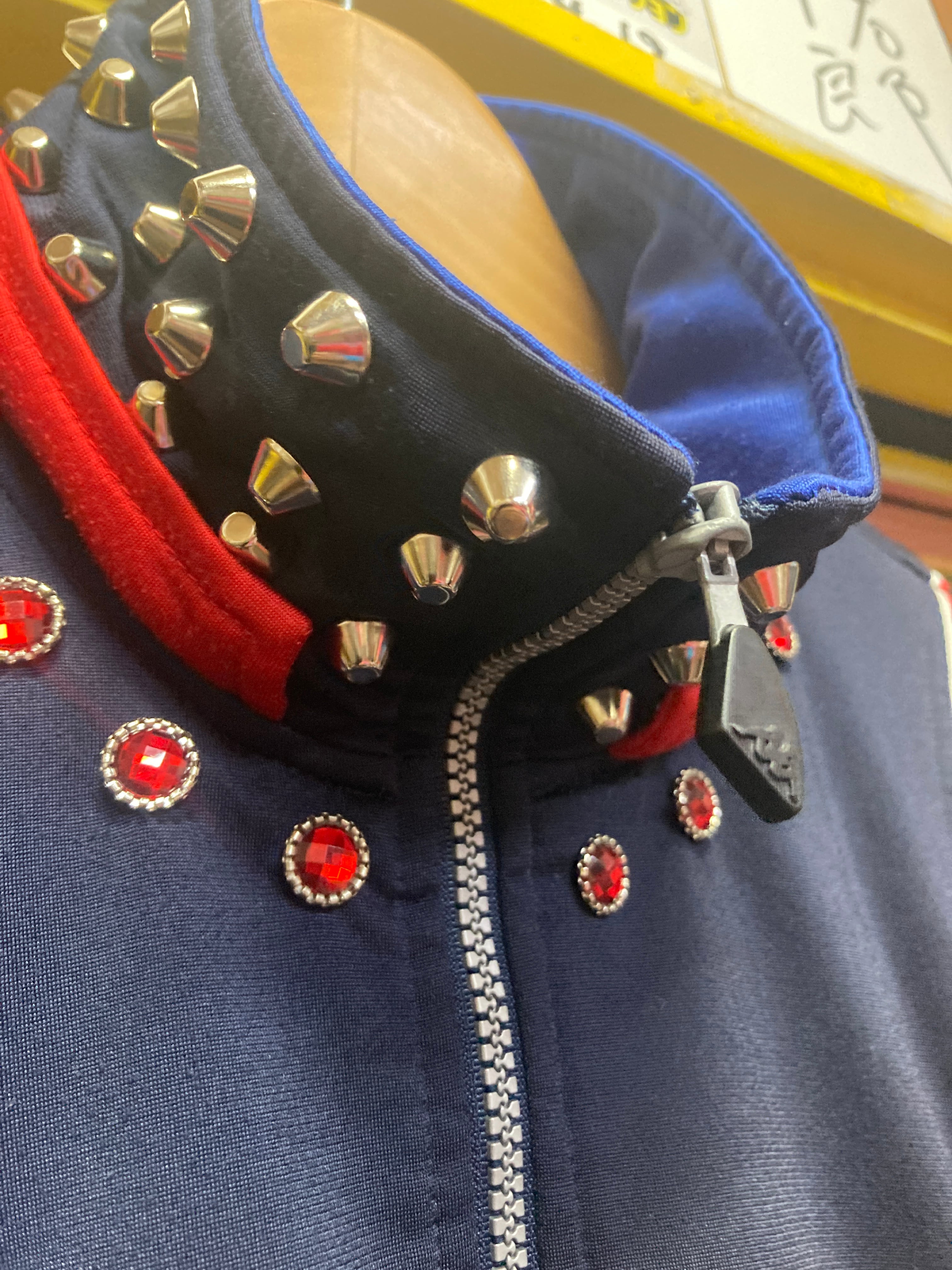 青黒カラーリングのスタッズカスタムがハードでカッコいい鋲トラックジャケット