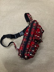 スタッズ赤タータンチェックウエストポーチ