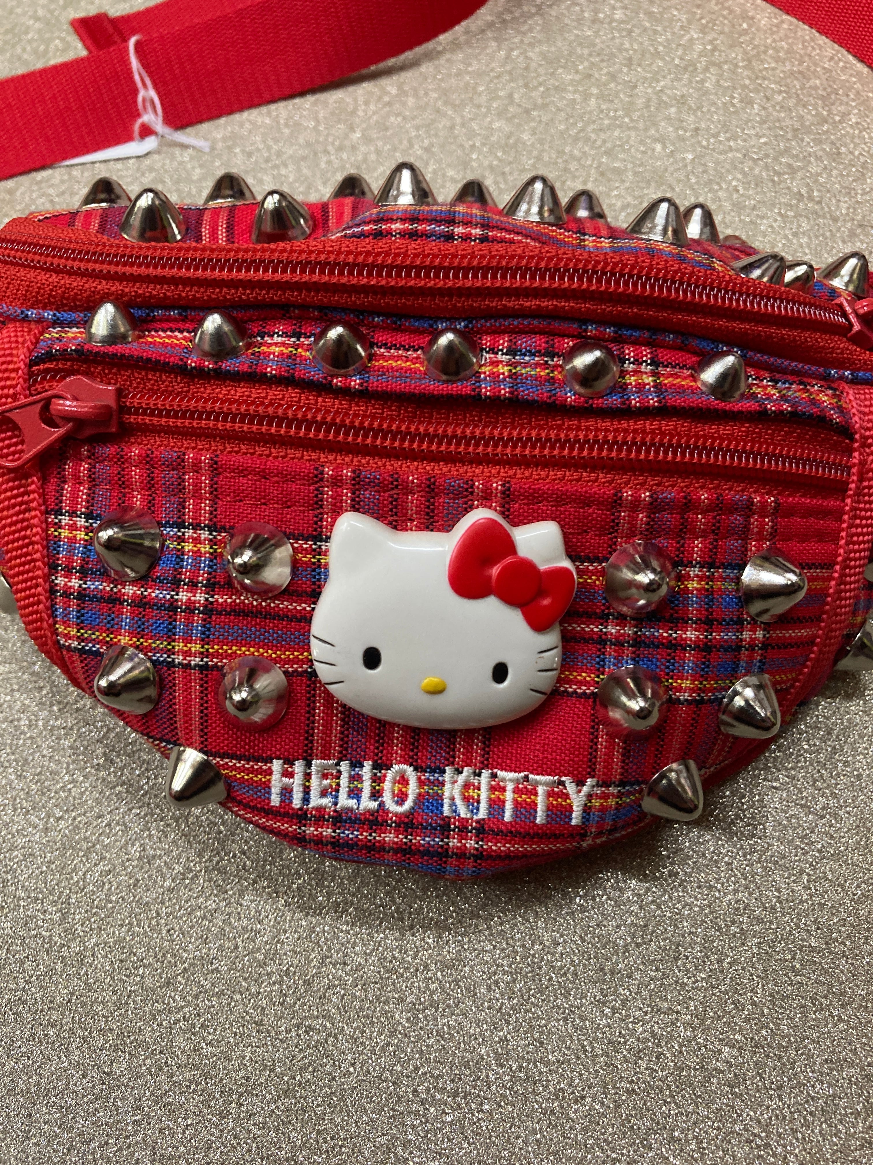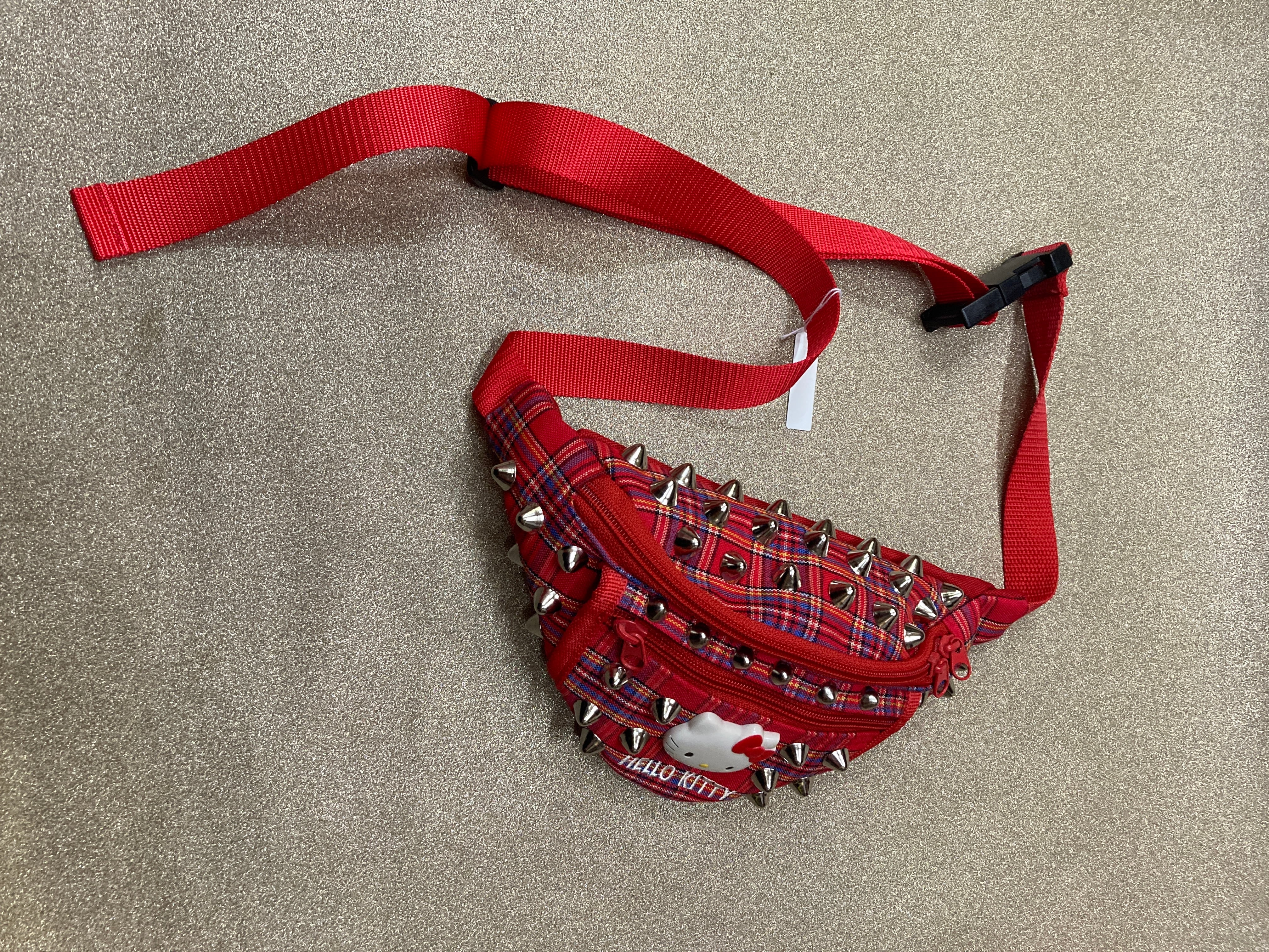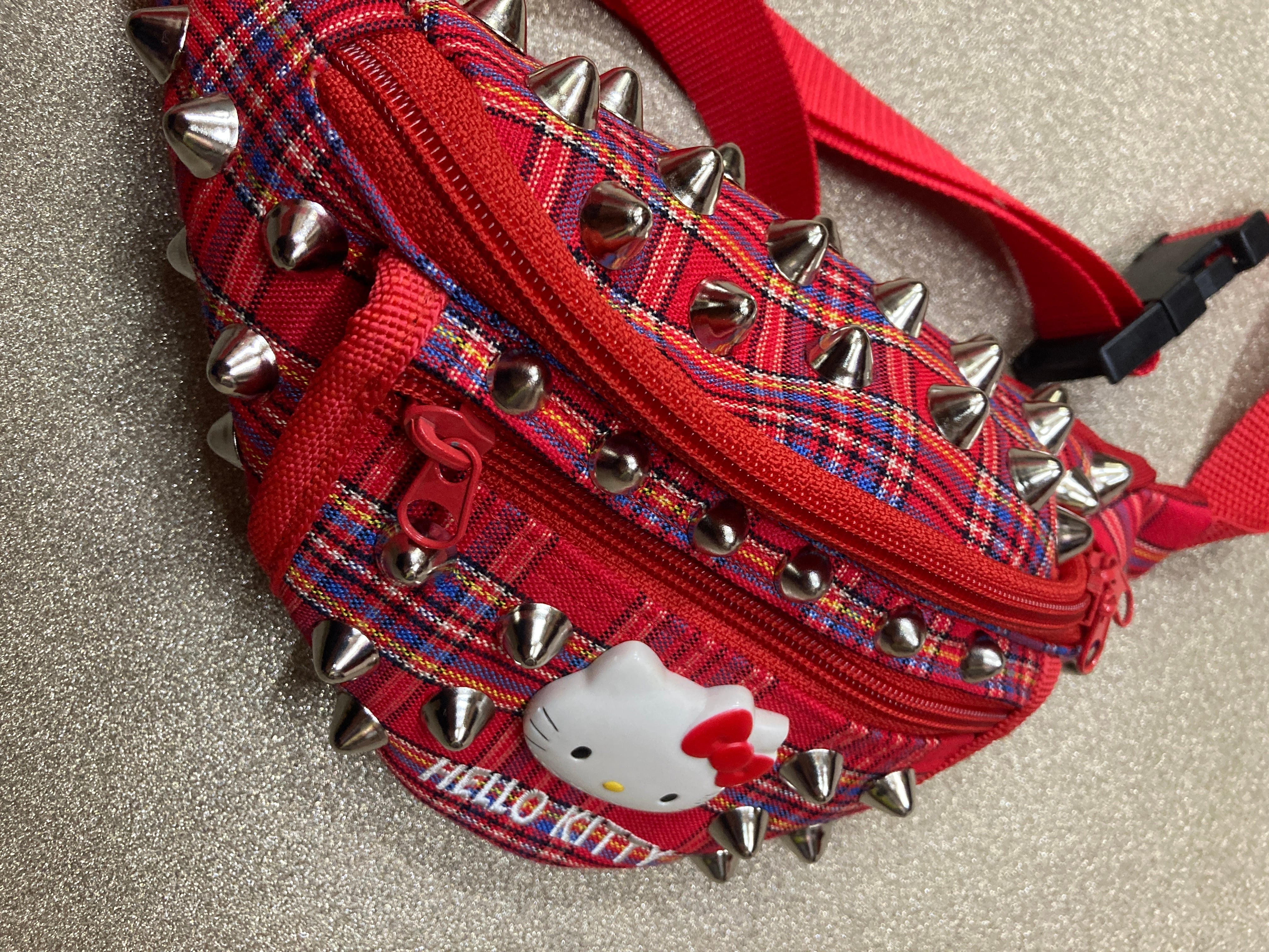 チェック&スタッズ組み合わせ可愛いウエストポーチ