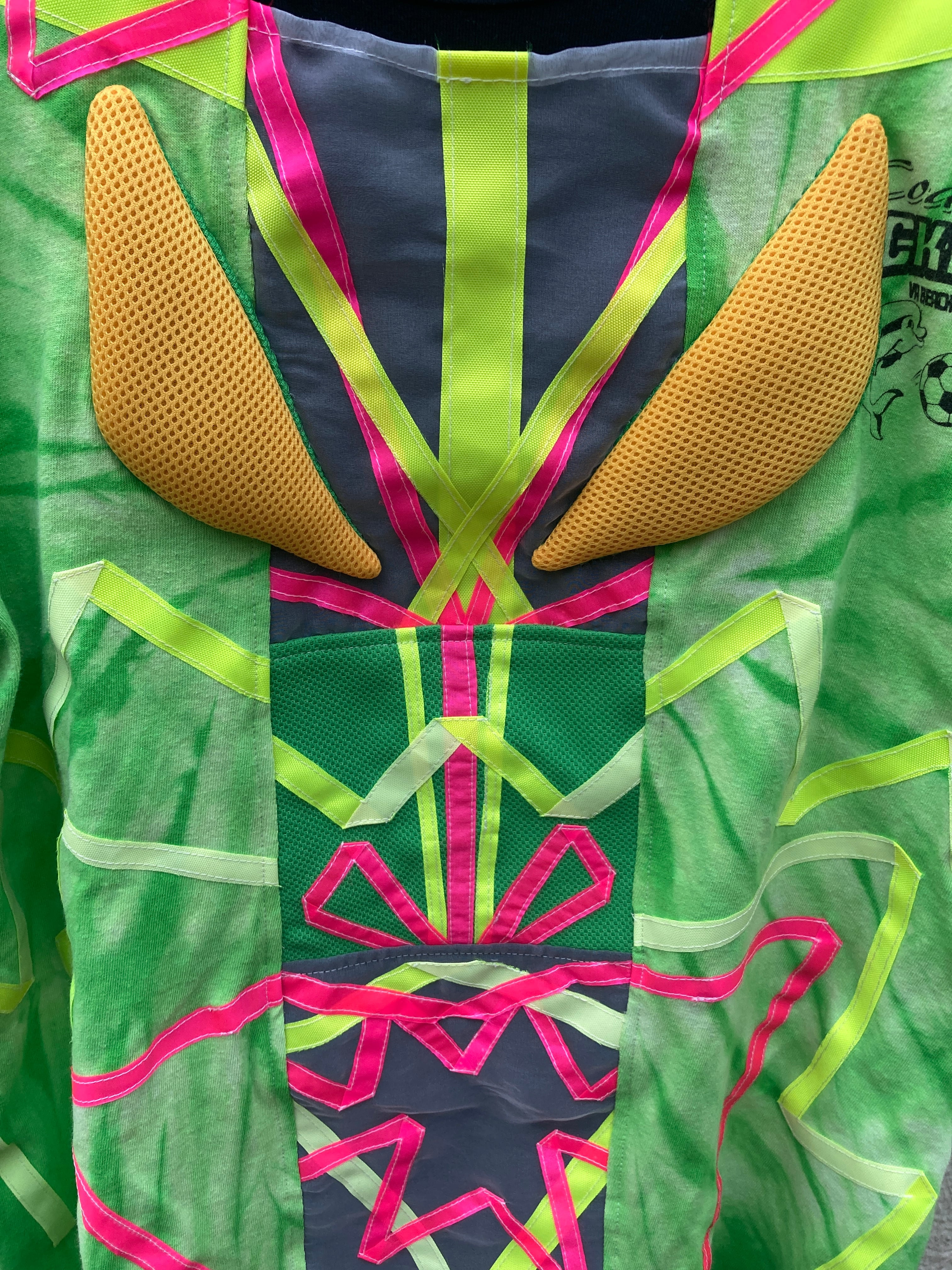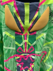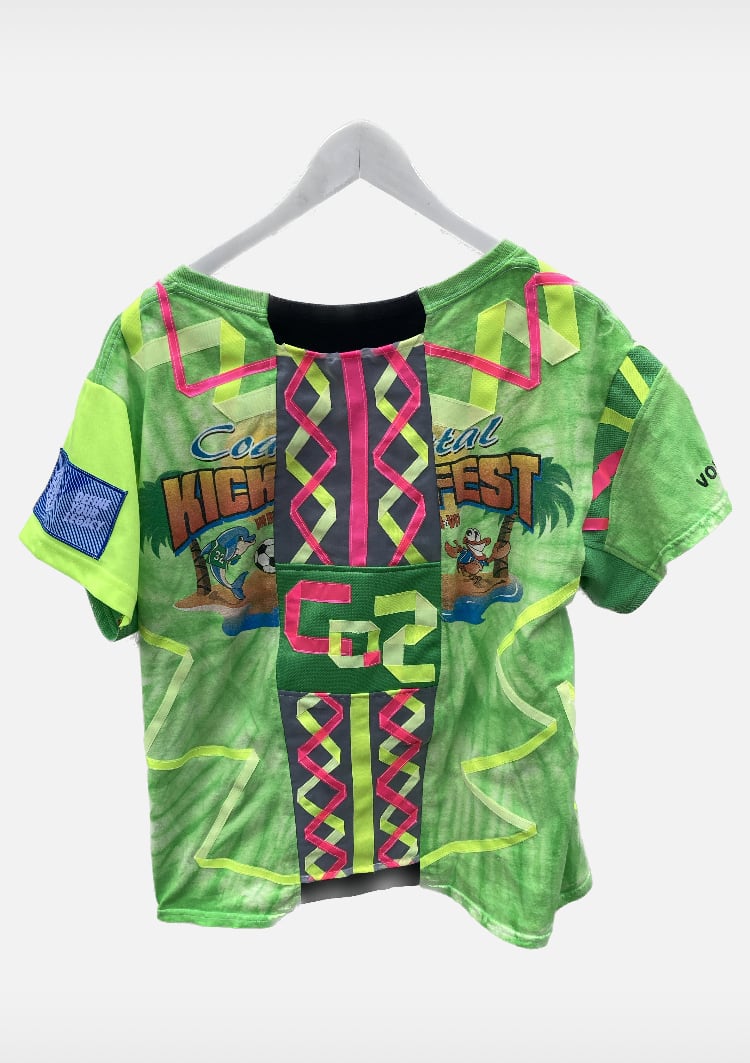 タイダイ染めボディーにテーピングでドラゴンが表現されたTシャツ