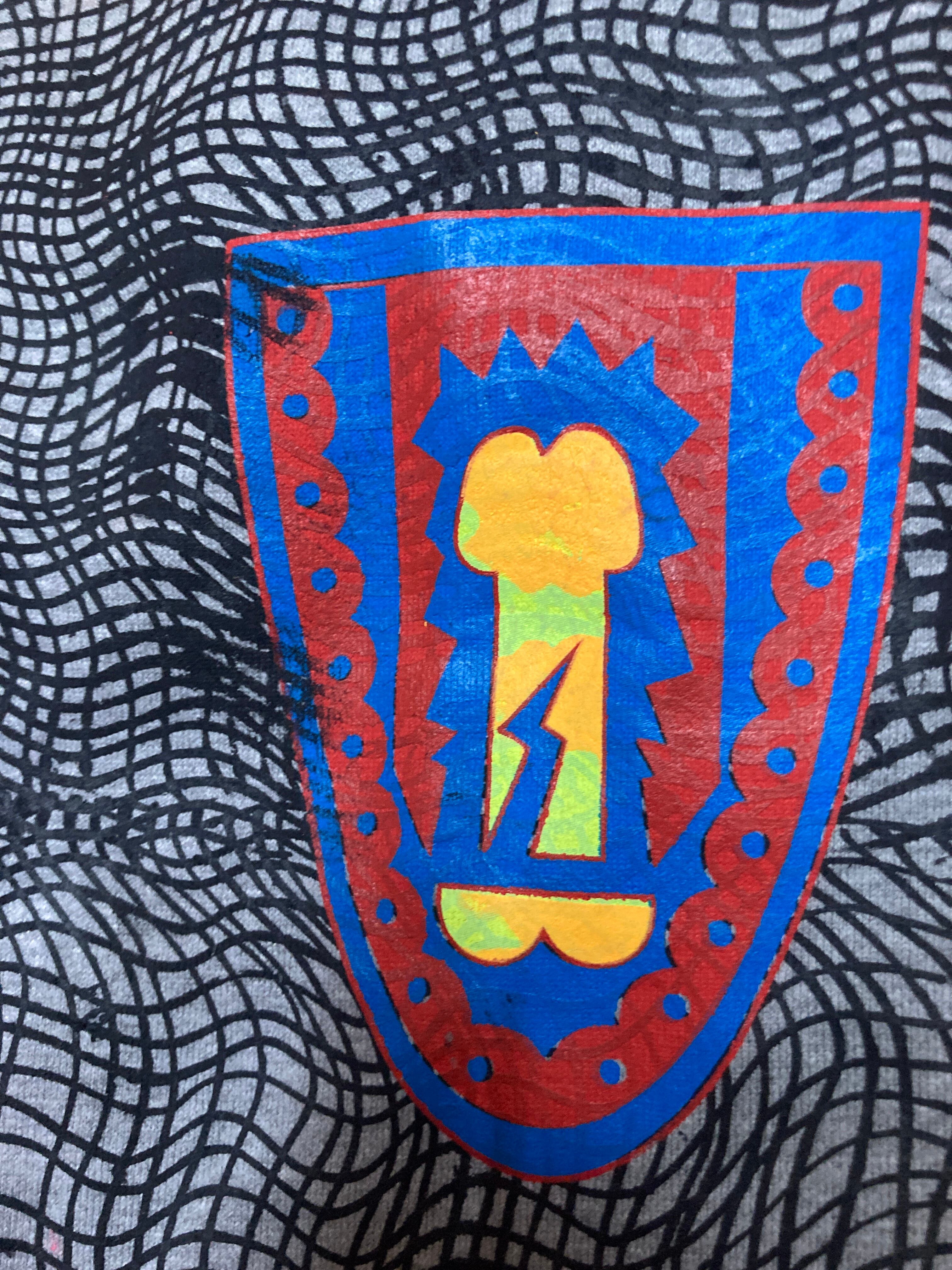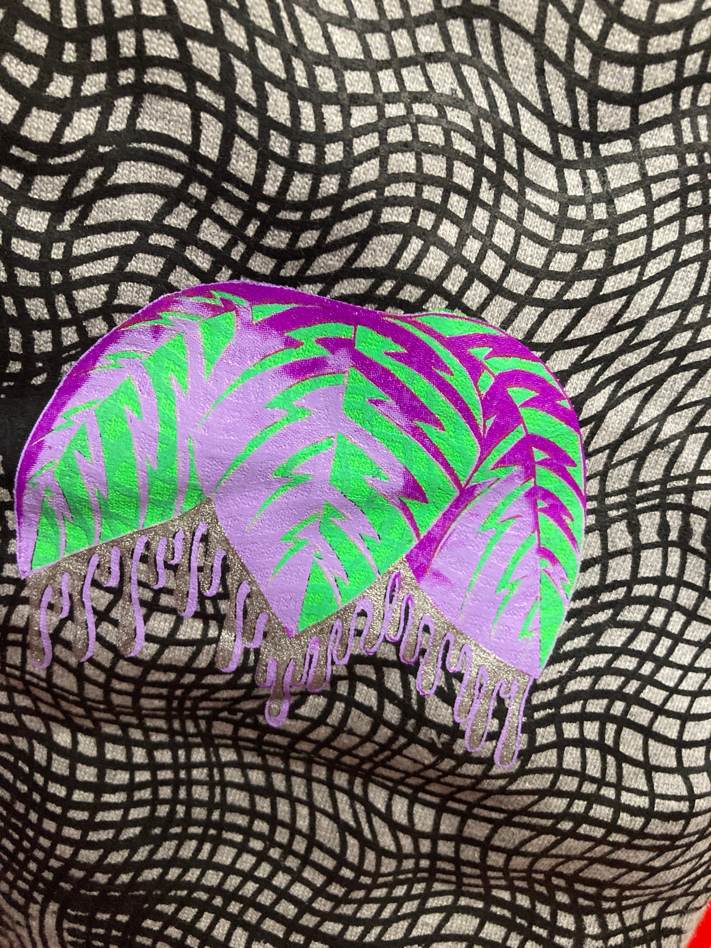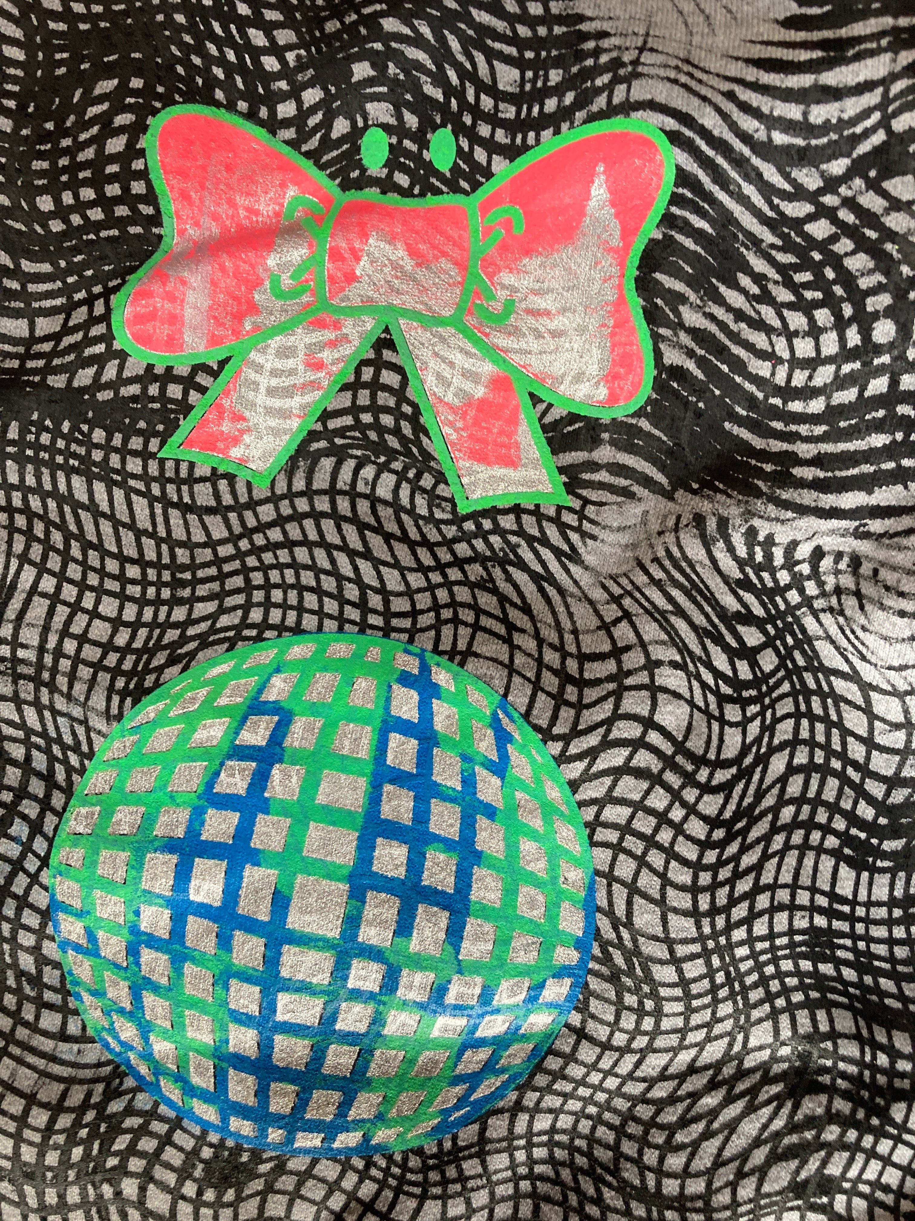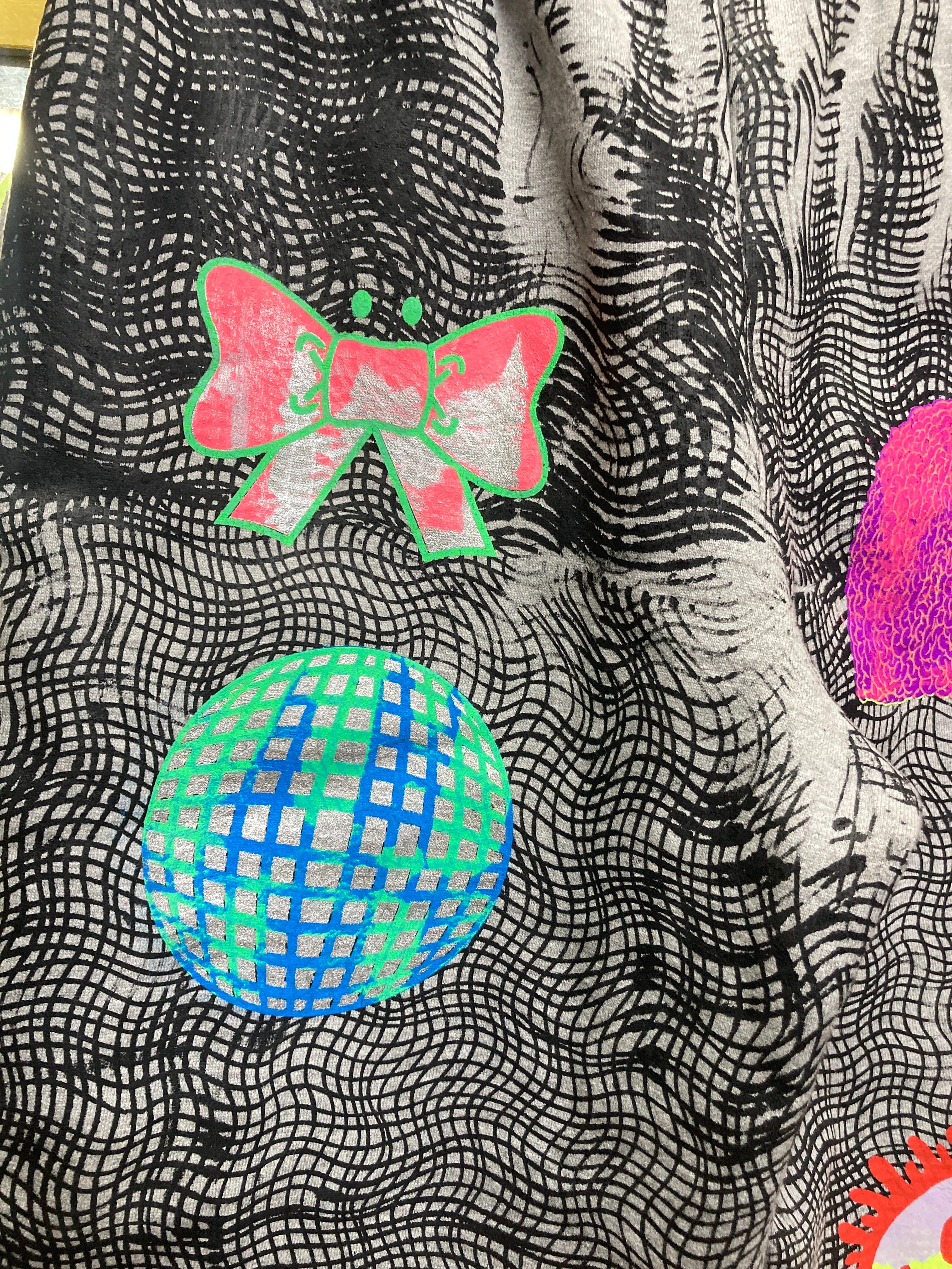 何重にも重なったシルクスクリーンプリントが立体的なアイテム