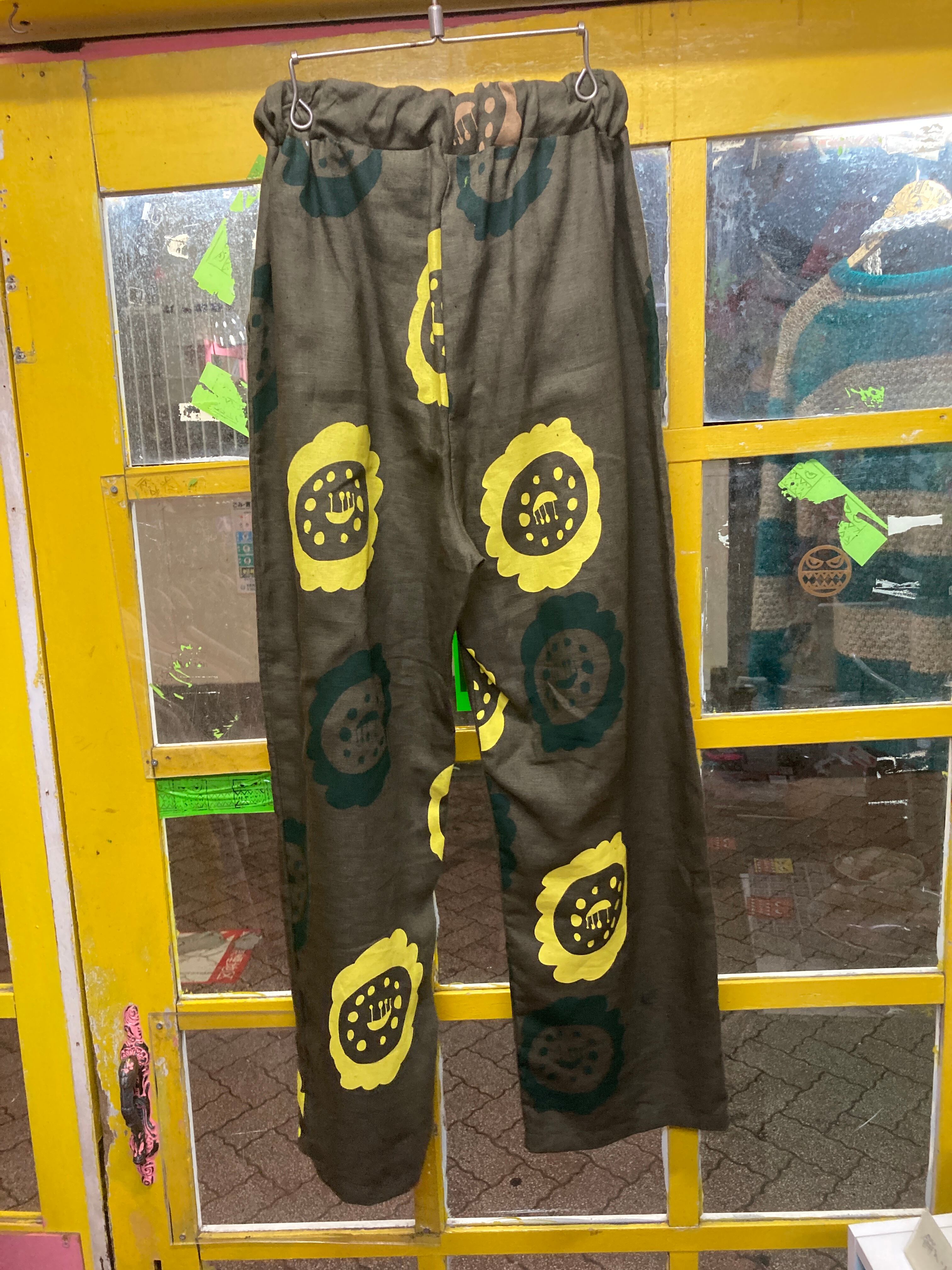 お花モチーフのクッキー柄が可愛い涼しい麻素材パンツ