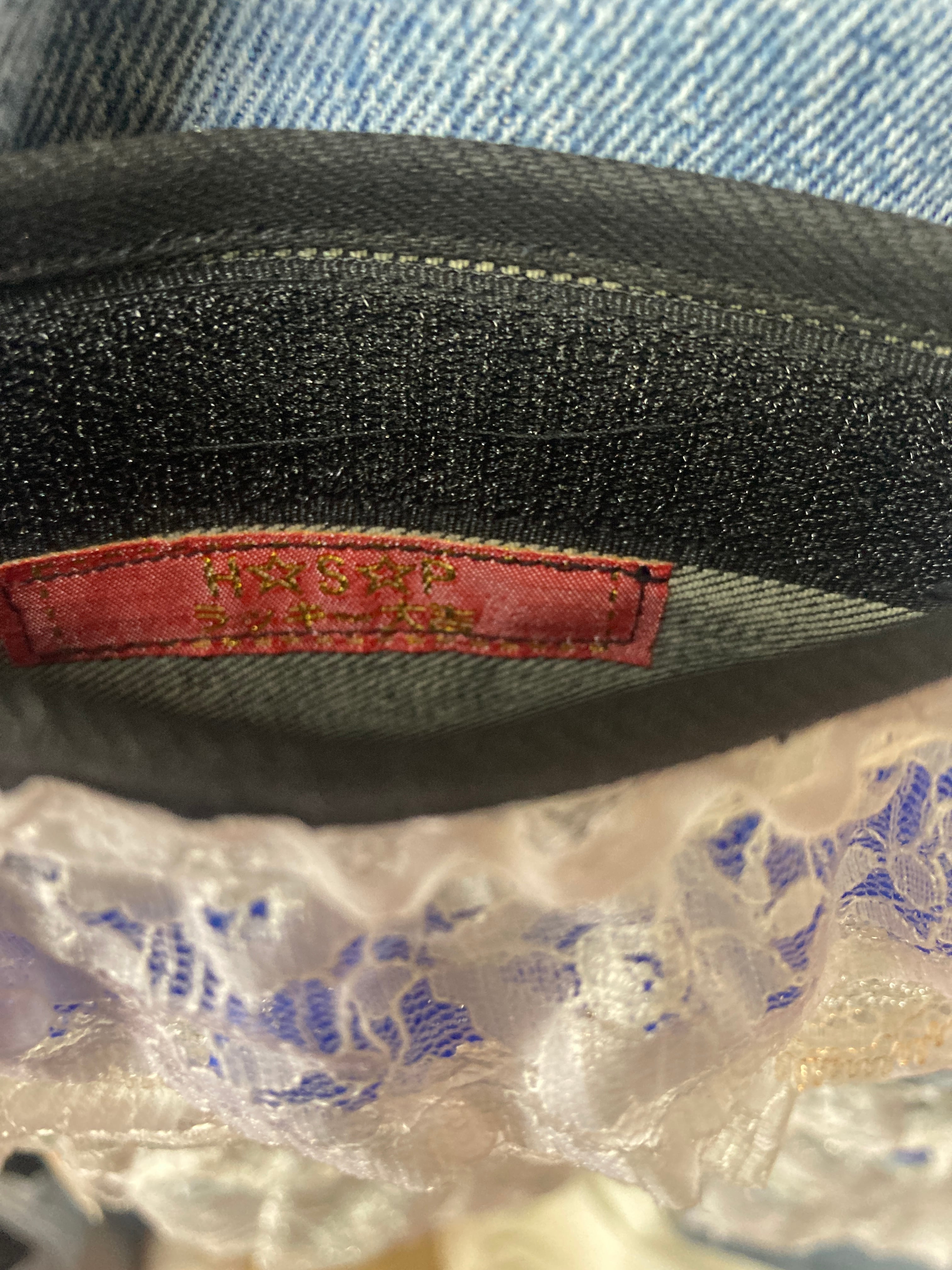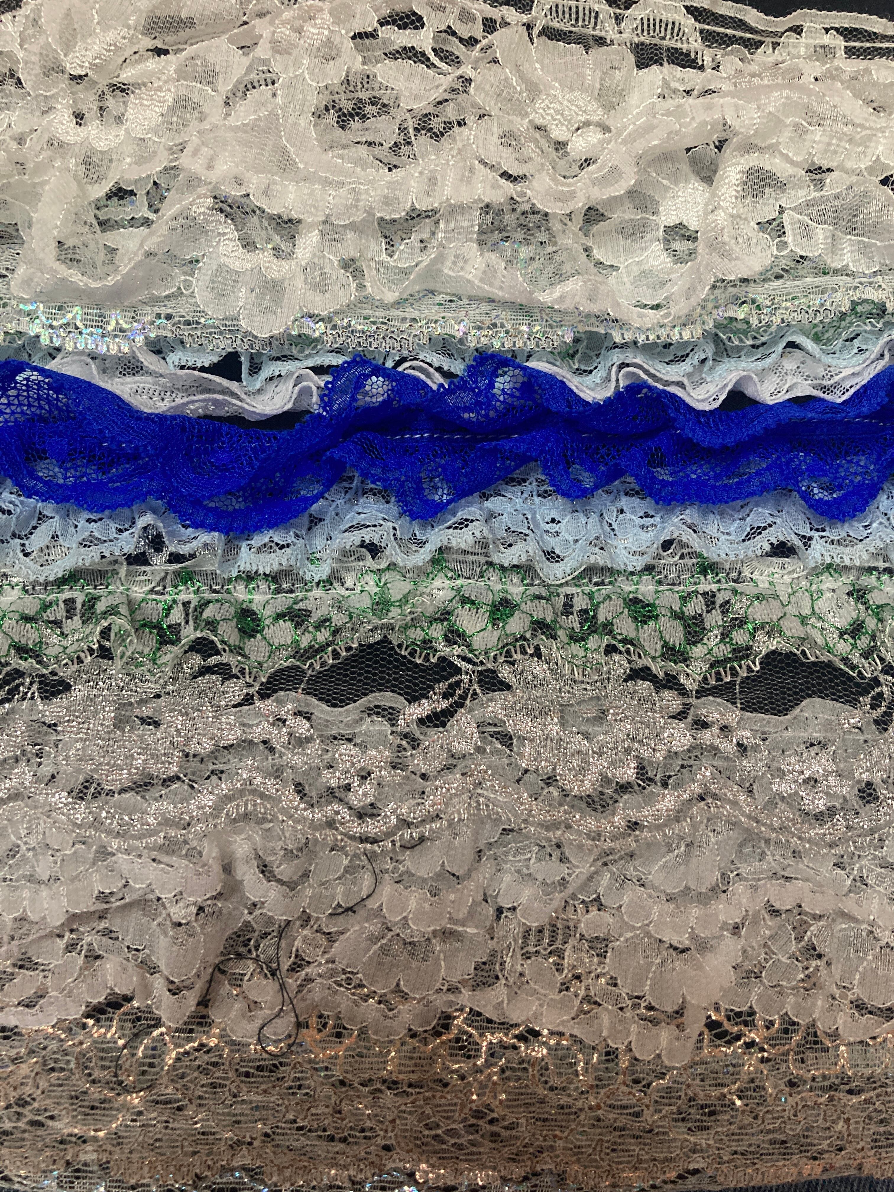 ランダムに様々なレースが装飾された豪華なパンツ