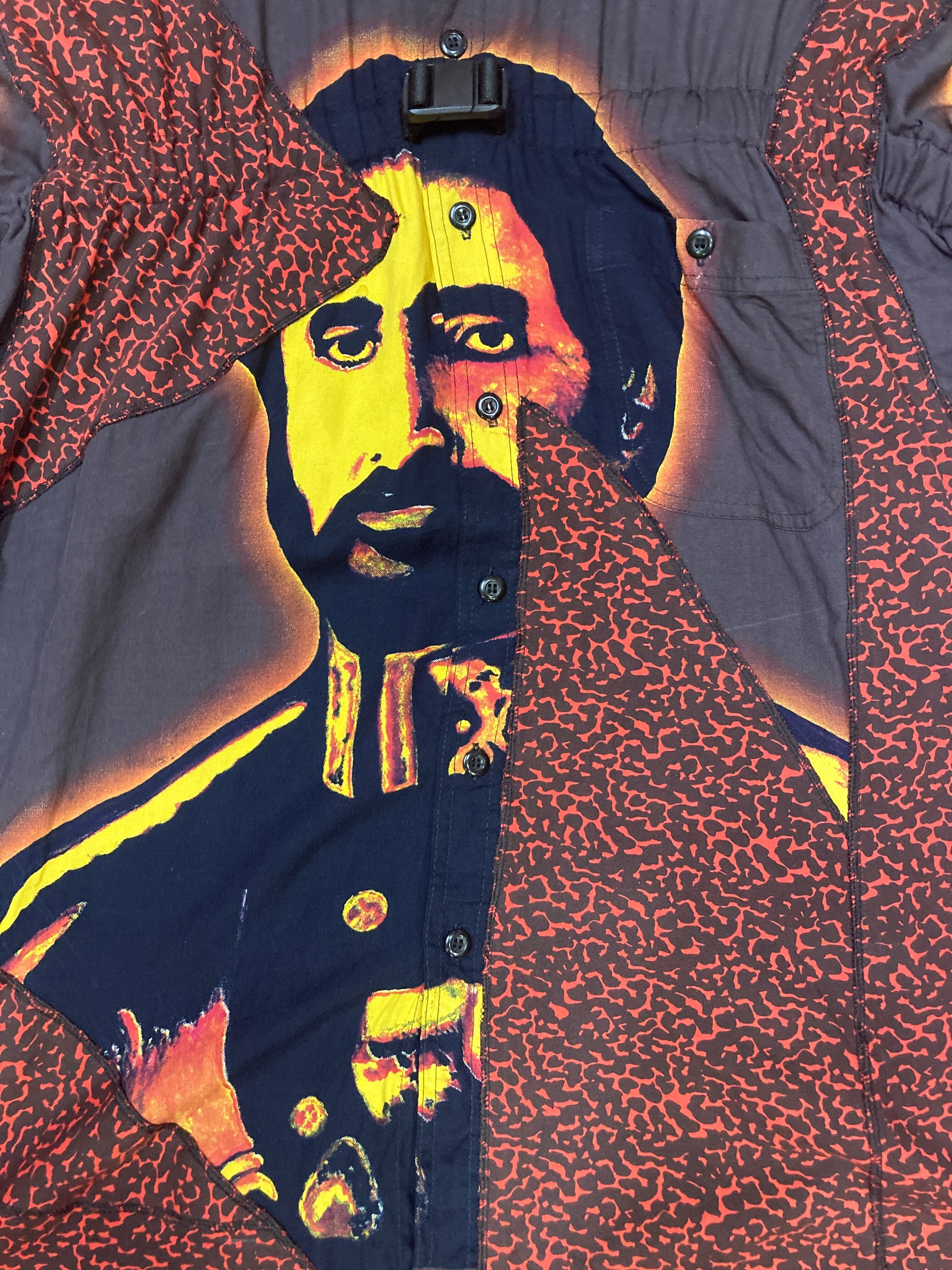 アフリカカラーパッチワークが可愛いてろっとした生地感のツギハギシャツ