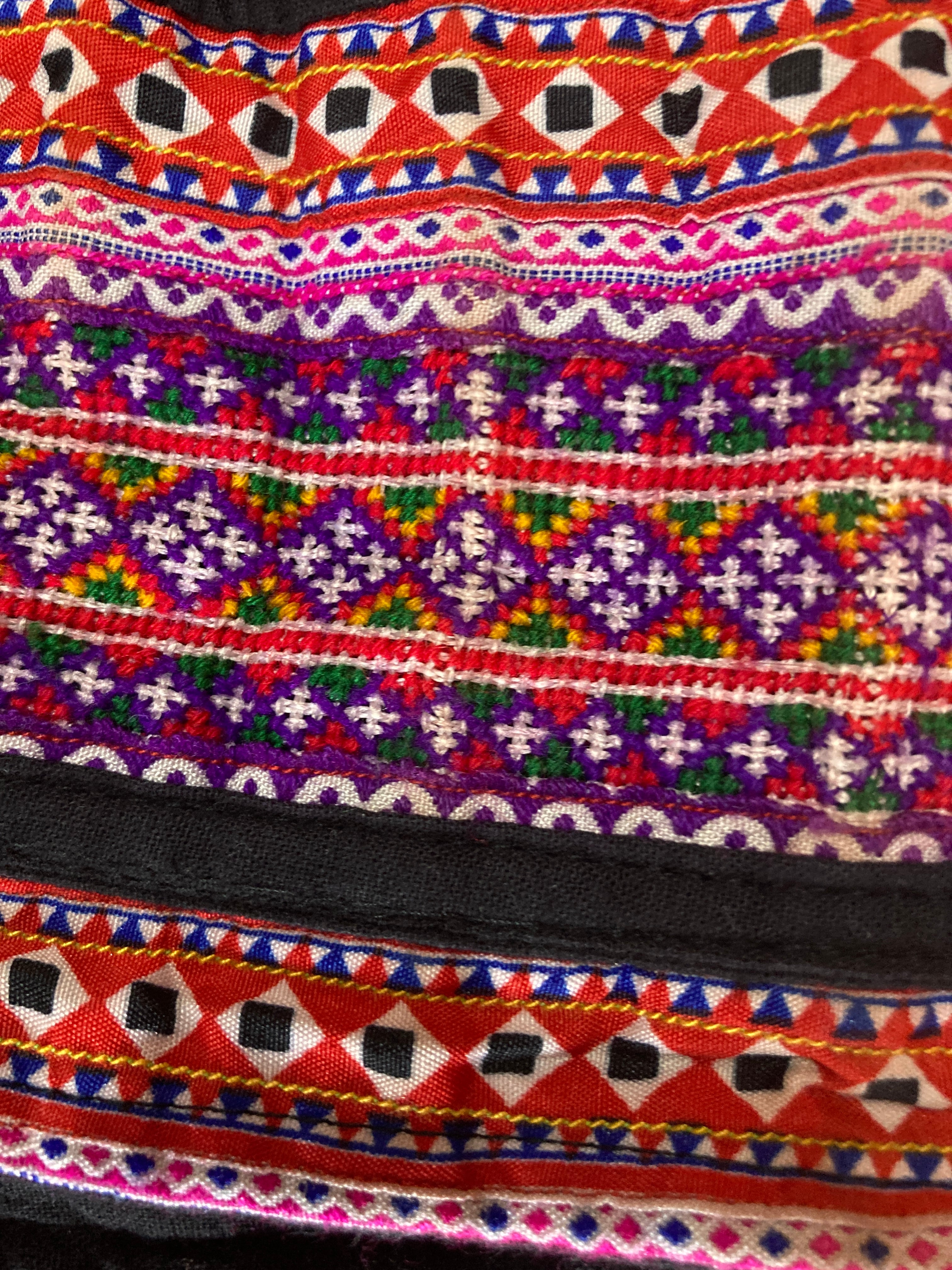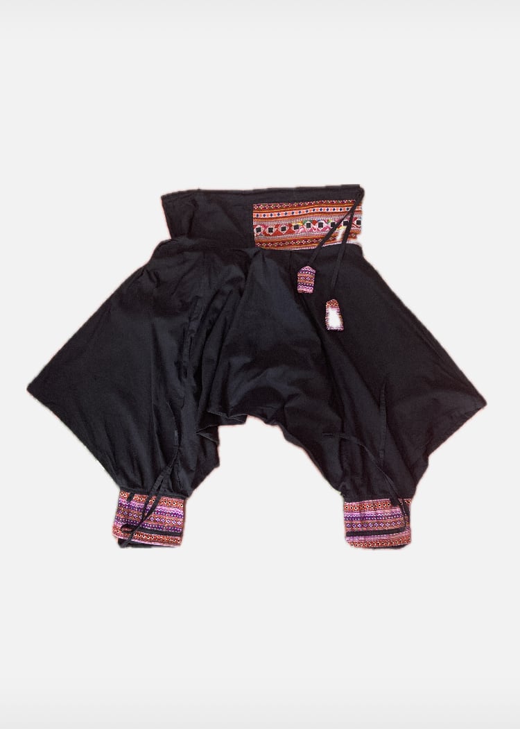 民族生地が所々ついたサルエルシルエットが可愛いパンツ