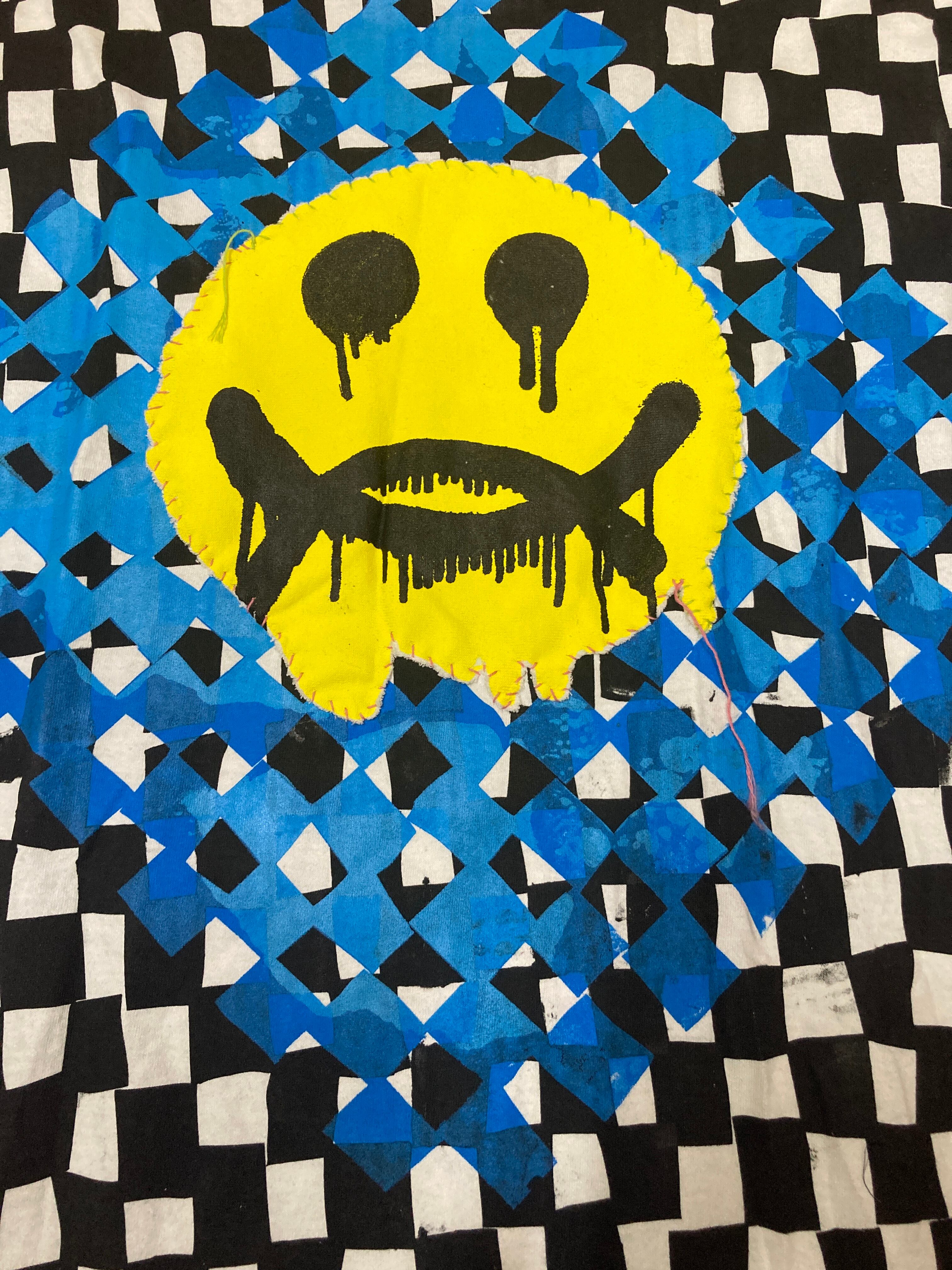 オリジナルチェック柄に手縫いスマイルが可愛いアイテム