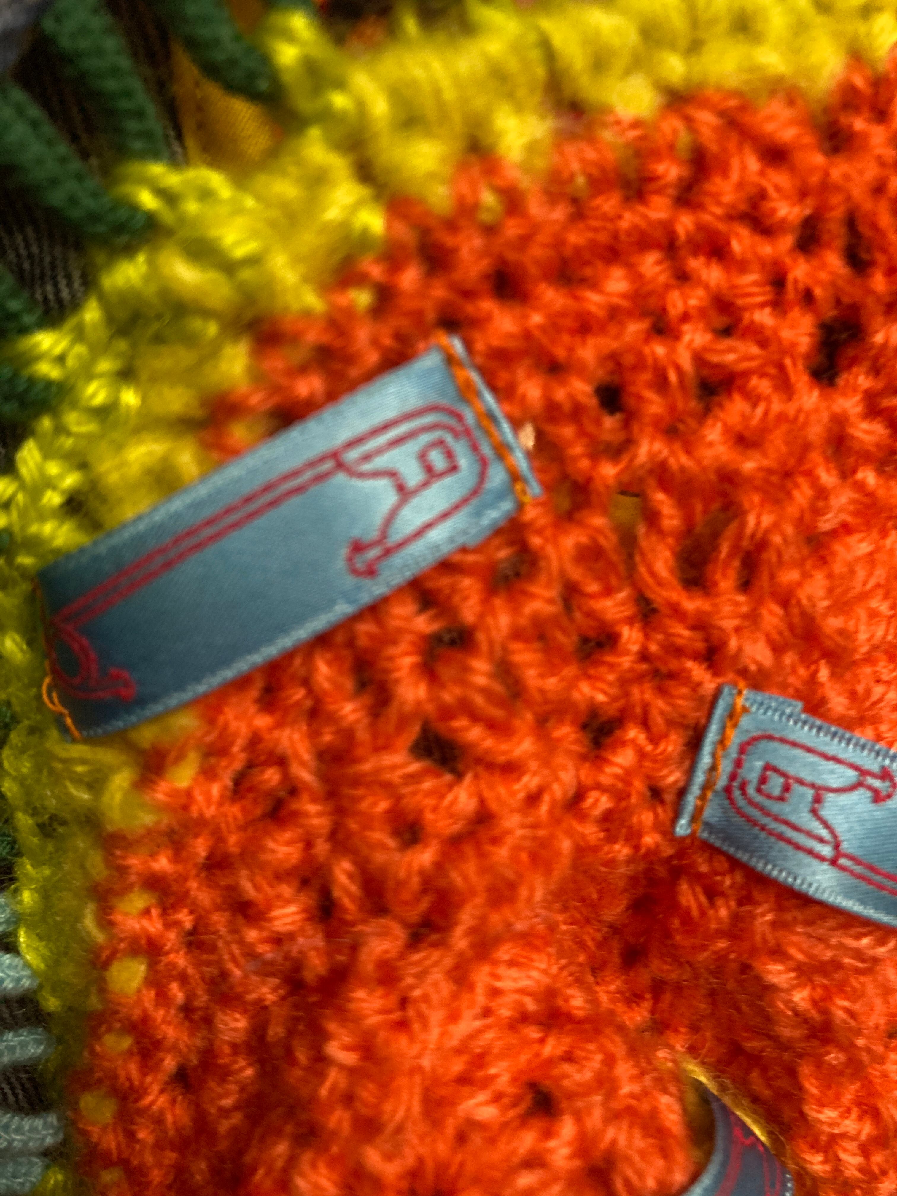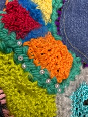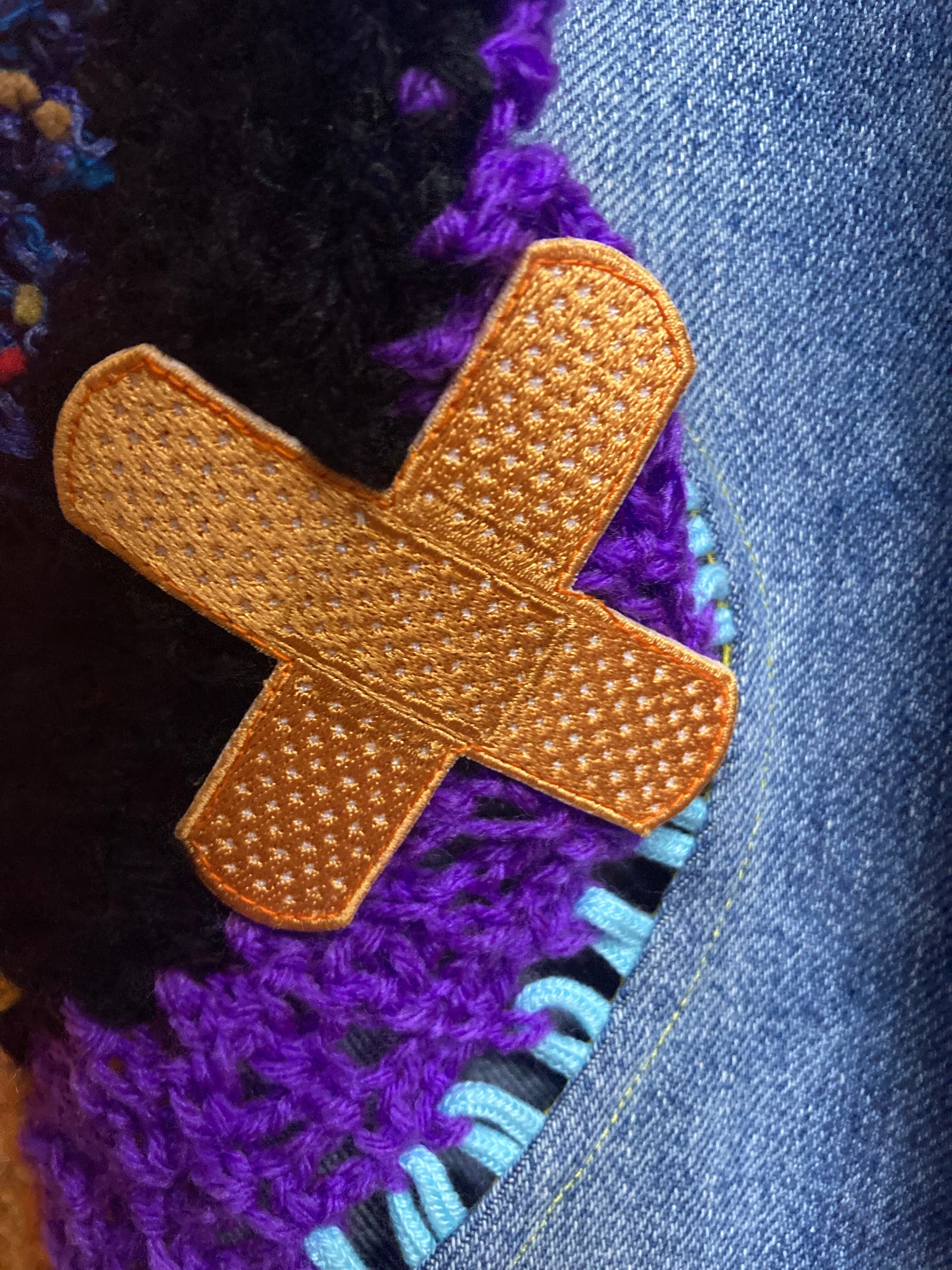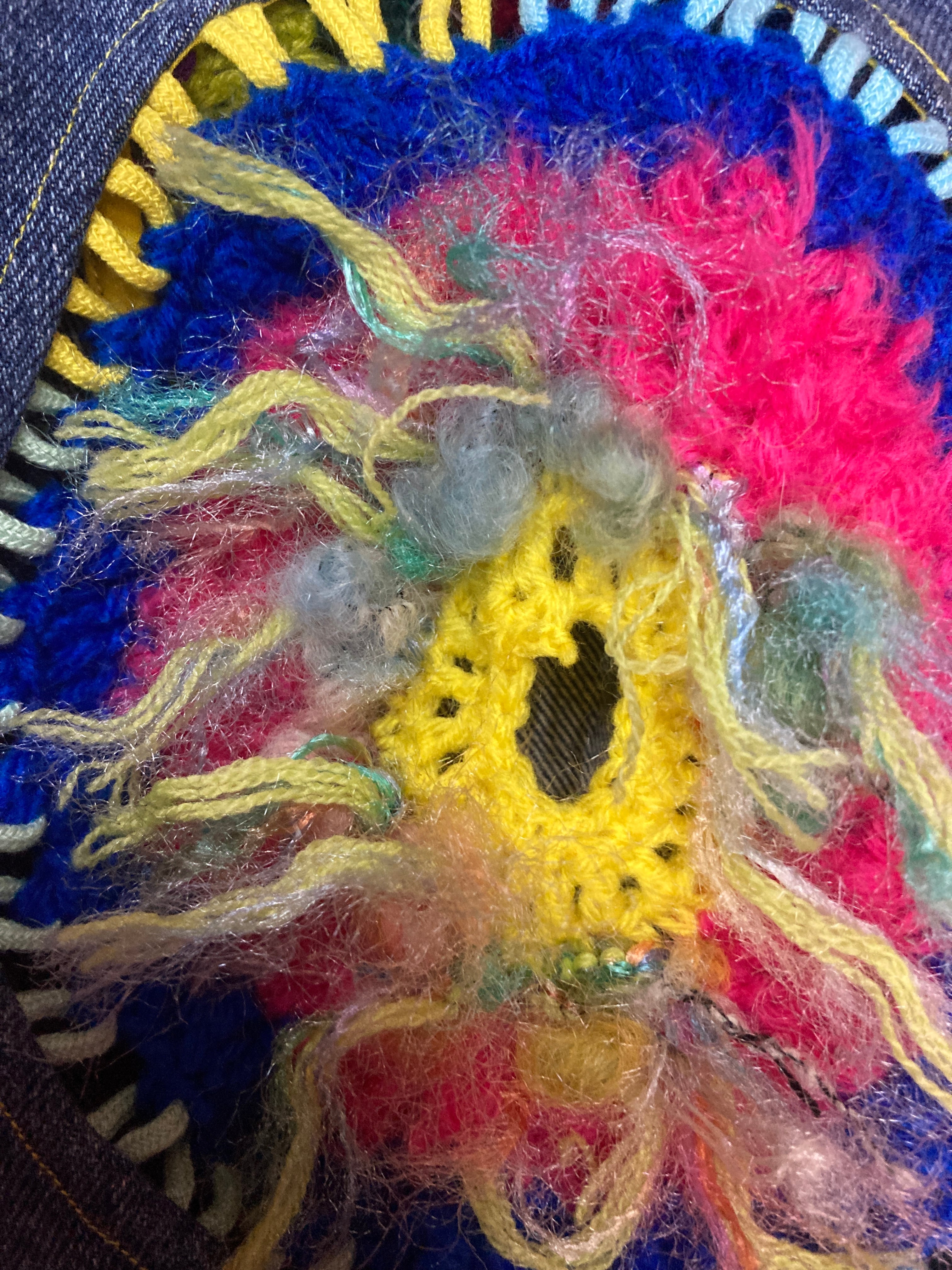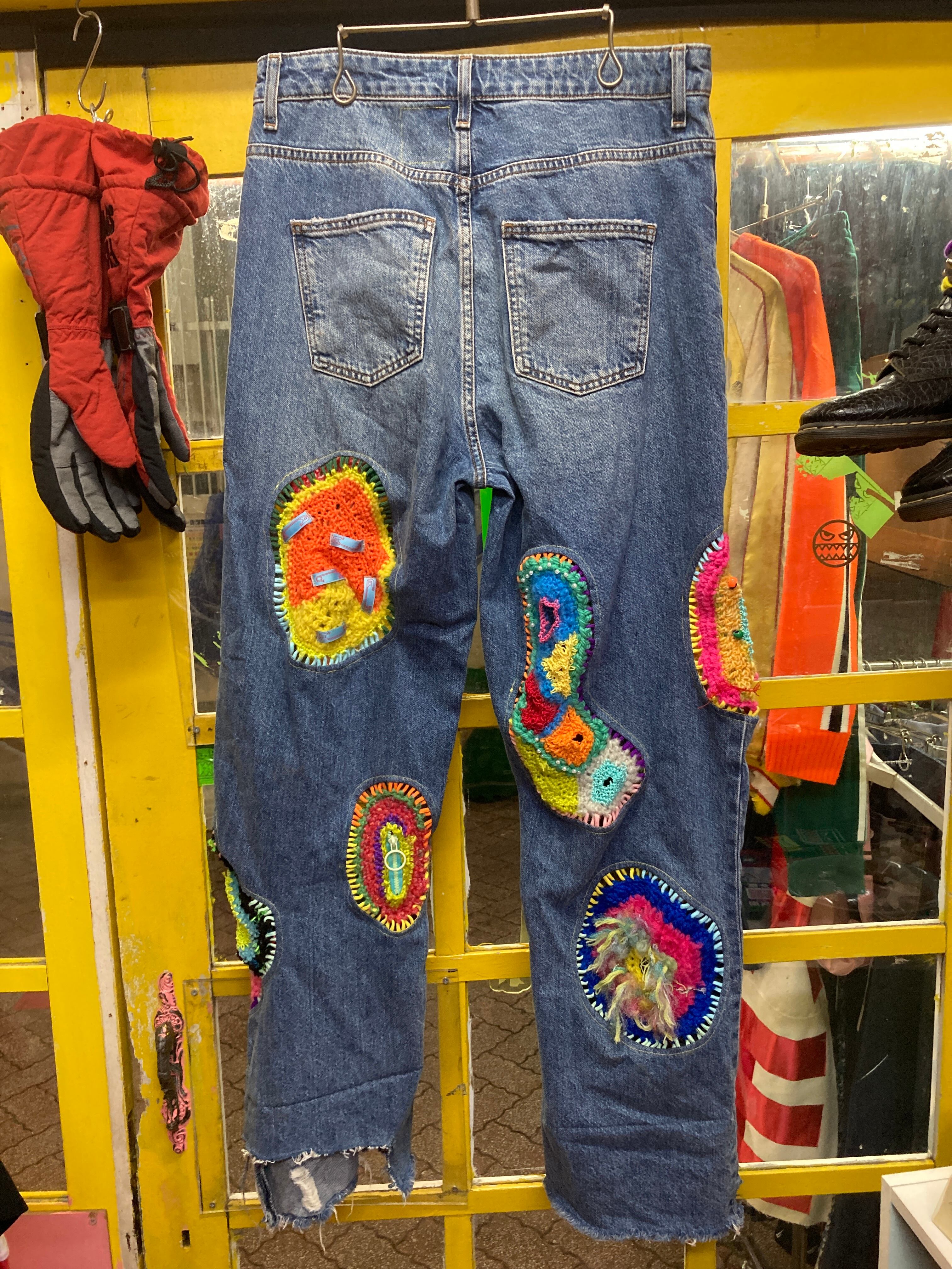 古着デニムパンツにハンドメイドニットが可愛いパンツ