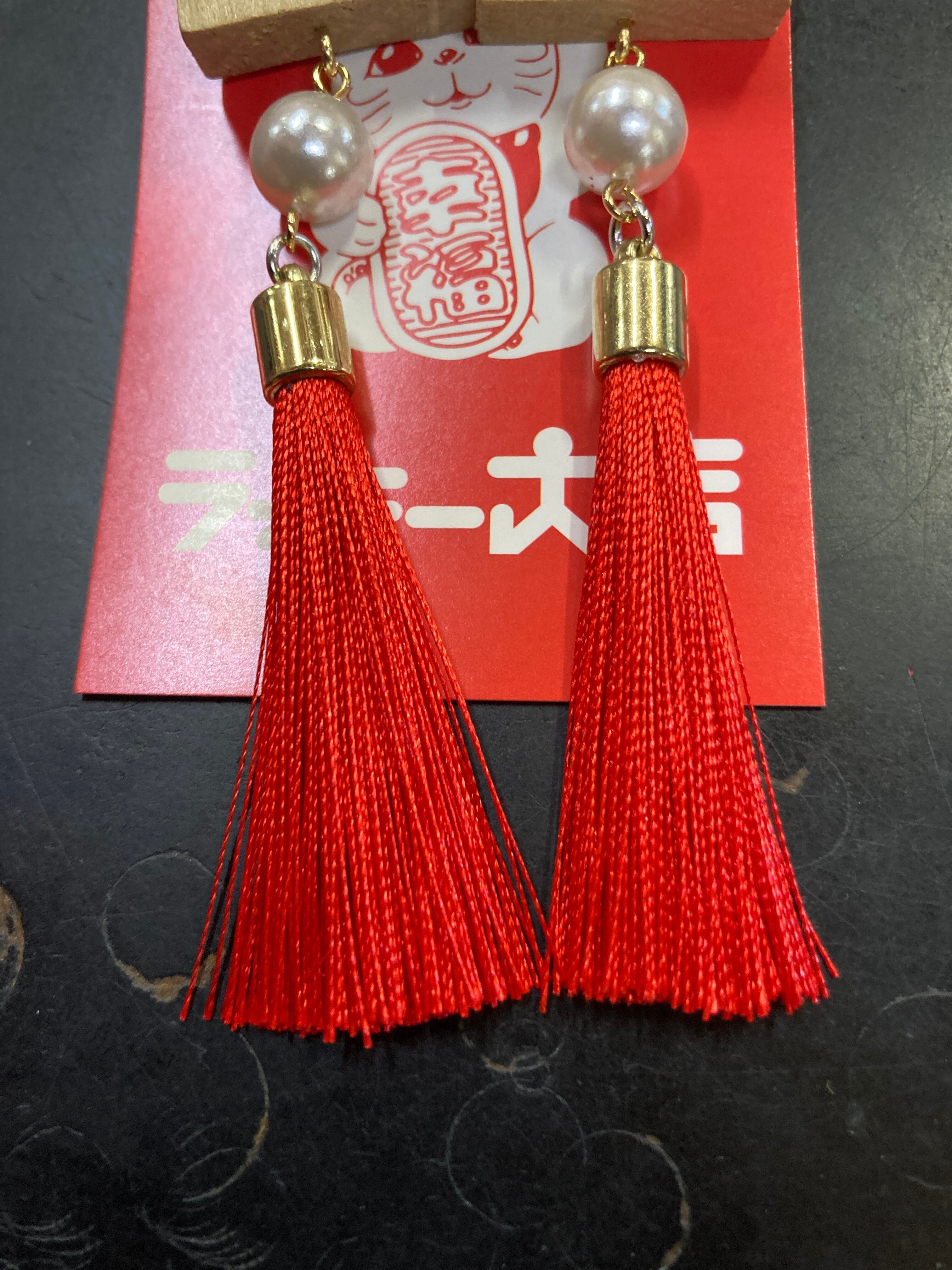 セレクトブランド ラッキー大吉 将棋駒とめでたい赤タッセル可愛いイヤリング