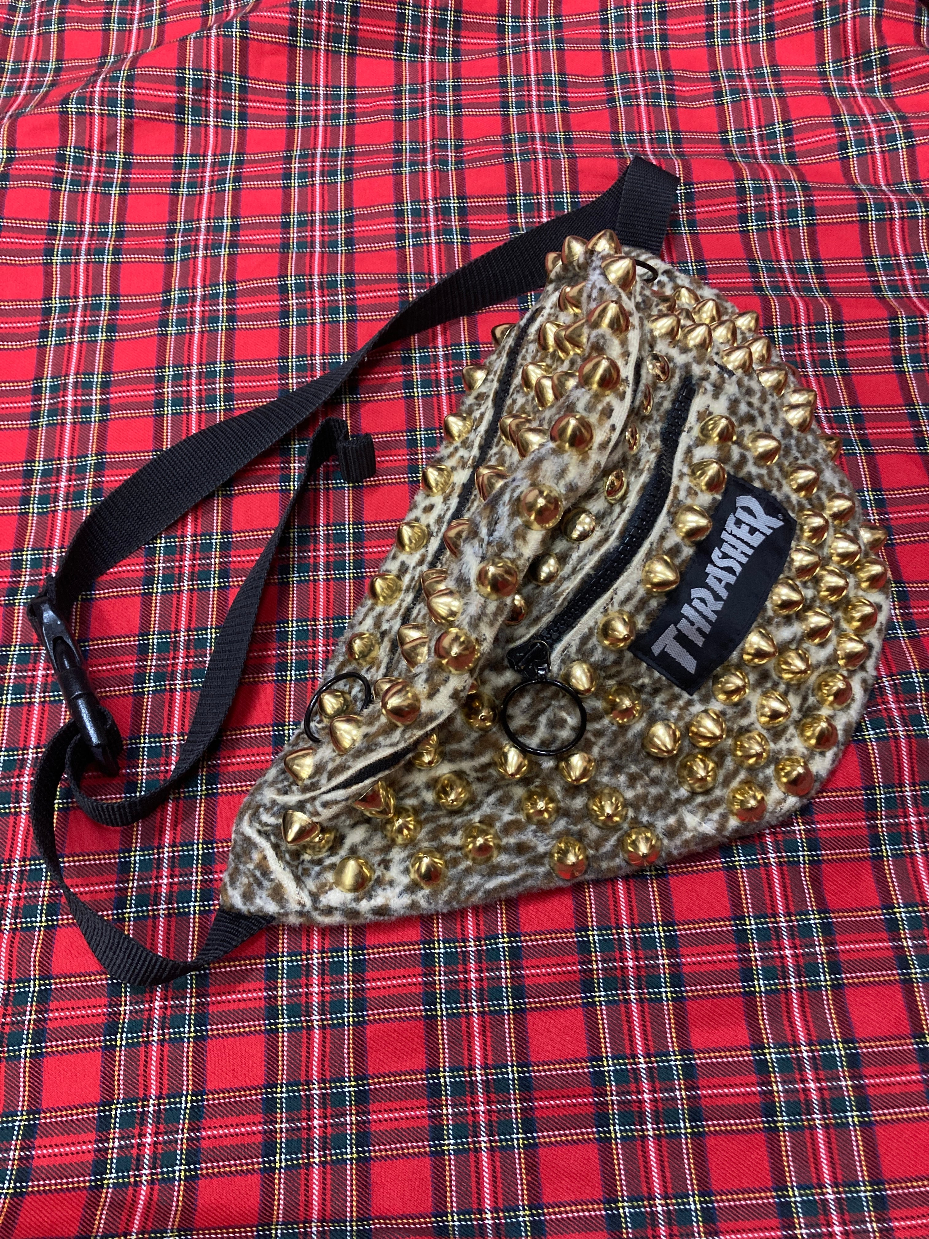 スタッズカスタムウエストポーチレオパード