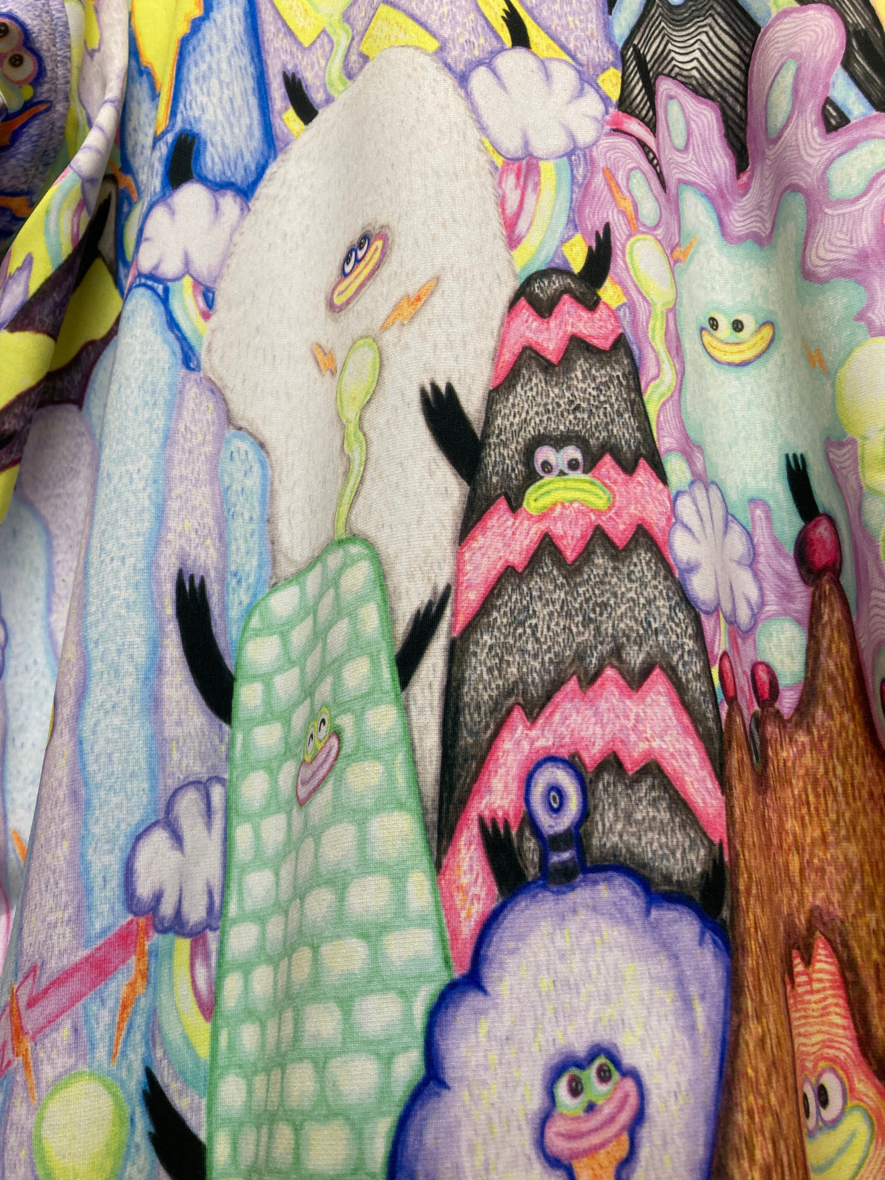 オリジナルテキスタイル総柄がインパクトあるアイテム